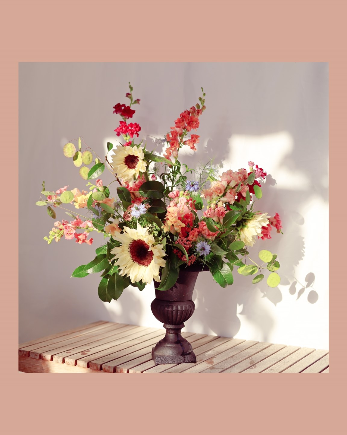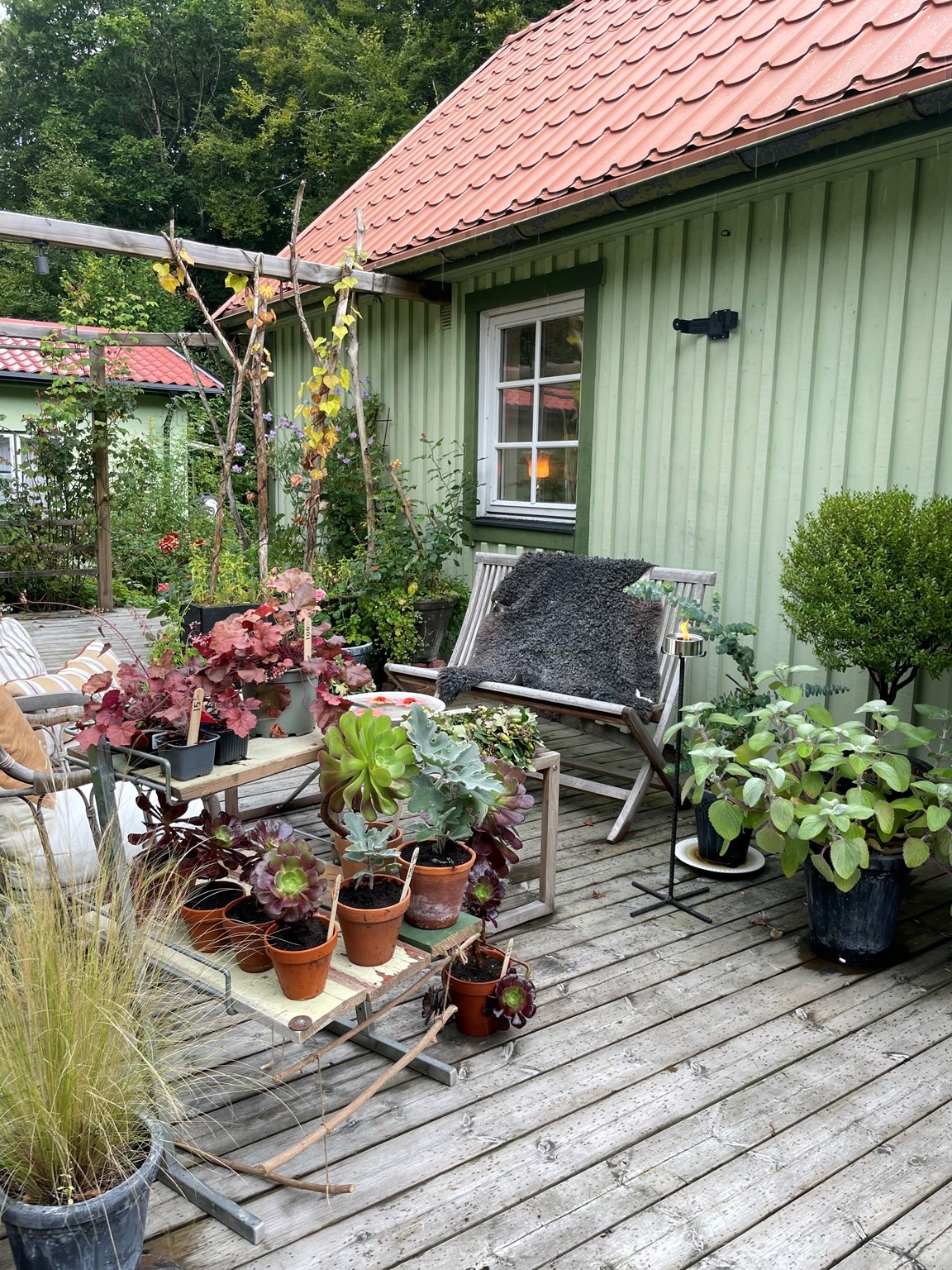 En trädgård i vackra skogsbeklädda Örkelljunga. De tre husen på gården omfamnar en ljuvlig innergård med trädäck och fontän. Vår lilla oas. Gräsmattan får ge vika mer och mer för varje år då snittblomsodlingen utökas. Vackra blommor som sedan säljs men som också ger mat och skydd till insekter och djur.