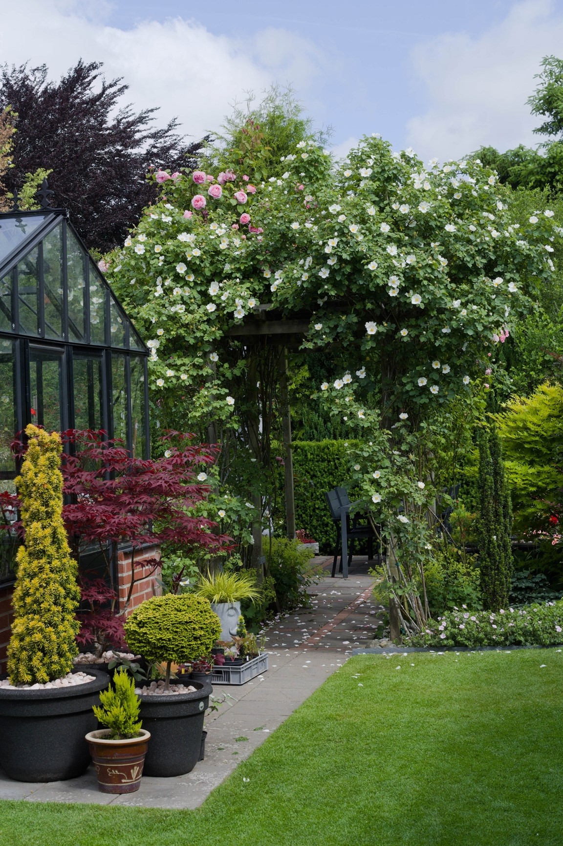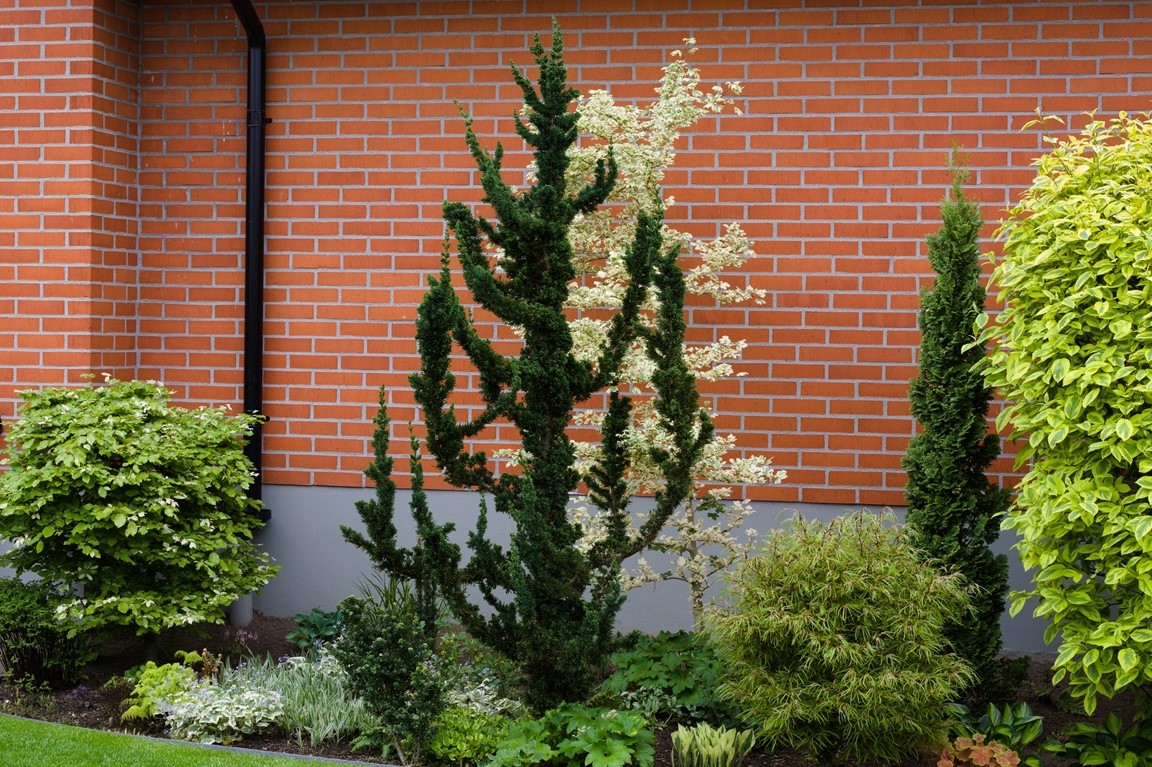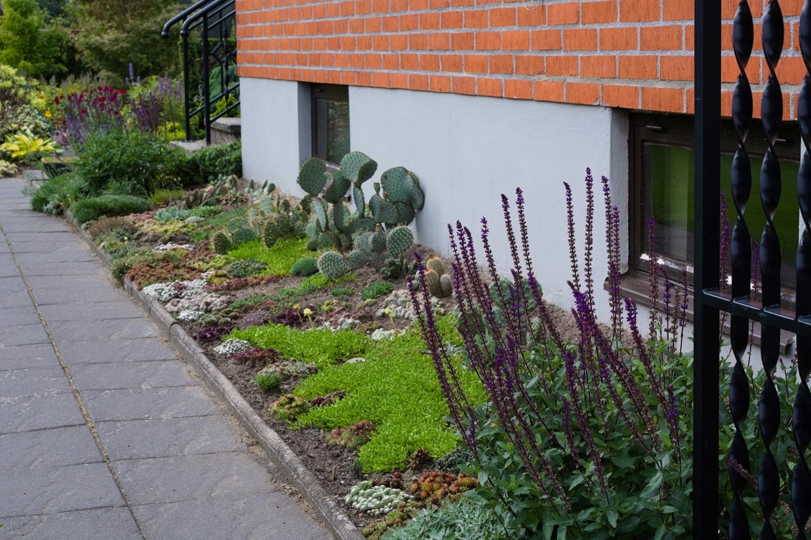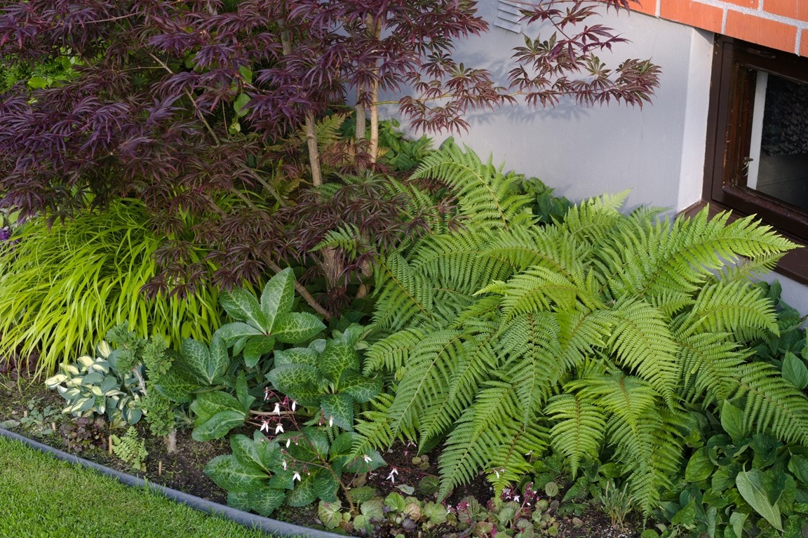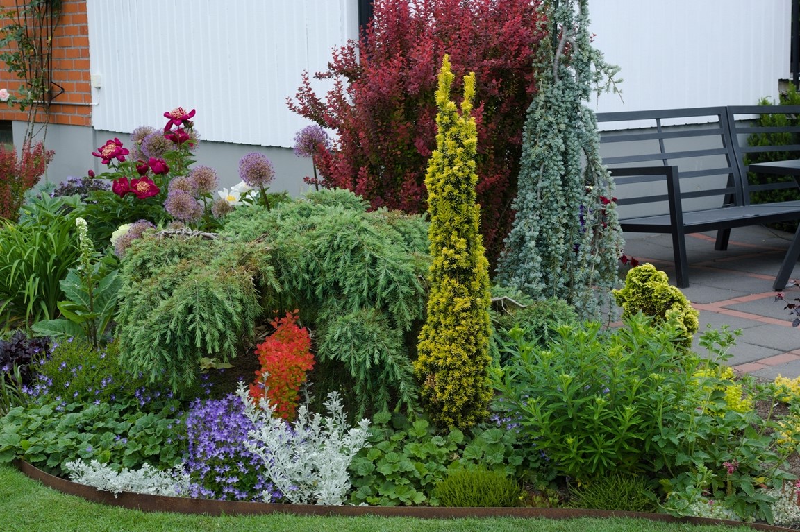 En plan villatomt på 1218 kvm i ett mindre samhälle i nordvästra Skåne. 2009 gjorde kommunen ett stort VA-arbete rakt igenom vår trädgård, detta ledde till en omfattande förvandling från grönsaksland och sandlådor till dagens trädgård. Vi har prioriterat växter som har ett stort prydnadsvärde för oss under en lång tid av året. I trädgården finns bland annat barrväxter varav många är minibarr, funkior, ormbunkar, berberis, gräs, judasträd, ljung, ovanliga småväxta miniträd, 2 stenpartier, härdiga kaktusar, växthus, perenner då gärna med fina blad, sedan finns här ju även så klart pioner och rosor.