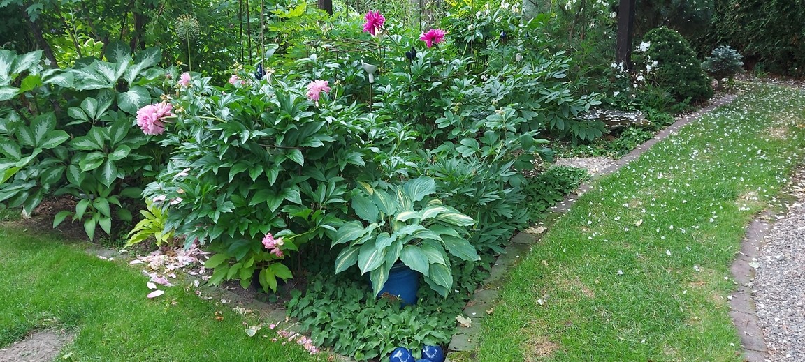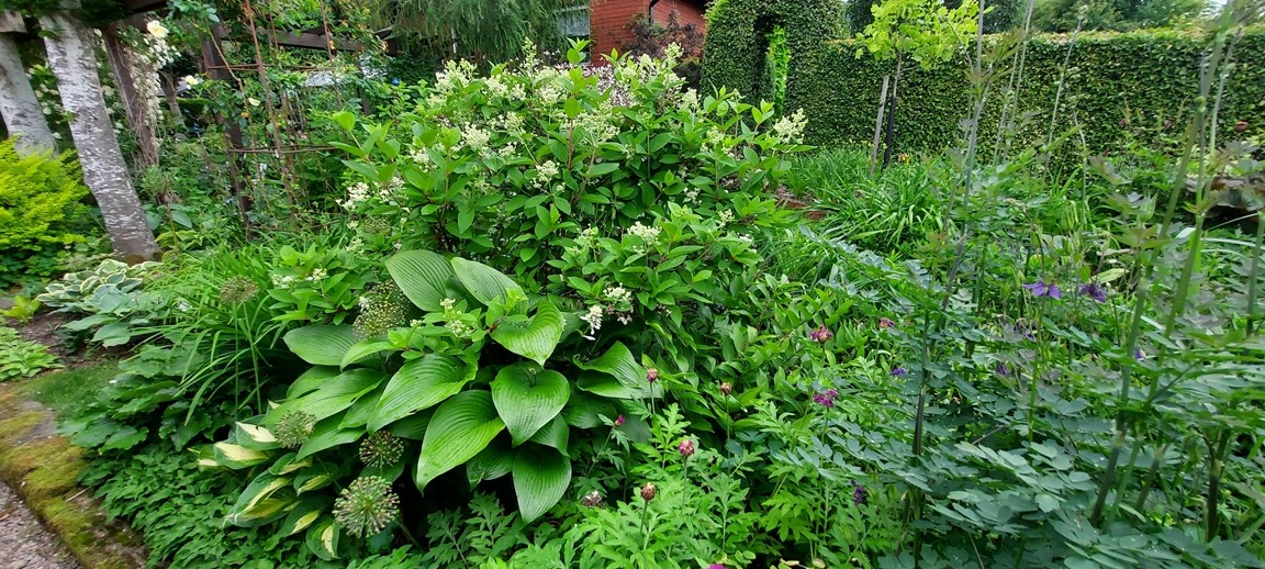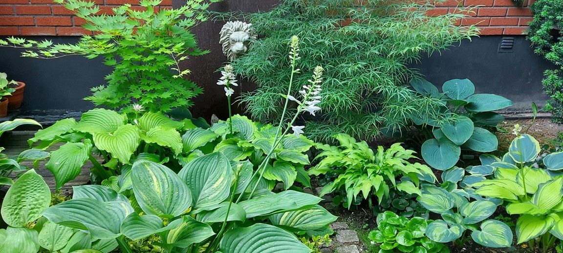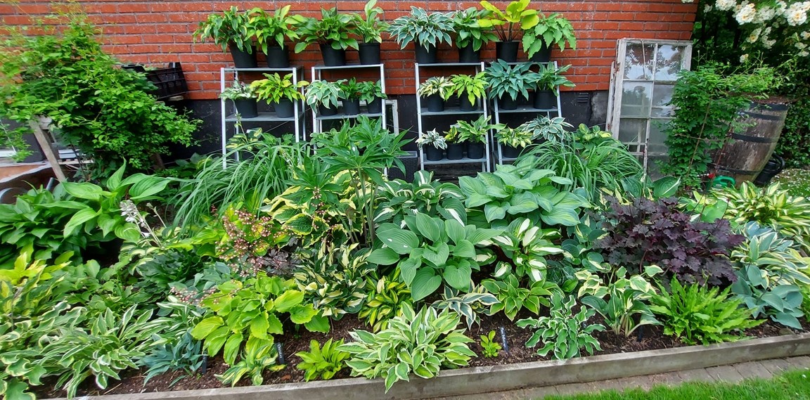 Hosta, Hemerocallis, Rhododendron, Clematis