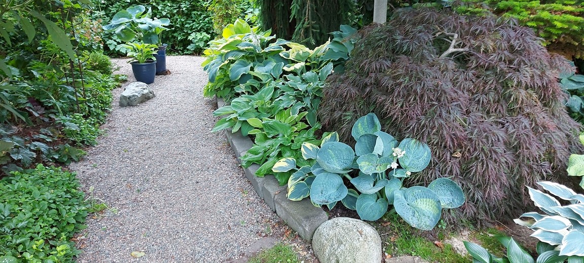 Vi bor i ett villaområde som blev klart i början av 70-talet. Trädgården på ca 1100 m2 har vi skapat successivt under 30 år. Idag finns olika partier avdelade med häckar och gångar. Damm med näckrosor och en bäck. För några år sedan gjorde vi ett stenparti där växterna planterades i en grusbädd. Surjordspartier med mycket rhododendron, magnolior och andra växter i upphöjda bäddar. Samlar på Hosta och Hemerocallis. Bilderna du ser att tagna i samband med TuT22 Växtförsäljning i mån av tillgång av delade växter från trädgården, framförallt Hosta/Funkia och Hemerocallis/Daglilja.