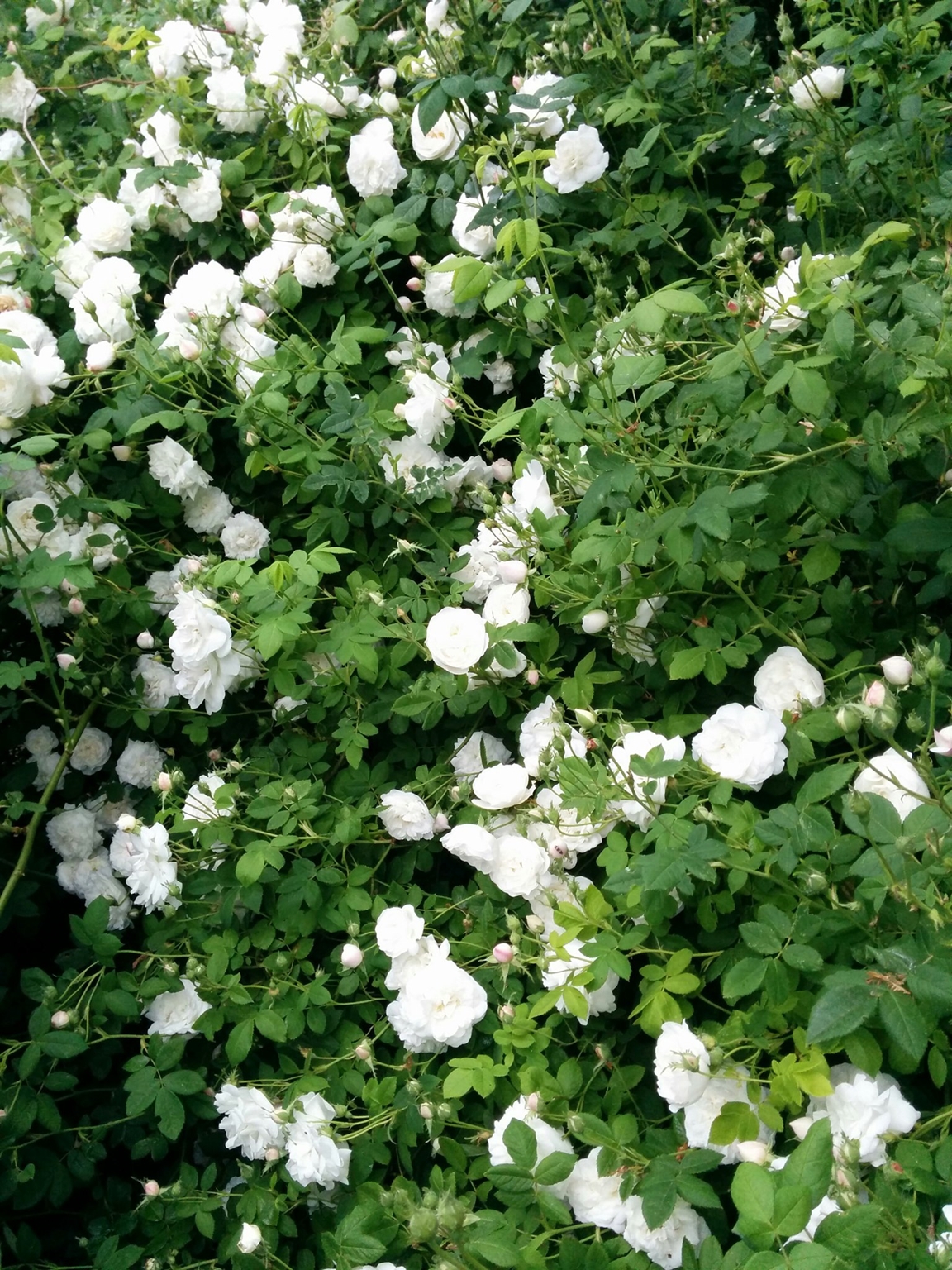 Rosor är en hörnpelare. Jag har planterat massor! Idag är många stora och praktfulla, andra unga och ännu inte utvecklade. Romance, New Dawn, Iceberg, Mme Hardy, Mme Plantier, Karen Blixen, Blanc Double de Coubert, Schneewitchen, Glamis Castle, Winchester Cathedral, Helenea hybrida, Lykkefund, St. Paul’s Himalayan Musk, Mme Alfred Carrière, Brenda Colvin, Valdemar, Little White Pet, White the Fairy, Albrighton Rambler, Olivia Rose, Alba Meidiland, Raubritter, Valdemar, Prosperity, Desdemona, Valdemarsvik, Maiden's Blush, May Queen, Ghislaine de Feligonde, Felicité et Perpétue, Amadeus, Ydrerosen, Sander's White Rambler. Sedan tidigare finns också en del äldre namnlösa rosor samt en förvildad japansk klätterros Rosa multiflora.