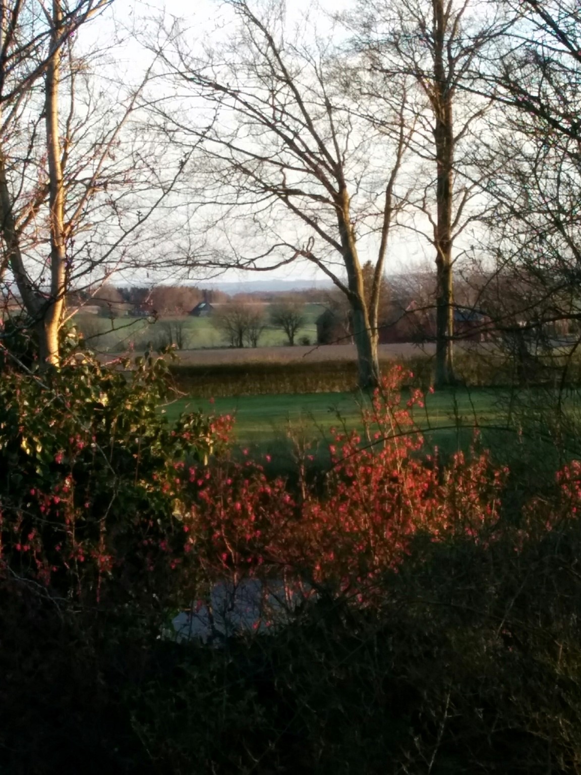 Trädgården hade delvis legat för fäfot innan vi flyttade in. En hel del restaureringsarbeten har krävts. Till dem hör att bemästra kirskål. Men man får snygga muskler och själen mår bra av fysiskt arbete! Grönsakslandet är under utbyggnad. Bönor, sockerärtor och vitlök är säkra kort. Bärbuskarna är många. Krusbär, röda-, svarta- och vita vinbär, sommarhallon, rabarber och trädgårdsbjörnbär ger fina skördar. Kajp, ramslök och körvel trivs också. Till problemen hör spanska skogssniglar och till glädjeämnena hör mina frigående dvärghöns, en liten flock guldsvartbandad Wyandotte. Och jag tror att jag glömde säga att jag gillar även fleråriga grönsaker som gode Henriks målla, rankspenat, vårsköna, sköldsyra... Pioner och hortensia är också underbara, trots, eller tack vare, att den sist nämnda skjuter rotskott med ogräsvarning.