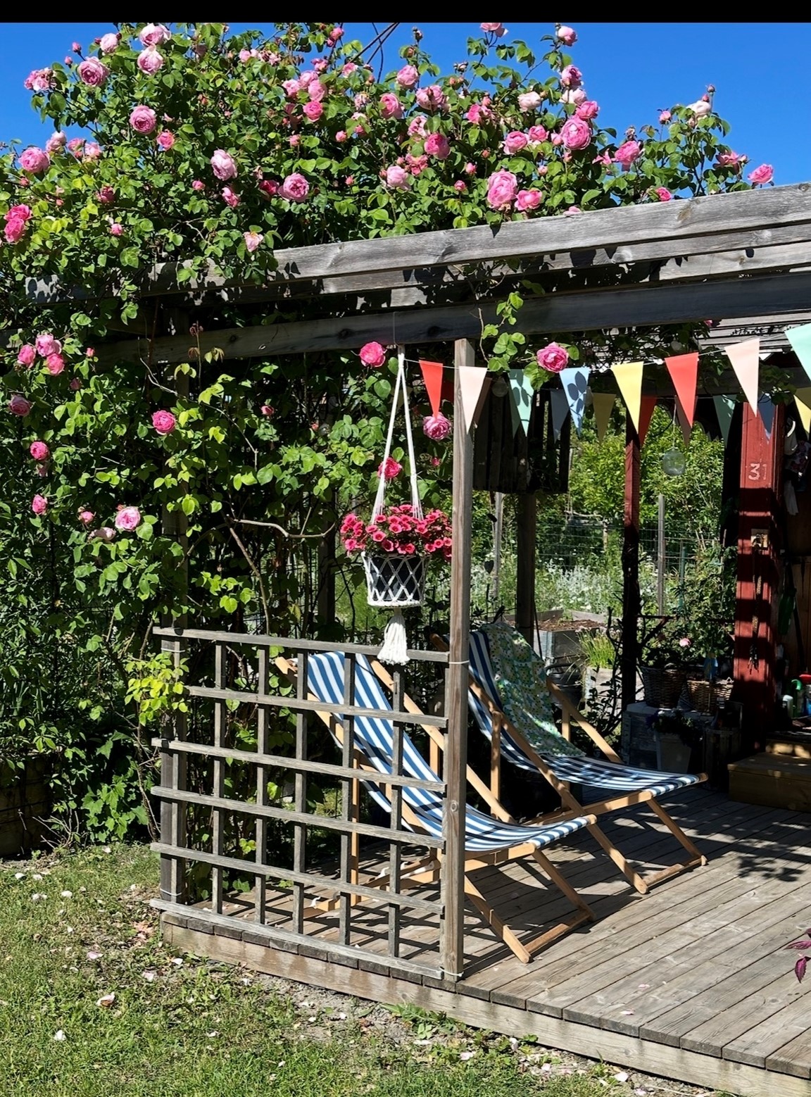 Min kolonilott ligger på Engarn. 2026 firar jag 12 år på lotten, den är Ca 225 kvm den har förändras ganska mycket sen jag tog över den, använder mycket återbruk. Ständigt i förändring. Sommaren 2023 blev mitt träväxthus från Skånska byggvaror klart. 2025 byggde jag en ny altan, den fångar upp de sista solstrålarna på dagen☀️Här finns ett äppelträd och en fläder som ger skugga, mina 15 tal pallkragar ger grönsaker som jag gillar äta. Olika rosor blommar under sommaren,Är kravlös och gillar att ta det lugnt när jag vill, så välkomna till min oas. Följ mig gärna på Instagram som jag började med för 12 år sen. @billaudelskolonilott heter jag🌷❤️🌷🌸🪴🍀