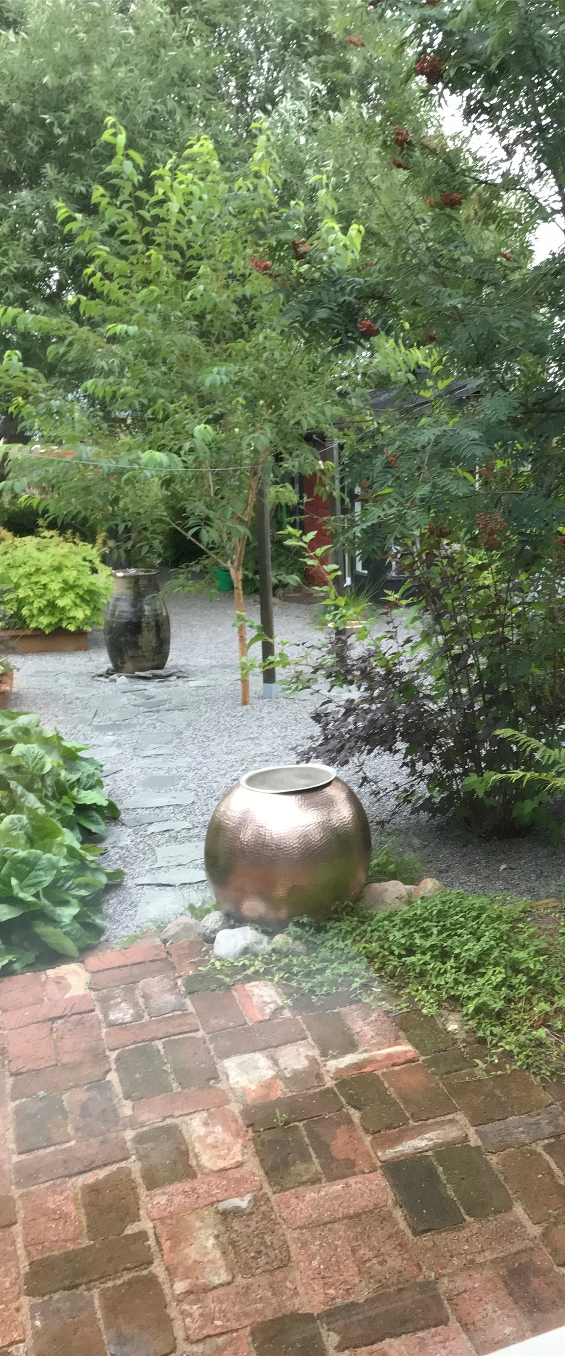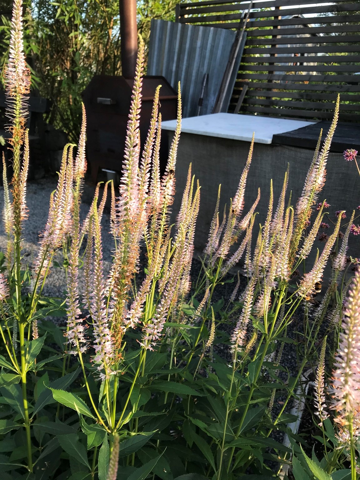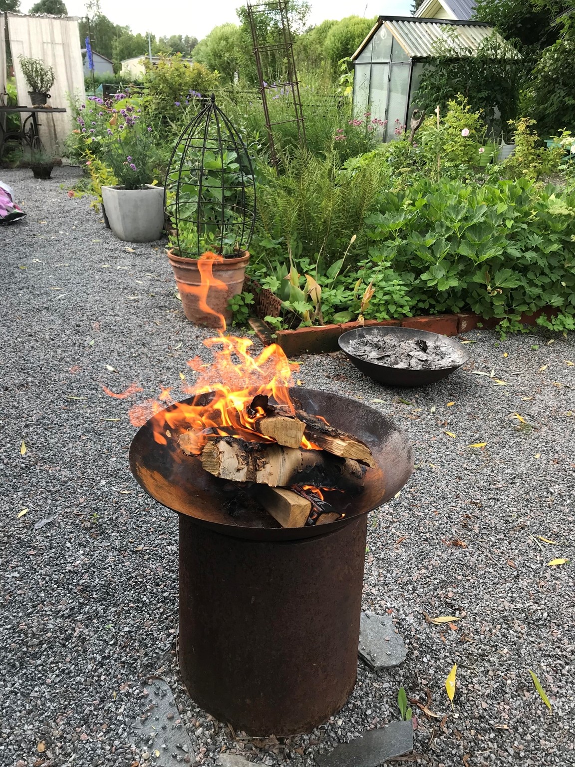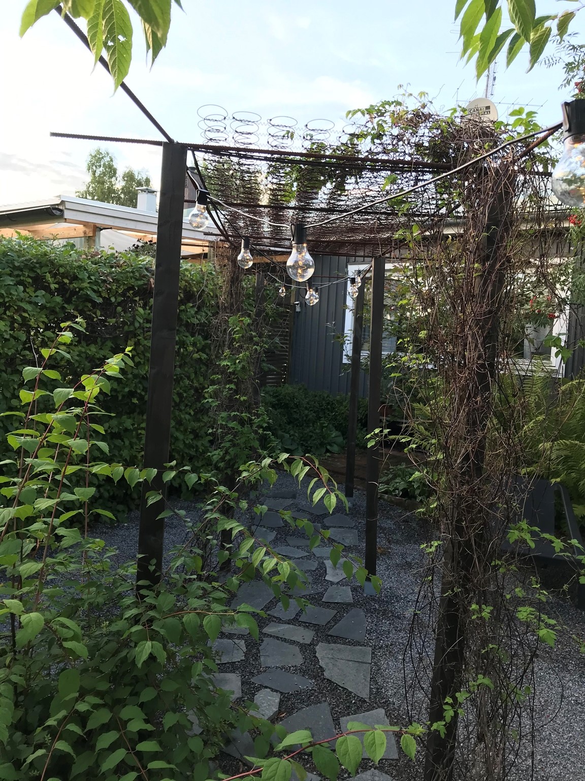 Radhusträdgård, som har ändrat utseende från extra allt till en mer sparsmakad trädgård med upphöjda planteringar av corten stål och grusgångar. Har du tur träffar du på katten Pojken bland blommorna