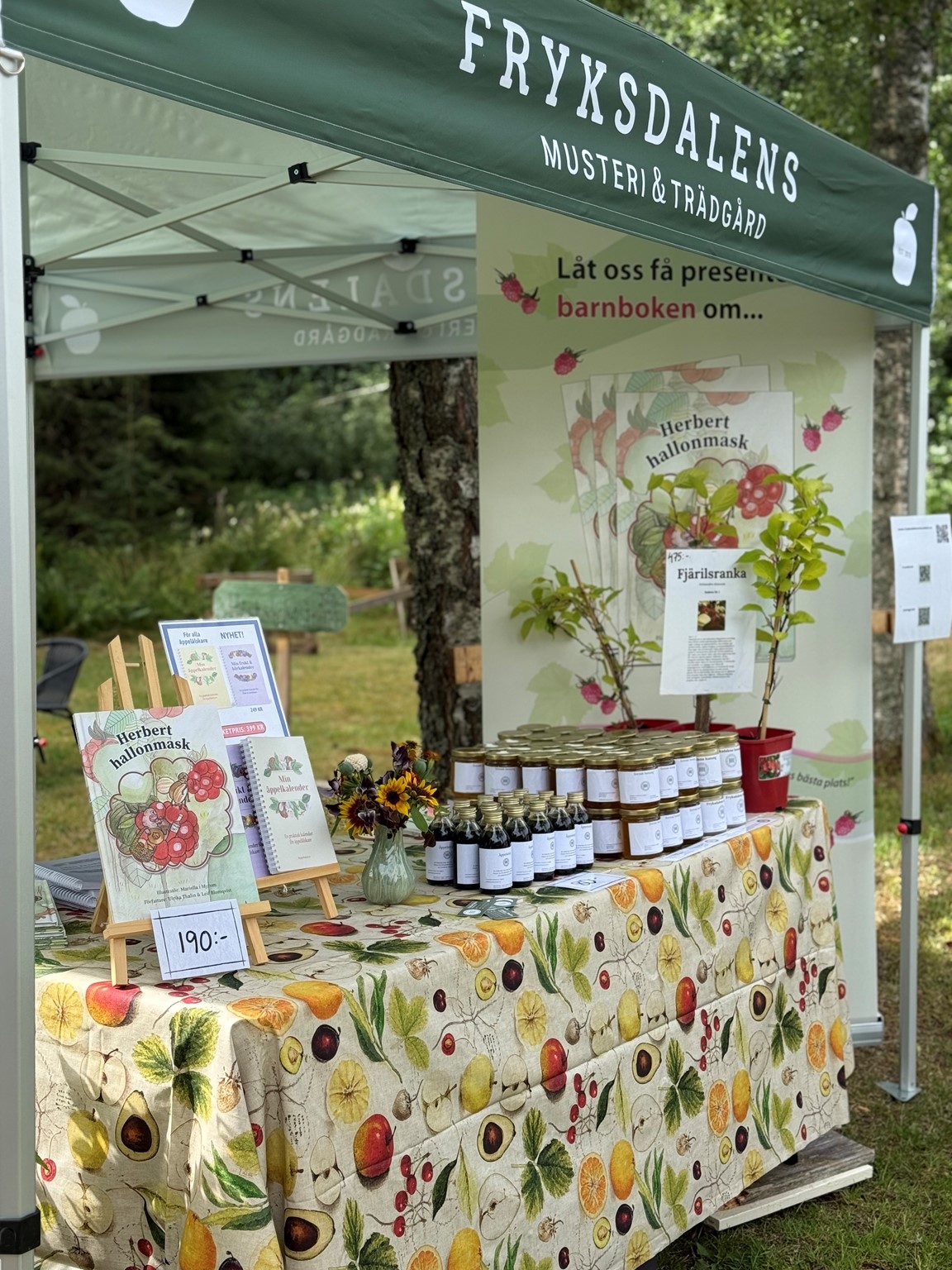 Vi kommer sälja vår premierade äppelsirap (brons i SM i Mathantverk), Fryksdalens honung och växter från Blomqvist Plantskola som t.ex. bärbuskar, rosor, vackra hortensior. Vi erbjuder även småplantor av olika slag samt hembakat fika.