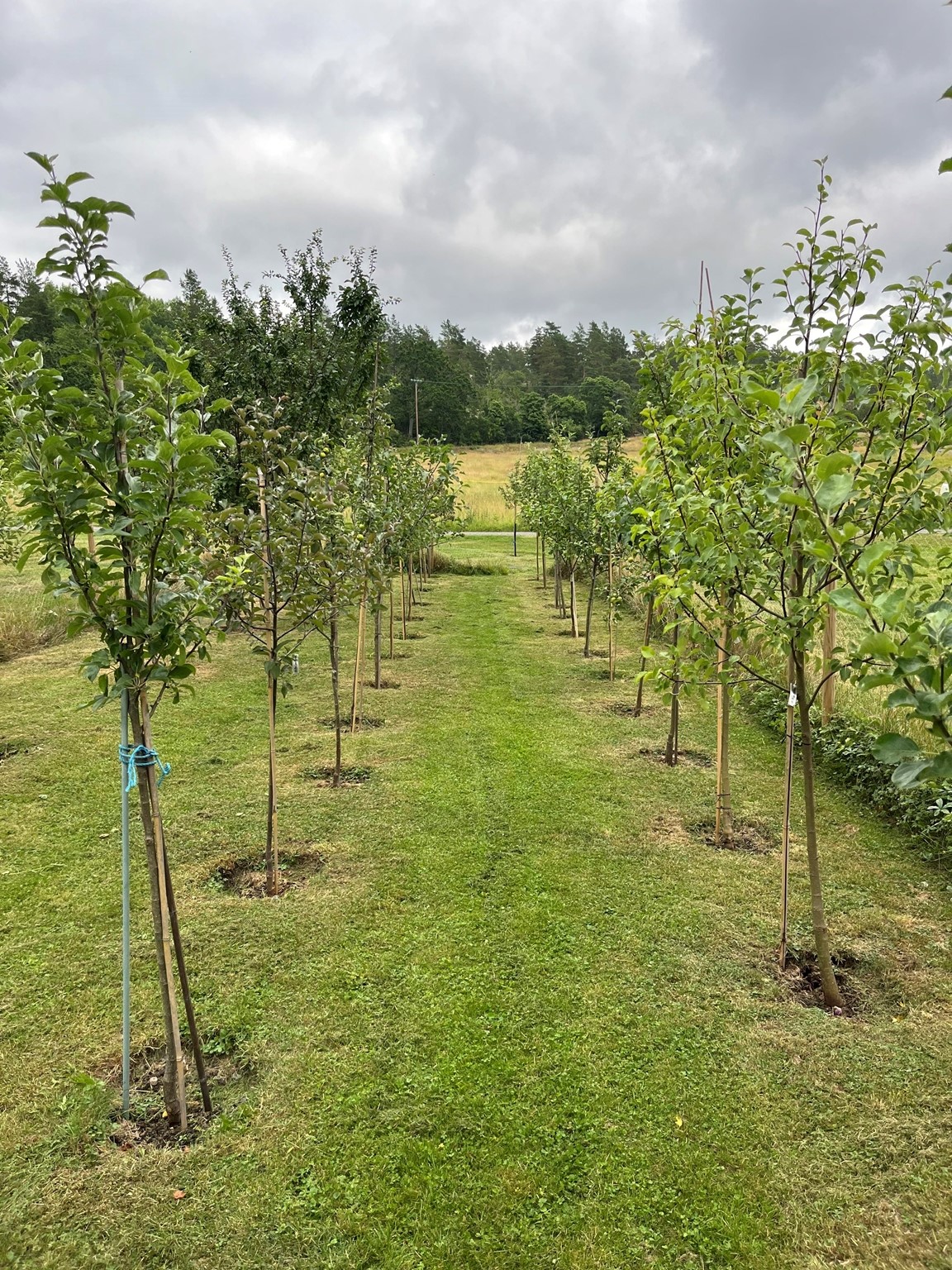 En trädgård med 4 gamla äppelträd (ca 100 år) samt 40 nyare egengjorda äppelträd (3-6 år) med ca 25 olika sorter, varav 5 rödköttiga. Ca 10 olika päronträd finns också och en vinranka som nu är 12 m lång kan beskådas. Du kan få lite ympningstips också!
