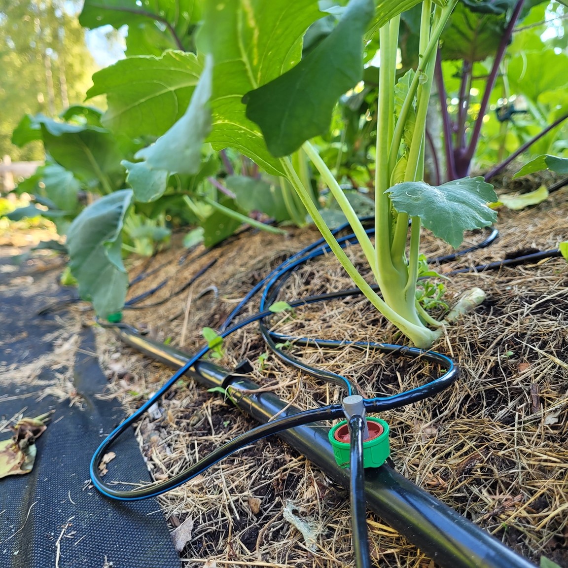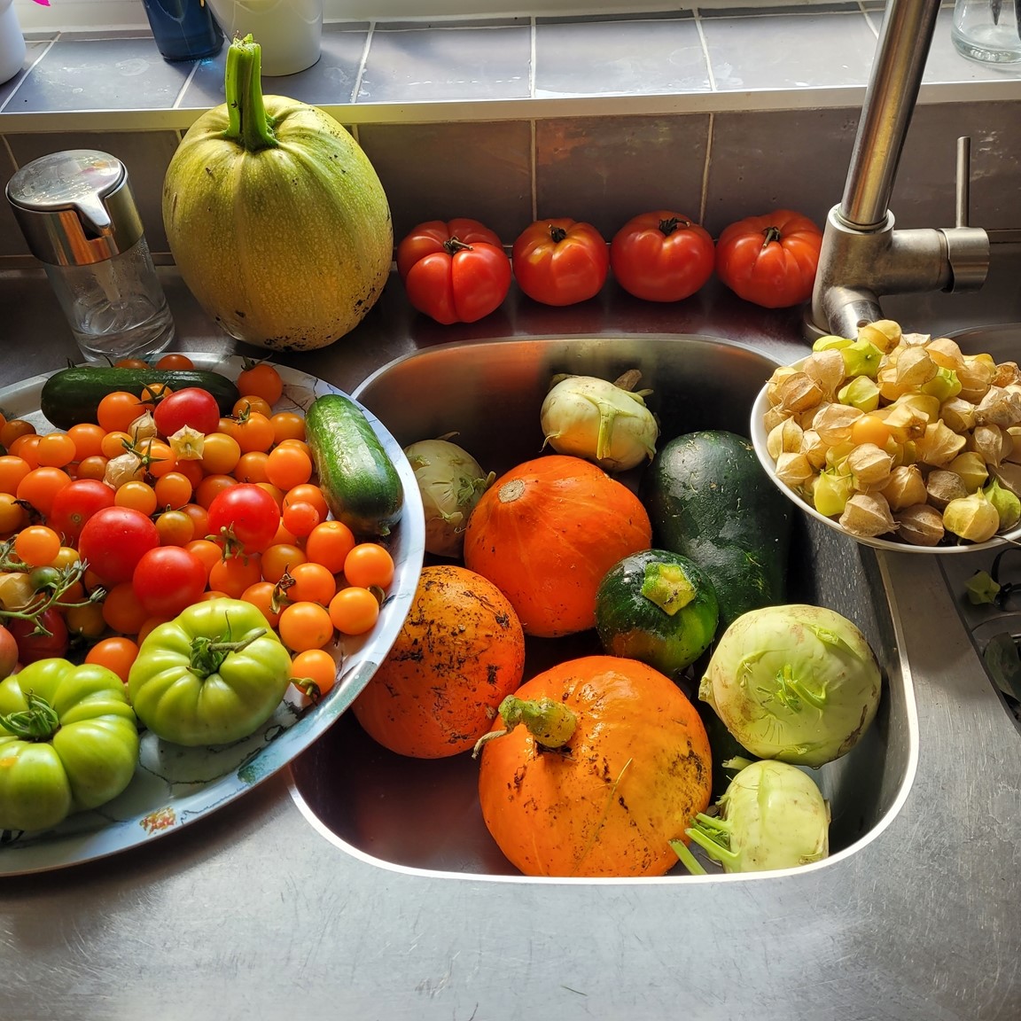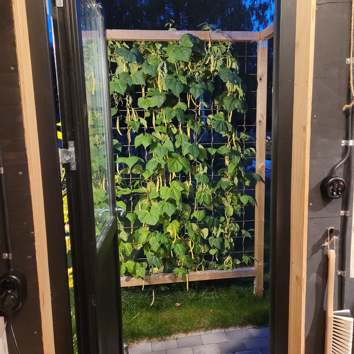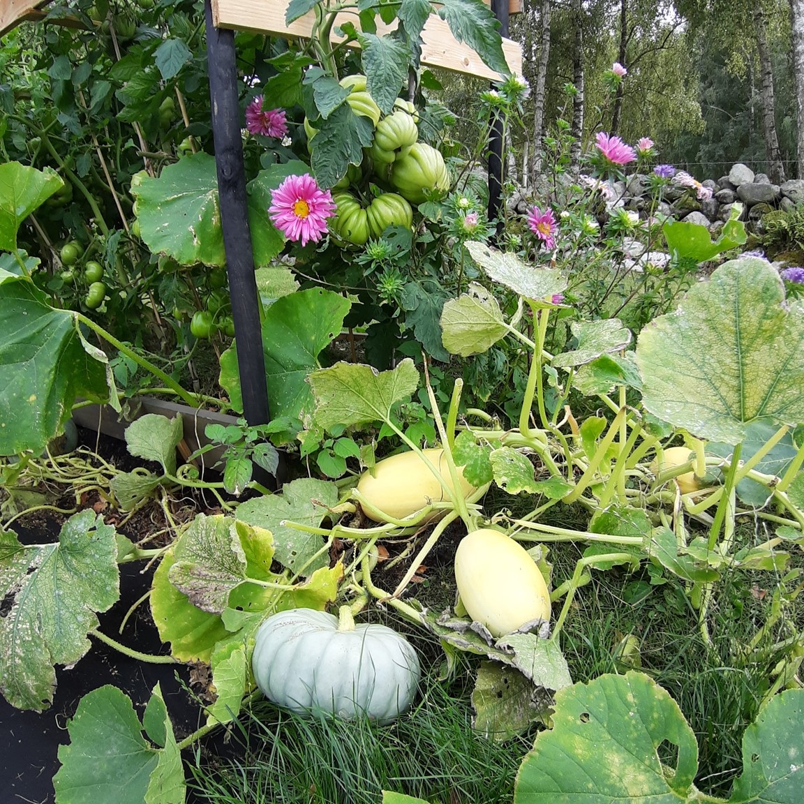 Årets tema för 1000 trädgårdar är självhushåll och ätbart, eftersom det är min utgångspunkt öppnar jag gärna upp min trädgård. Kanske kan den inspirera andra till att få mer utbyte av gräsmattan? Men jag poängterar starkt att det är ingen tjusig visningsträdgård. Huset är nybyggt de senaste åren och i väntan på iordningställande av trädgården började jag helt opretentiöst rakt ner i backen att odla ätbart. Här finns lite av varje, jag experimenterar mig fortfarande fram och har mest roligt! Jag har ett bevattningssystem med dropp från Gjordnära som jag lovordar högt, det sparar tid, vatten och är effektivt. Jag gör gödselvatten av nässlor/ åkerfräken och bokashi för näringsgödsling. Använder gräsklipp till täckodling och matar jorden med annat gott. Det som jag mest odlar är tomater, bara på friland. Detta året testar jag i hinkar mot söder-vägg för att se om det blir stor skillnad mot vanlig bädd , men busktomaterna står i landet som vanligt. Nytt i år är också lagringstomater piennolo. Lite gurka, pumpa, squash. Lite kål, kålrabbi olika bönor och ärtor. Mycket basilika, sallad och mangold. Lite sparris, vitlök och mycket blåbärstry. Jag har i år planterat ett kvitten träd och hasselnöt. Min granne Fia säljer mumsig fika och det finns gott om plats att sitta ner en stund, kanske ta tillfället till ett dopp i havet också. Välkomna att inspireras till mer ätbart.