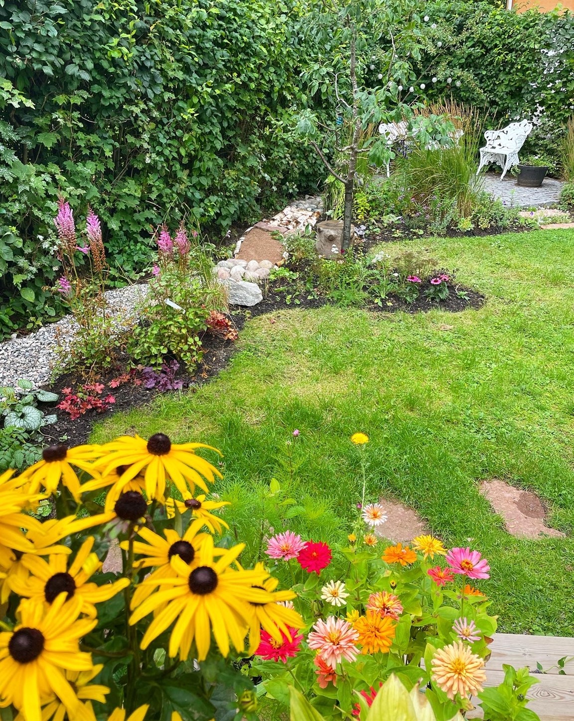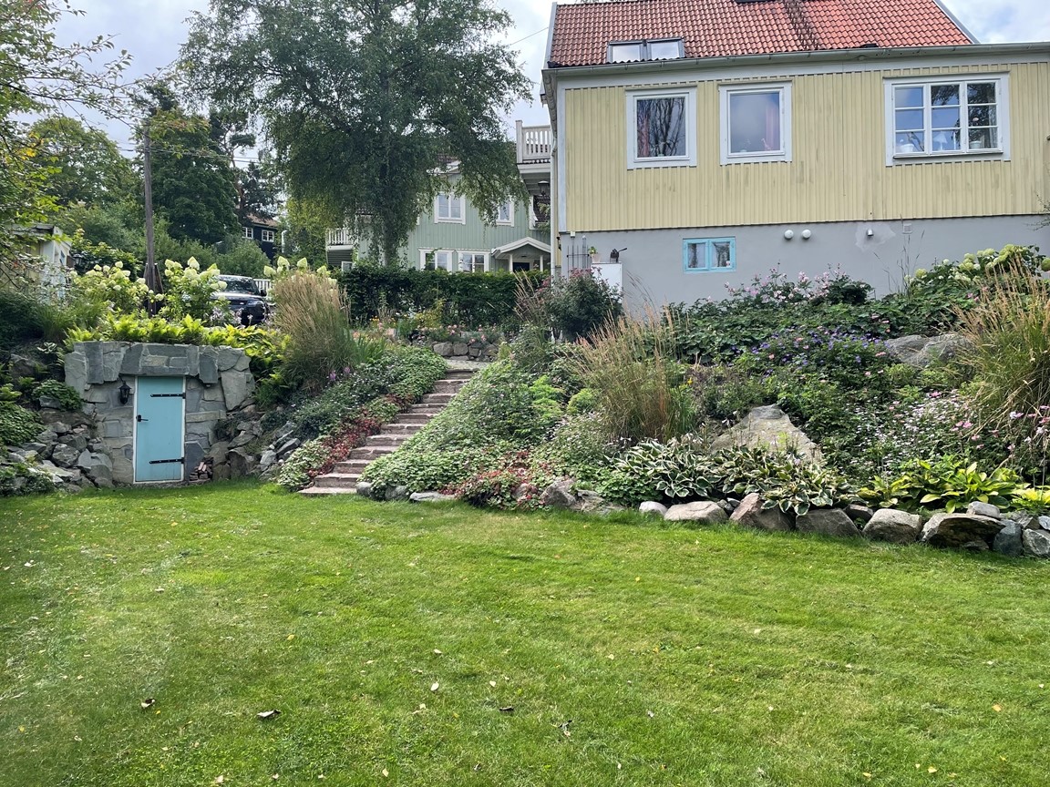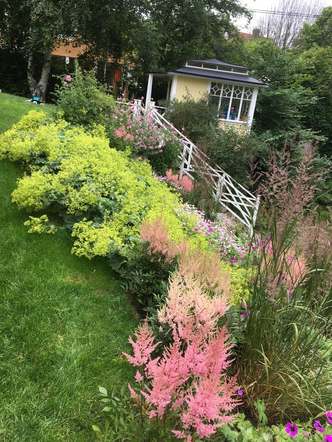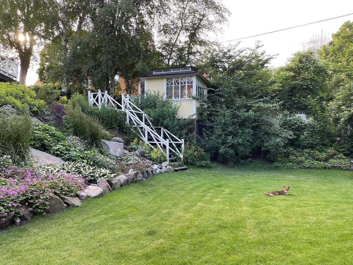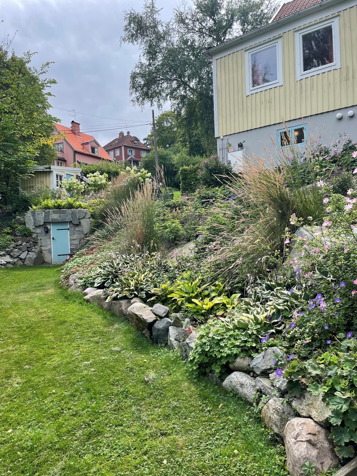 Välkommen till vår villaträdgård i trädgårdsstaden Bromma på ca 900 kvm. Vi har bott här sedan 2016 och trädgårdsintresset har växt under dessa år. Vi gjorde en större omstrukturering 2018, men mycket har här sedan dess. Mest blommor men även lite grönsaksodlingar. intresse för biologisk mångfald och eko-tänk har alltid funnits men har också vuxit allt mer. Vi har en jordkällare, sandlåda gjord av återbrukade stubbar och vi har också ett charmigt lusthus med en rävfamilj som bor under.
