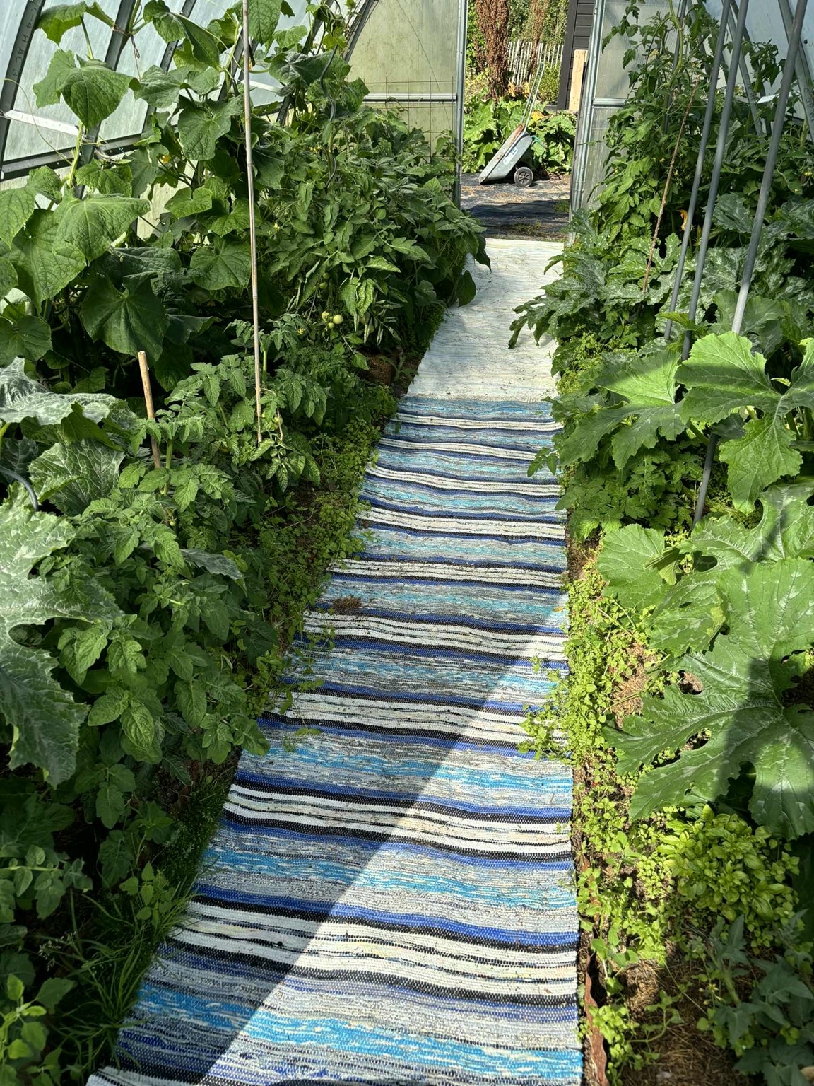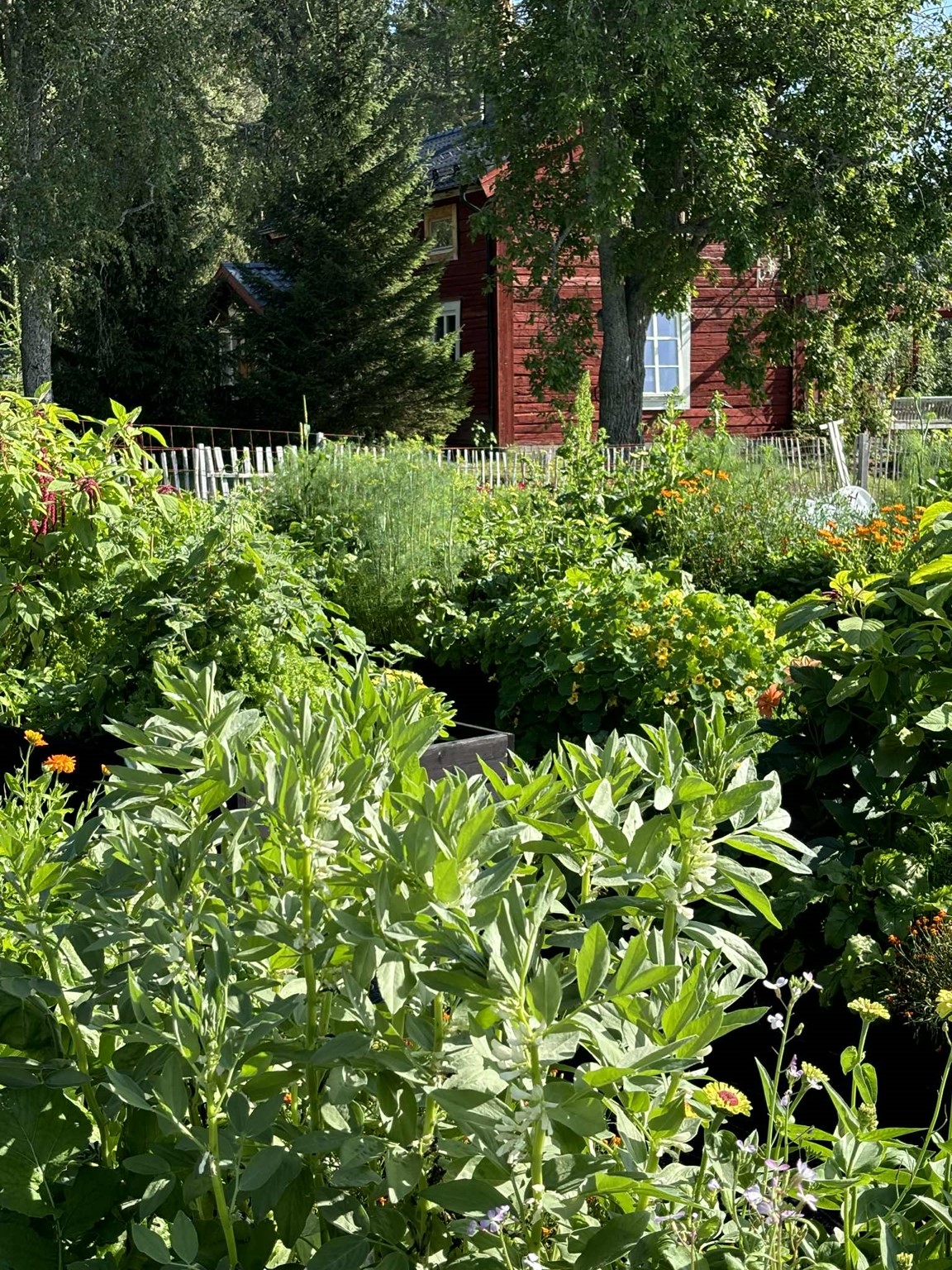 Utmaningen har alltid varit den leriga och kompakta jorden. Vi tillför mycket mullämnen i form av bokashi, fermenterat växtmaterial med EM och gräsklipp. Gårdens höns och påfåglar bidrar med värdefull gödsel och jordförbättring. Den som vill lära mer om att skapa sin egen jorförbättring/gödsel kan besöka vår utställning.