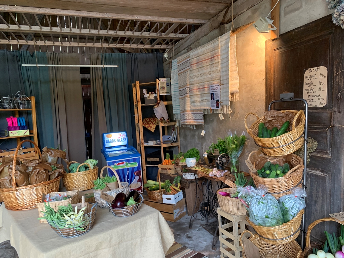 Gårdsbutiken är "sparrisöppen" i maj. Här säljer vi sedan alla sorters grönsaker och örter vi producerar, blommor, odlingshjälpmedel, lokalt mathantverk m.m. Varje dag under öppettider kan du gå en Guidad tur kl 17.00.