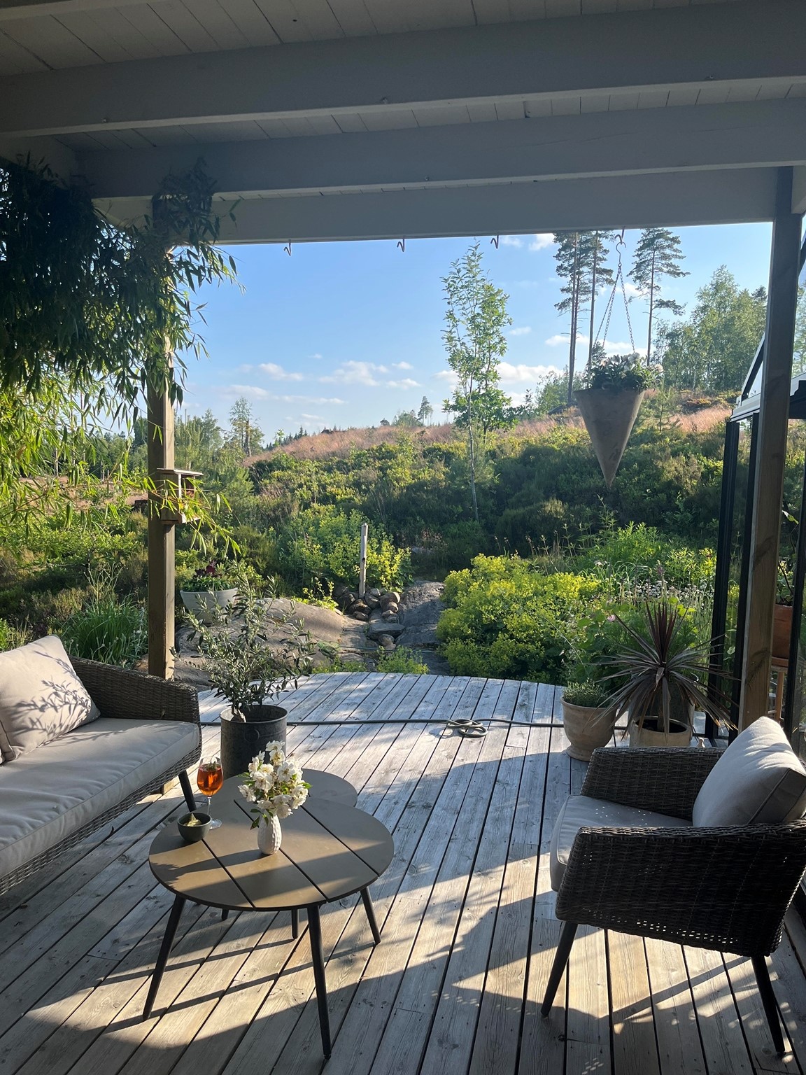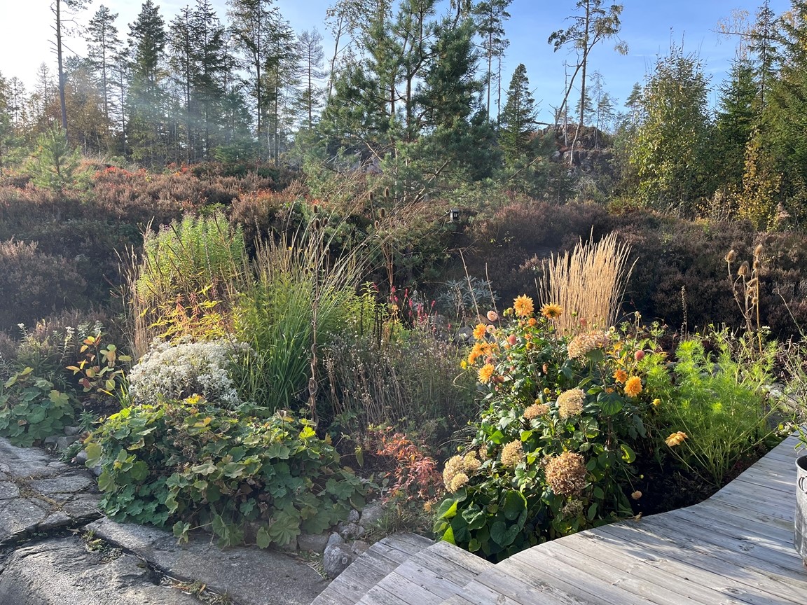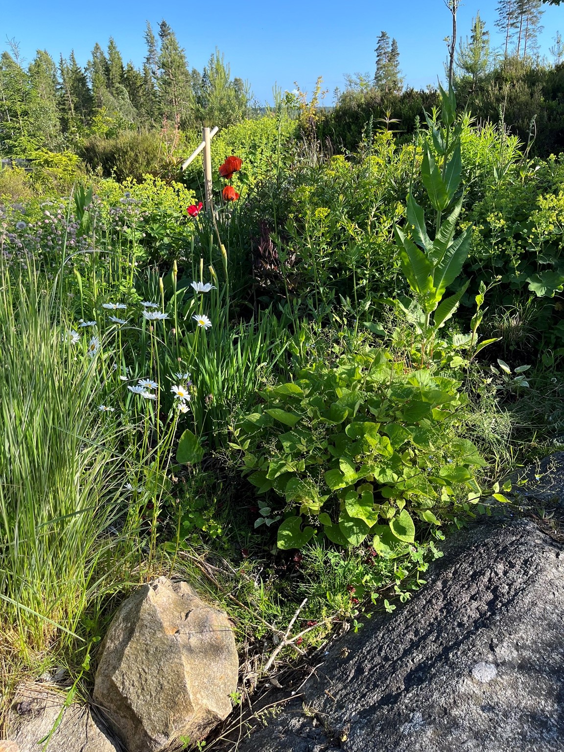 En egen anlagd och skapad naturlig trädgård från en skogsplätt med sly för ca 15 år sedan. Lånar in landskapets vyer och växter, i Hindås utanför Göteborg i zon 5. Odlar under 2024 snittblommor för egenhushållning, tillsammans med favoritgrönsaker i min portager. I växthuset odlas förutom givna tomater och slanggurka alltid någon ny lite annorlunda sort eller spännande grönsak.