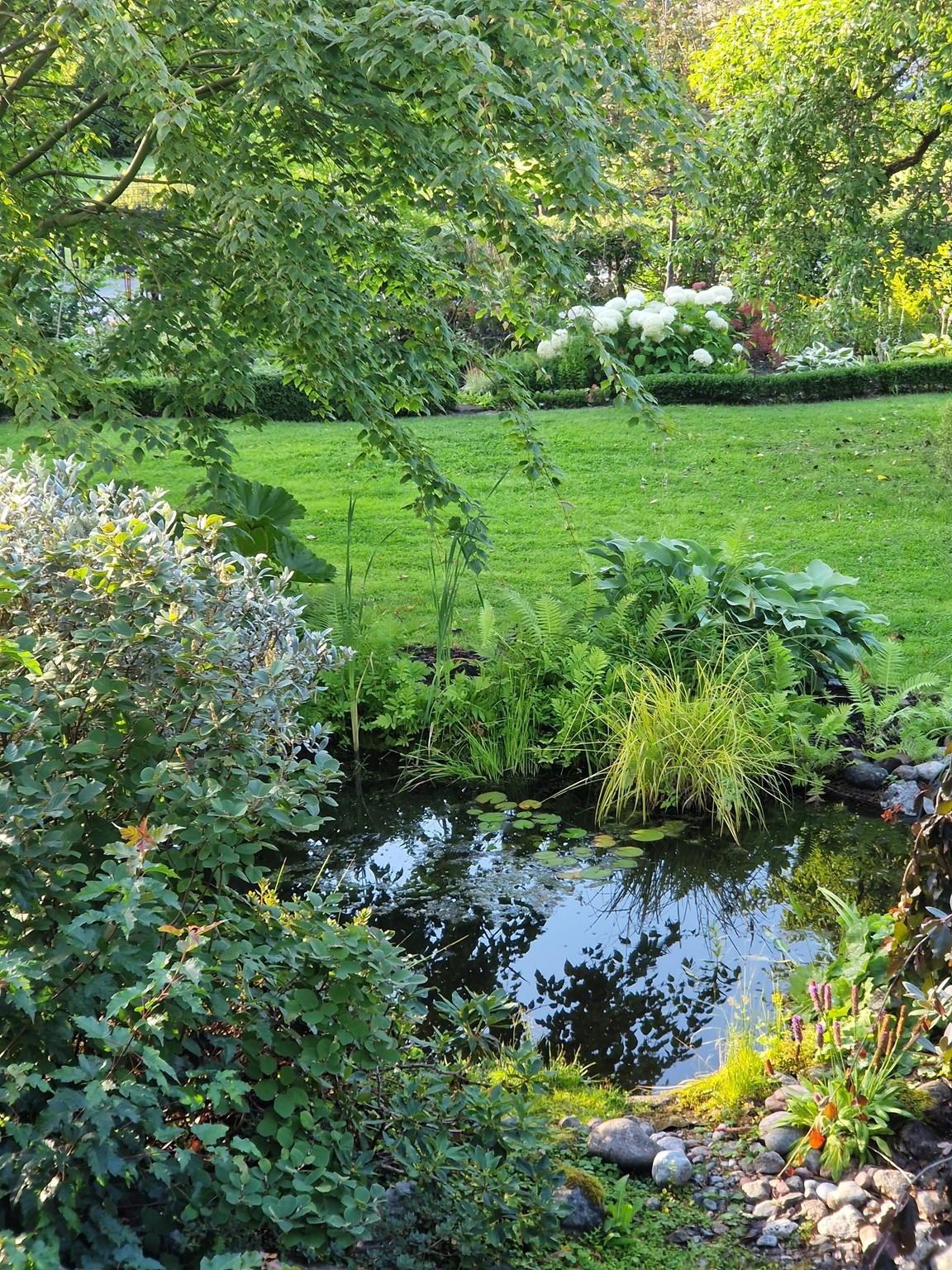 I den nedre delen finns fruktträd och bärbuskar men också prydnadsträd som  magnolior, lönnar.