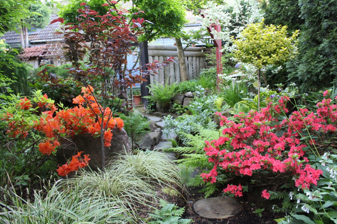 - Vatten/damm, barrväxter, rhododendron, perenner