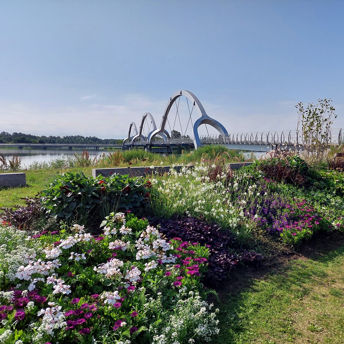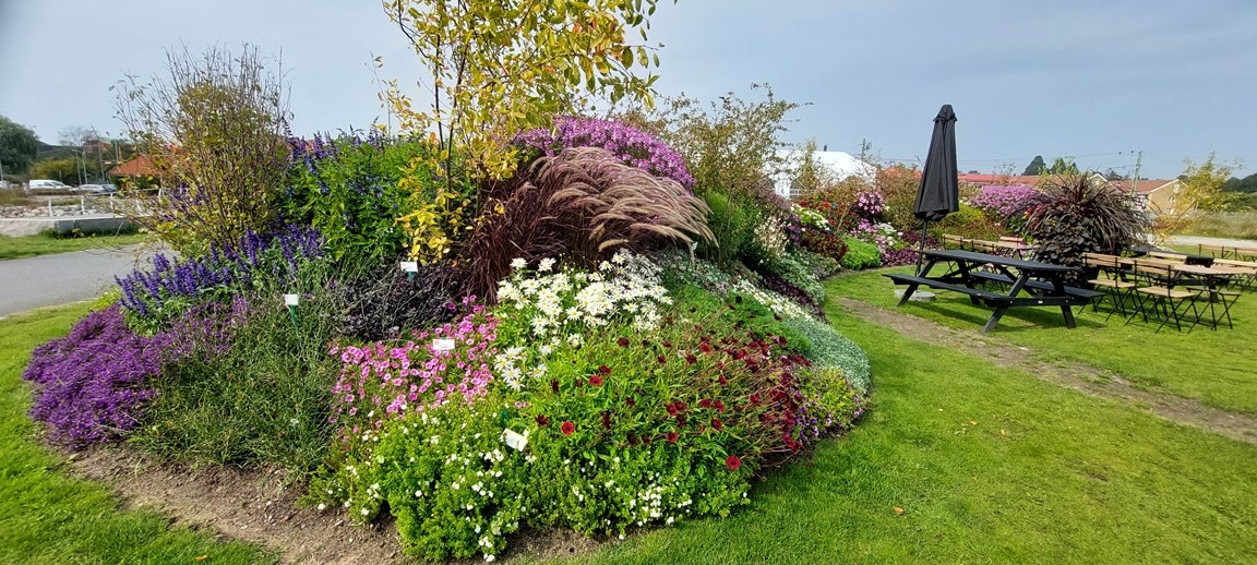 Här vid Brofästet i Sölvesborg kan du som besökare titta på ca 4500 blommor, över 100 olika sorter, fördelade i tre stora rabatter. Fint beläge precis vid vattnet och Sölvesborgsbron.