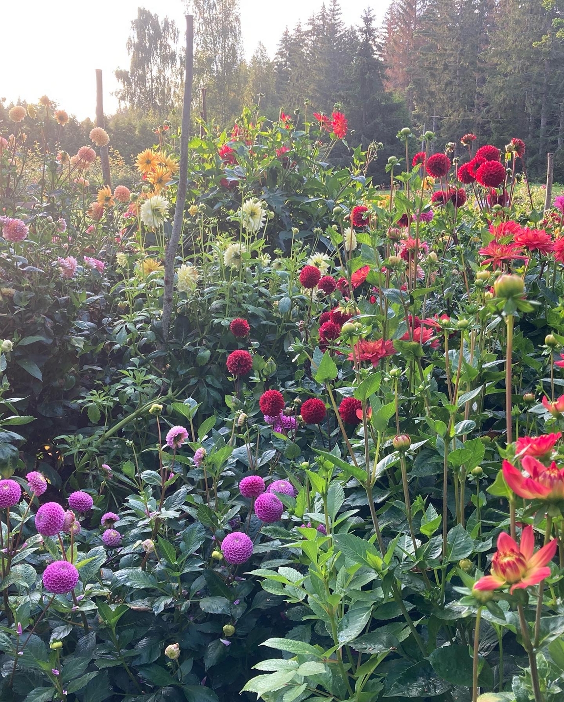 Rosor, dahlior, biologisk mångfald, snittblomsodlare, växthus, grönsaker.