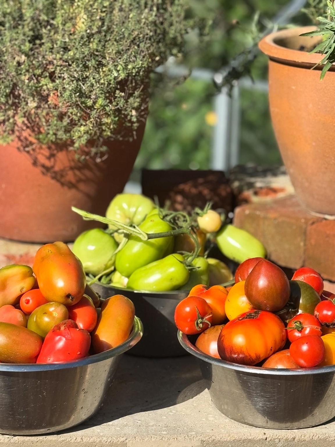 En flirt med Frankrike och en flirt med Grekland, fokus på köksträdgård och ätbart men även perenner, citrus och brocante 🇫🇷
