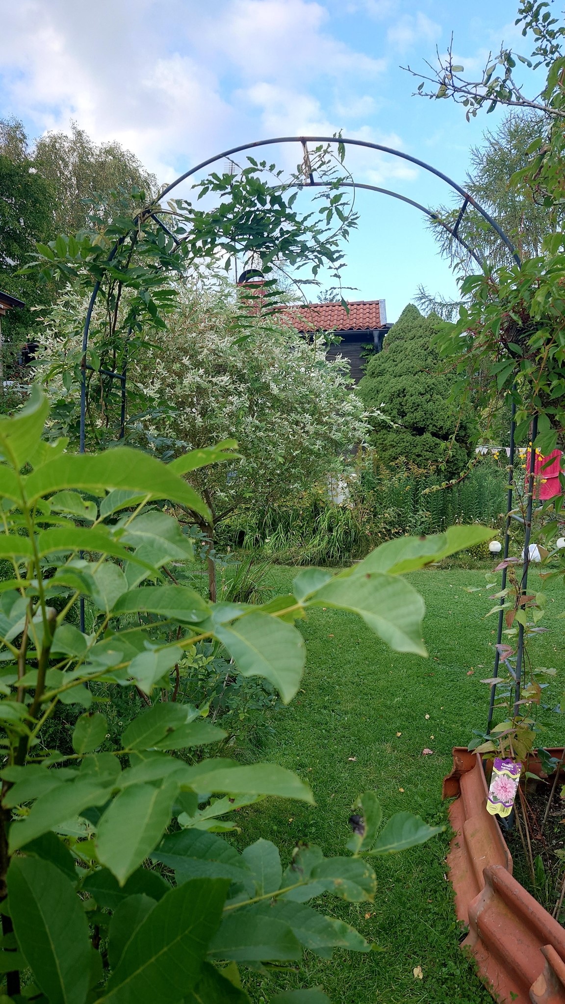 Hej, En multikulturell paradisträdgård i tre nivåer, växthus med vinrankor,damm med grodyngel och salamandrar,här samsas gamla äppelträd, valnötsträd, sibirisk lärk, pelargoner, oliver,fikon, citrus, avokado, afrikansk stjärna, kamelia och dahlior . Delaram som betyder " där själen vilar" .