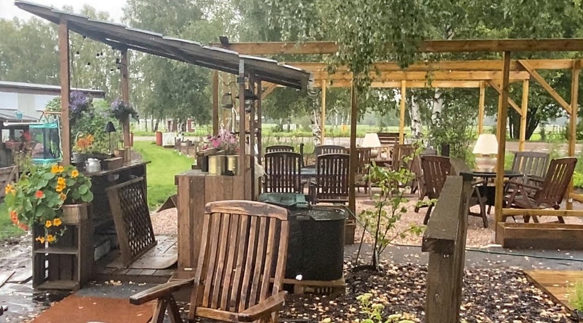 Ta med dig picknickkorgen. Det finns flertalet bord och sittplatser och en centralt belägen lekplats för yngre barn precis intill sittplatserna i trädgården.