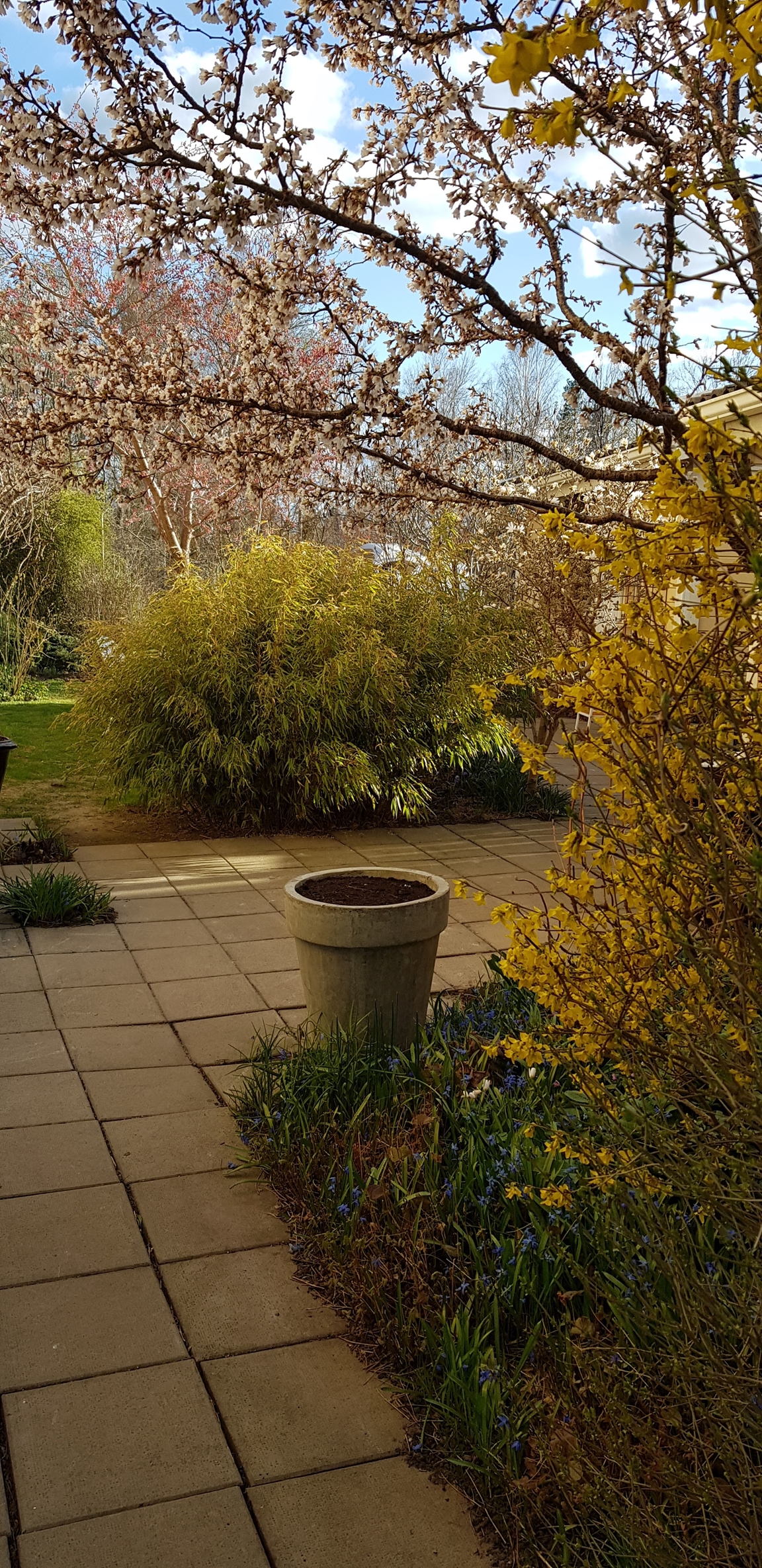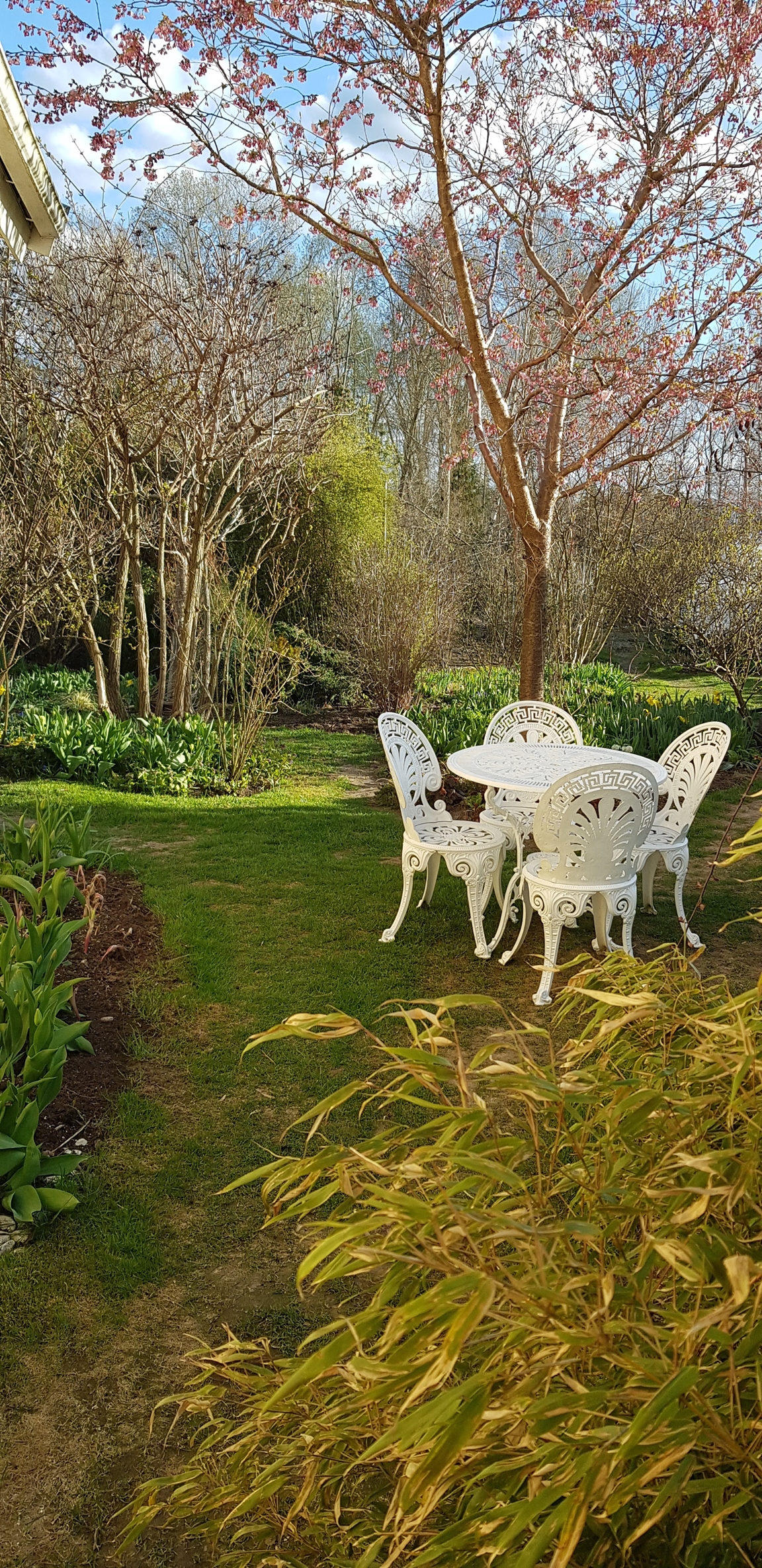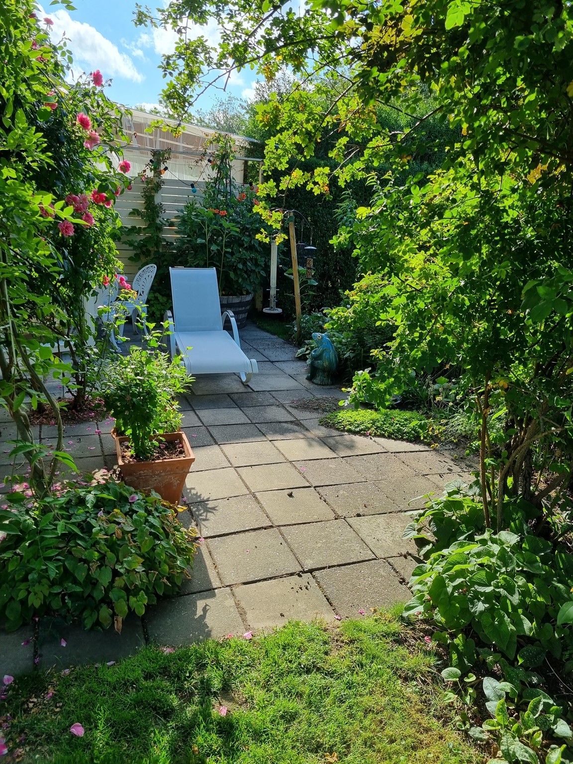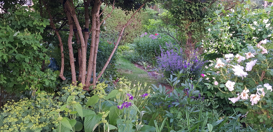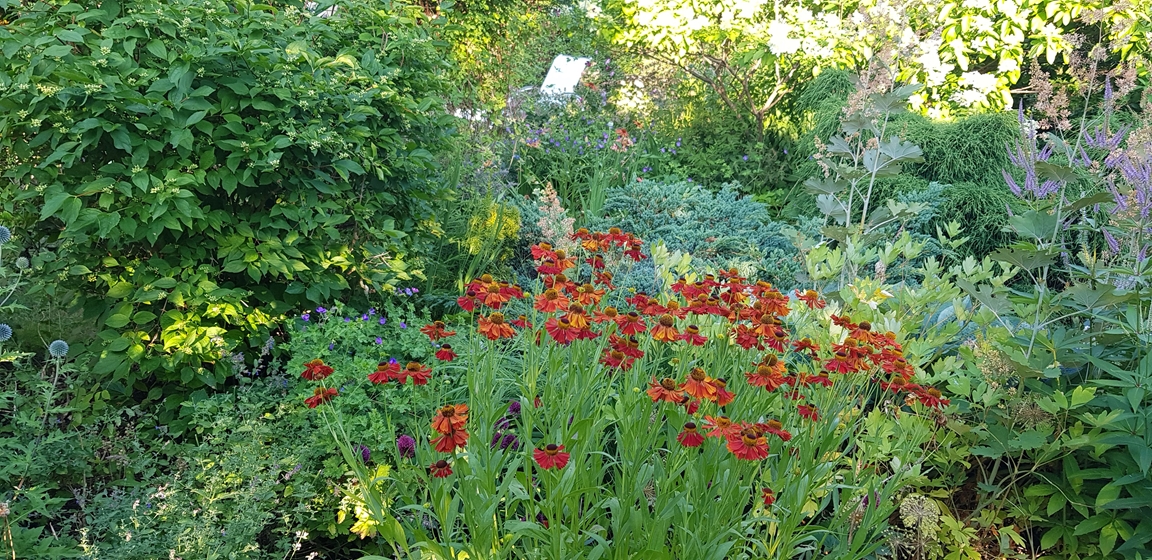 En liten trädgård på ca 300 kvm där det ständigt blir fler växter och skapas nya projekt. Allt med en minimal budget men med stor glädje. Allra färgstarkast är det i tulpantider. Har flera tusen tulpaner som lyser i många färger. Ett del av trädgården har röjts från massa pil och slån under ett par år. . Två grönsaksland har vi byggt. Stor vall av schacktmassor från husets byggande finns kvar. Där har jag planterat mycket bär och en del perenner