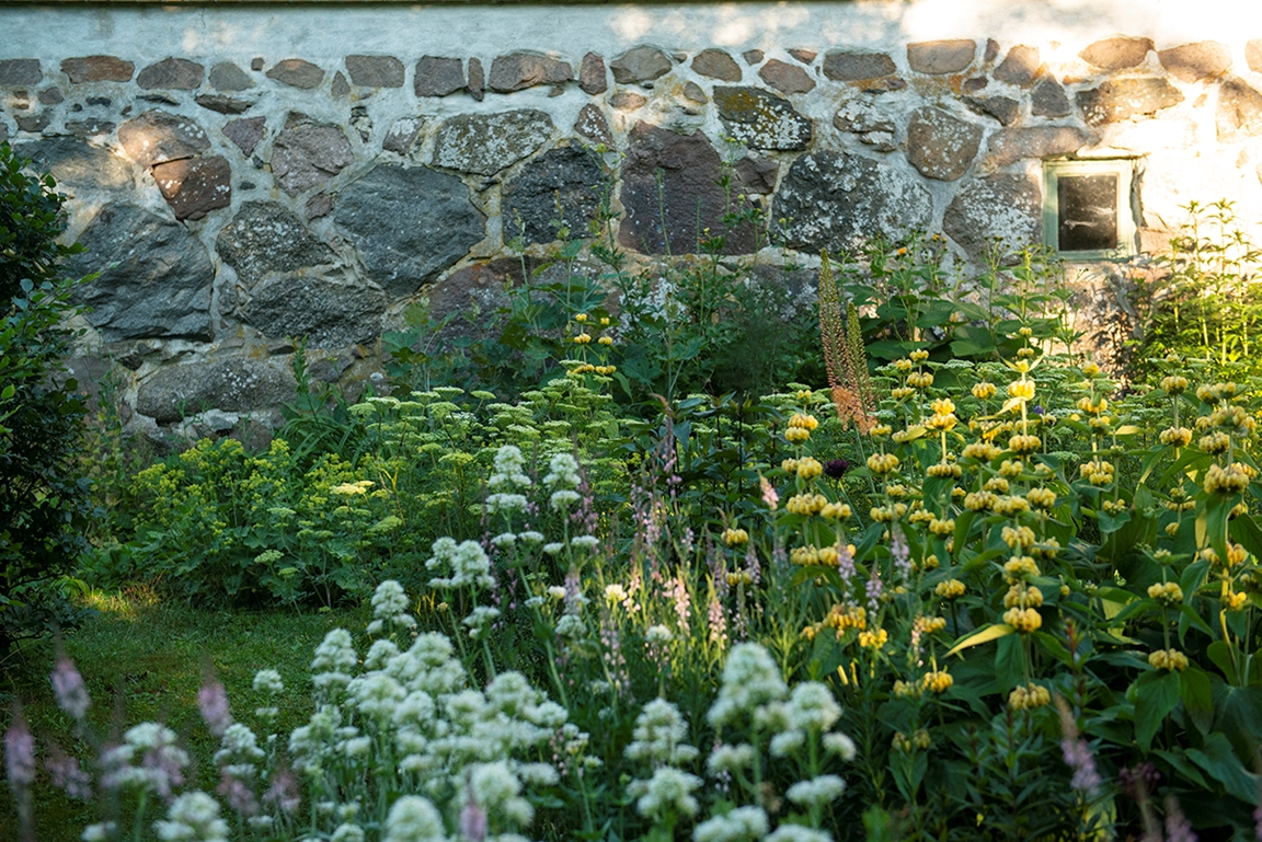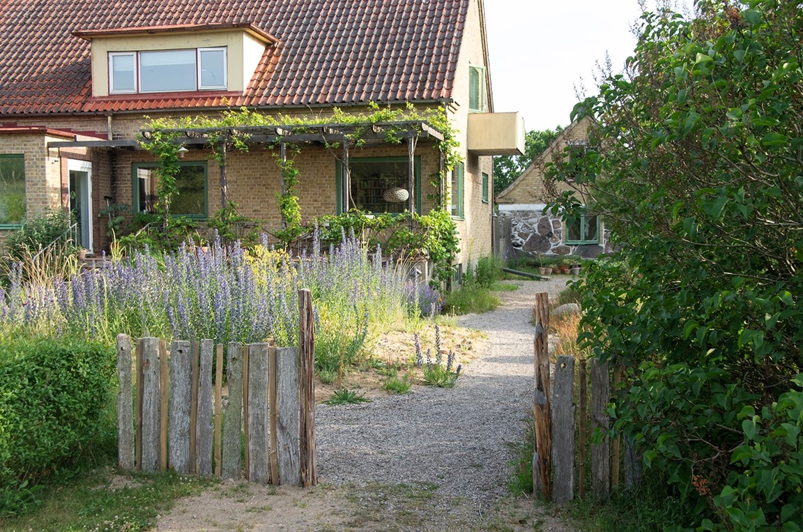 Trädgården ligger i ett landskap med sandbackar och naturreservat som granne. Här finns rabatter med torktåliga perenner, trädgårdsängar, grusträdgård, stor köksträdgård. Trädgården är skapad både utifrån att den ska vara vacker men också med ett inkluderande tankesätt när det gäller vilda växter som är hemmahörande i området och insektsvänliga växter. I trädgården är det planterat lökväxter, perenner och blommande buskar för att ha en varierad blomning från tidig vår till sen höst. På våra omgivande 6 ha mark arbetar vi för att skapa en varierad miljö för att främja den biologiska mångfalden.Försäljning av vilda växter (uppdragna från frö) och torktåliga perenner.