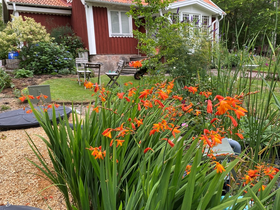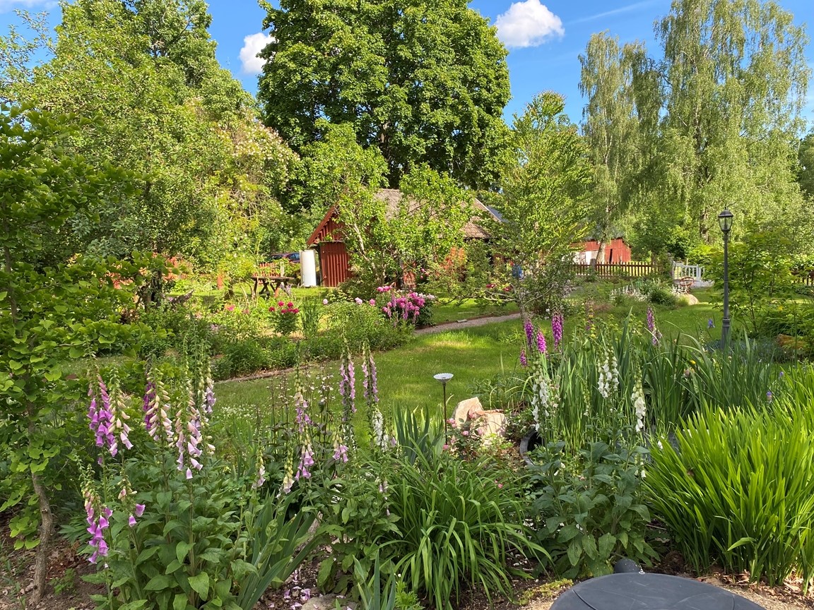 Torpställe i stenriket, gränsande till hagmark och lövskog. 2600 kvm trädgård med inslag av natur. Mossiga stenar och vandrande skugga. Prydnadsbuskar, klängväxter och perenner. Lundparti under uppbyggnad. Växthus på mur. Avloppsreningsdamm med omgivande planteringar. Många rosor, de flesta gammaldags. Medlem i Sydostrosen/Svenska Rosensällskapet och Sällskapet Trädgårdsamatörerna.