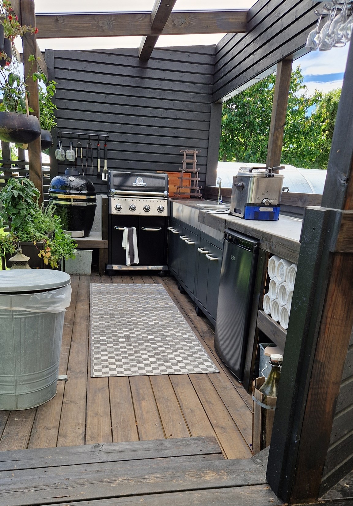 Nytt under våren 2025 är vårt utekök och 'fusk-växthus'.