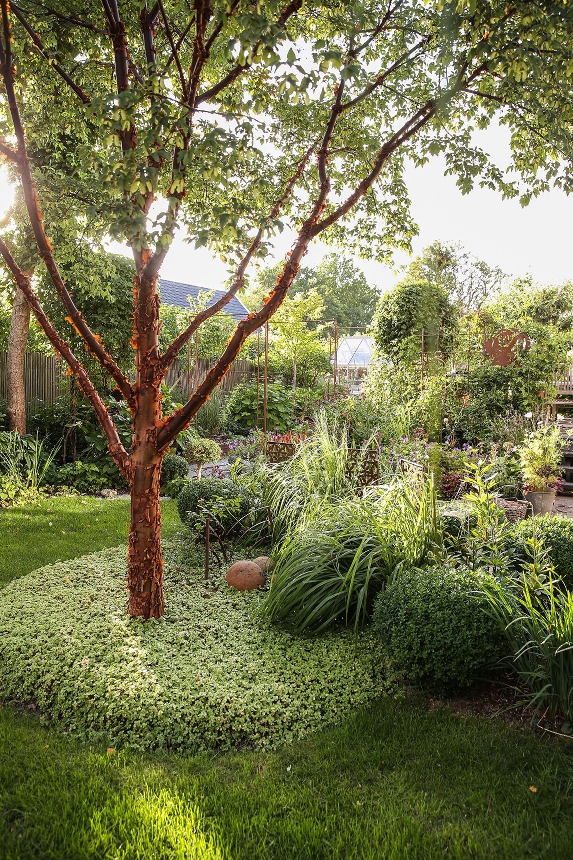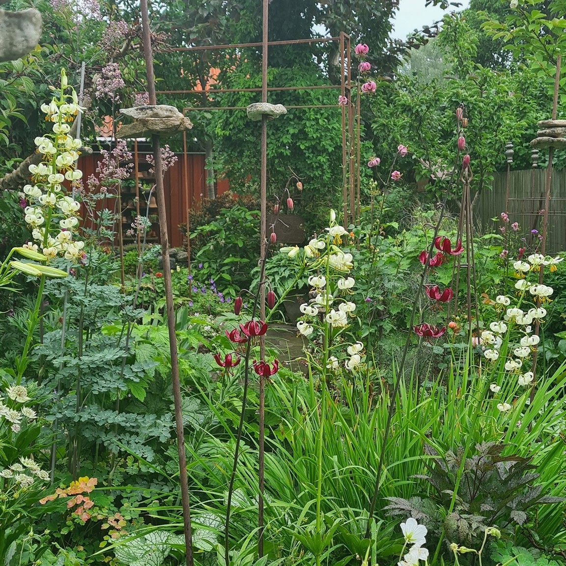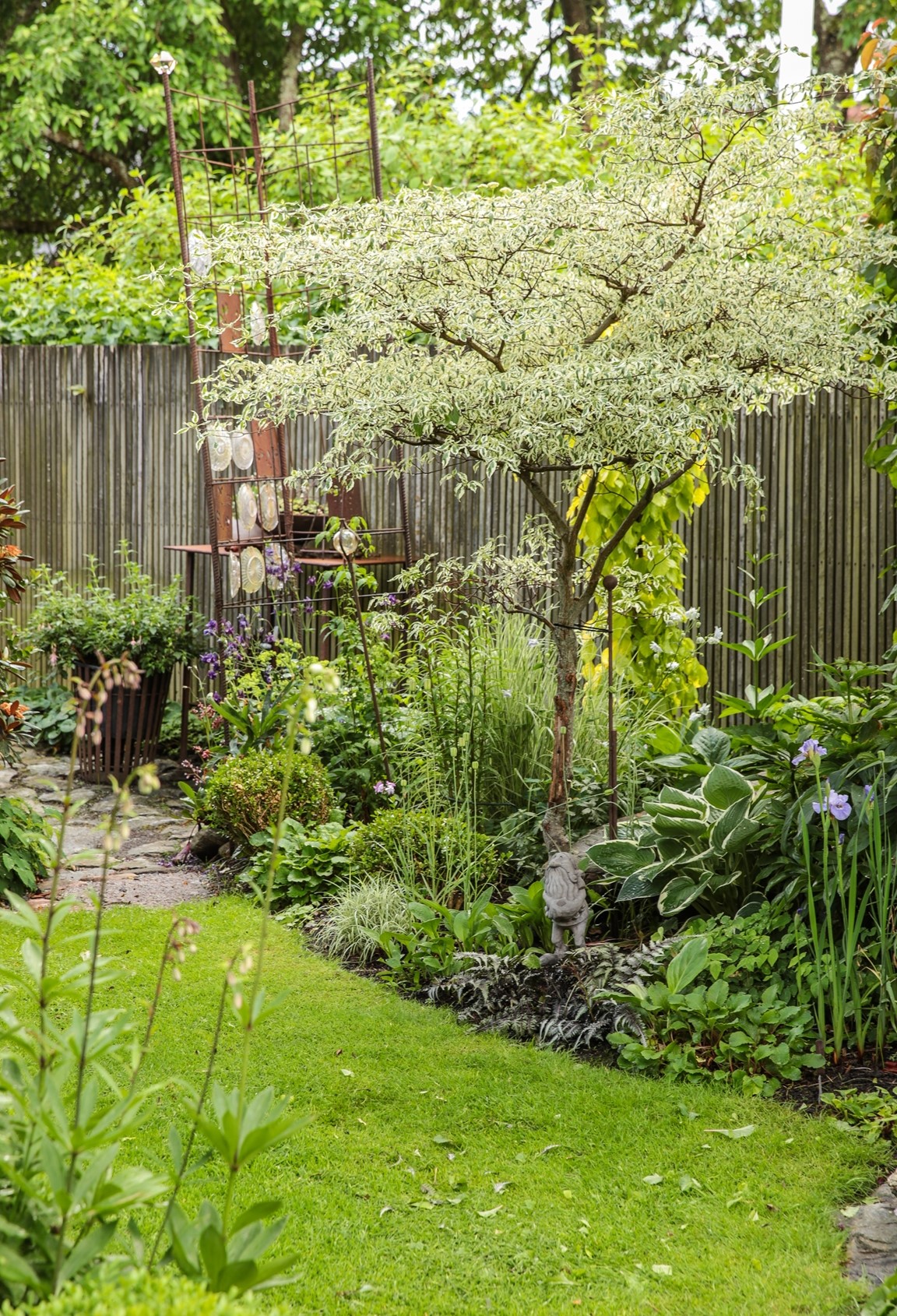 Tycker om nästan allt som har med trädgård att göra. Blåsippor, julrosor och snödroppar hör nog till de växter jag har lättast att falla för men det är lätt, mycket lätt att få nya favoriter. Vår trädgård, en liten villaträdgård på ca 600 m² har under de mer än 30 år som jag varit trädgårdsintresserad vuxit upp. En del växter, både buskar, perenner och träd har under senare år blivit för stora. Därför har träd klippts in, stammats upp eller tagits bort och det samma gäller perenner som snabbt spridit sig med underjordiska utlöpare. I slutet av juni är nästan försommarblomningen över och trädgården har börjat övergå i den lugna gröna fasen innan sensommarblomningen tar fart med flox och stormhattar. Ja lugn och lugn, fortfarande blommar då krolliljorna och kanske en och annan pion. Vi har varit med och visat vår lilla trädgård ganska många gånger under årens lopp och det har alltid varit väldigt roligt att träffa likasinnade men nu är vi med som visningsträdgård för sista gången. I fortsättningen skall jag göra som tjuren Ferdinand, bara vara och njuta av tillvaron. Hjärtligt välkomna att titta förbi!