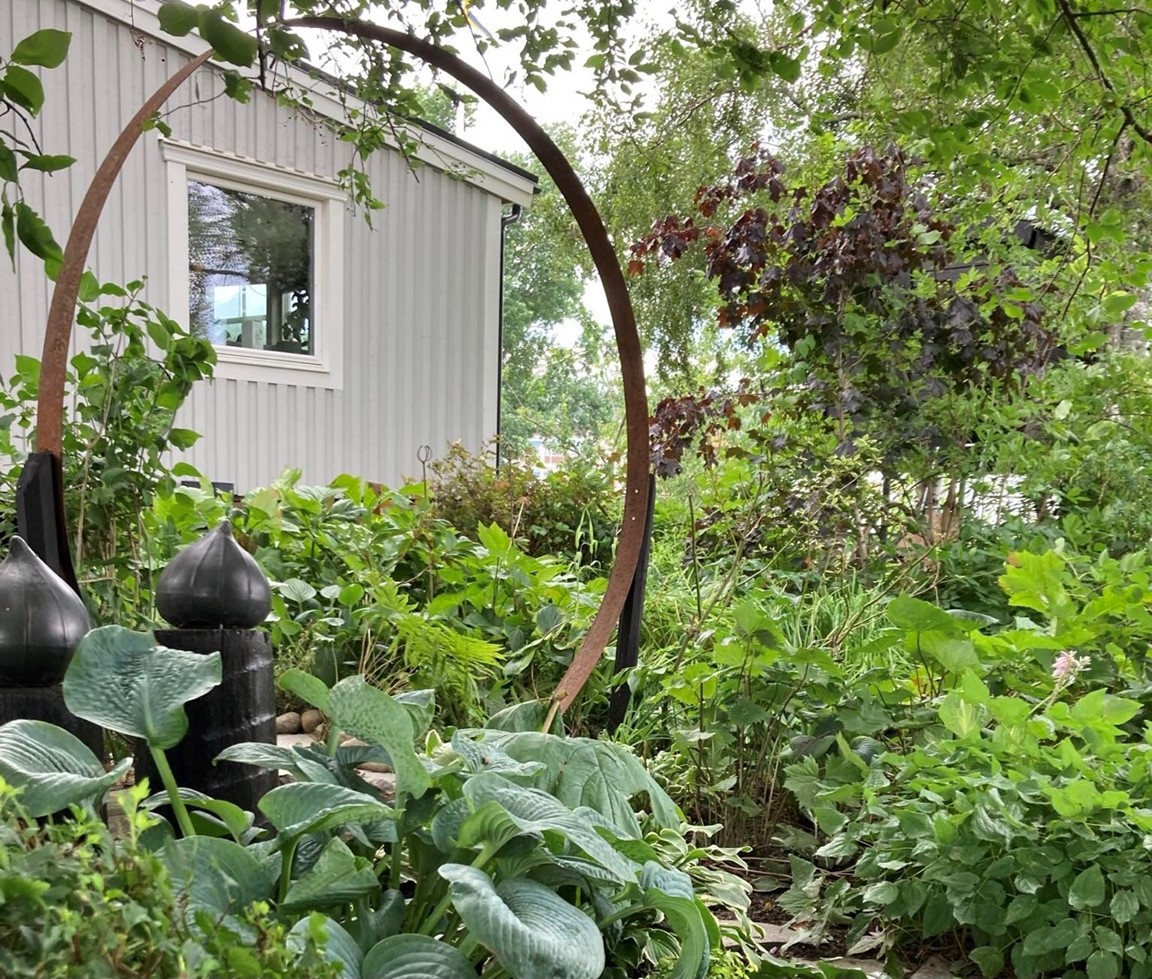 Anette har vackra, välkomponerade och frodiga rabatter med hostor, pioner, formklippta buskar och en och annan raritet. Anette har känsla för att få till det lilla extra och tittar man runt finns det massa kreativa idéer att inspireras av.