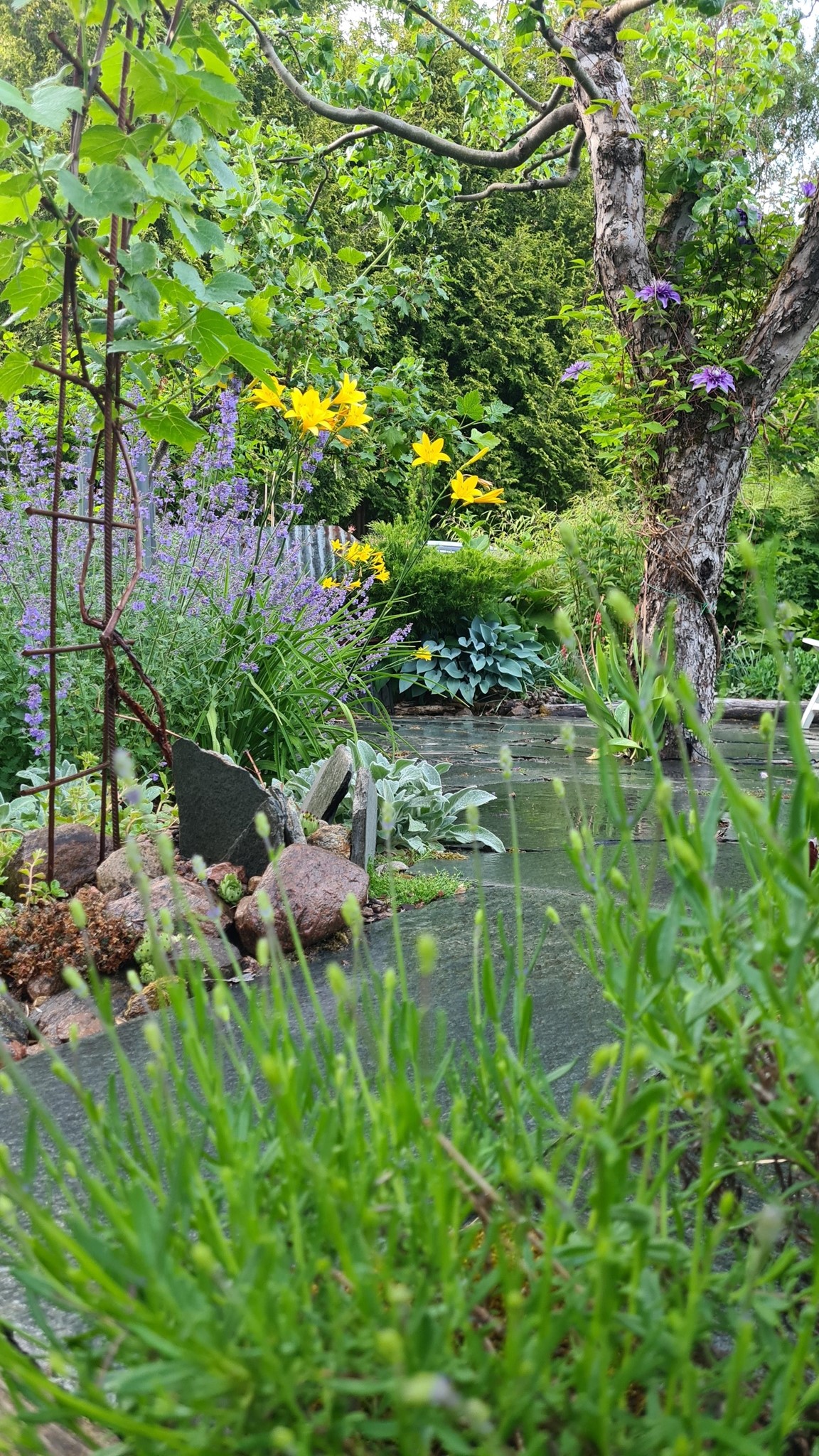 More is more, en salig blandning av stilar, växter och djur mer eller mindre välkomna;) en lekfull och lättsam oas skapad av glada amatörer, utefter vad lust, tid och blånbok kan erbjuda. Här samsas mandelträd och vinrankor med ormbunkar och blåbärsris. Höns och hallon, salvia och salamadrar.