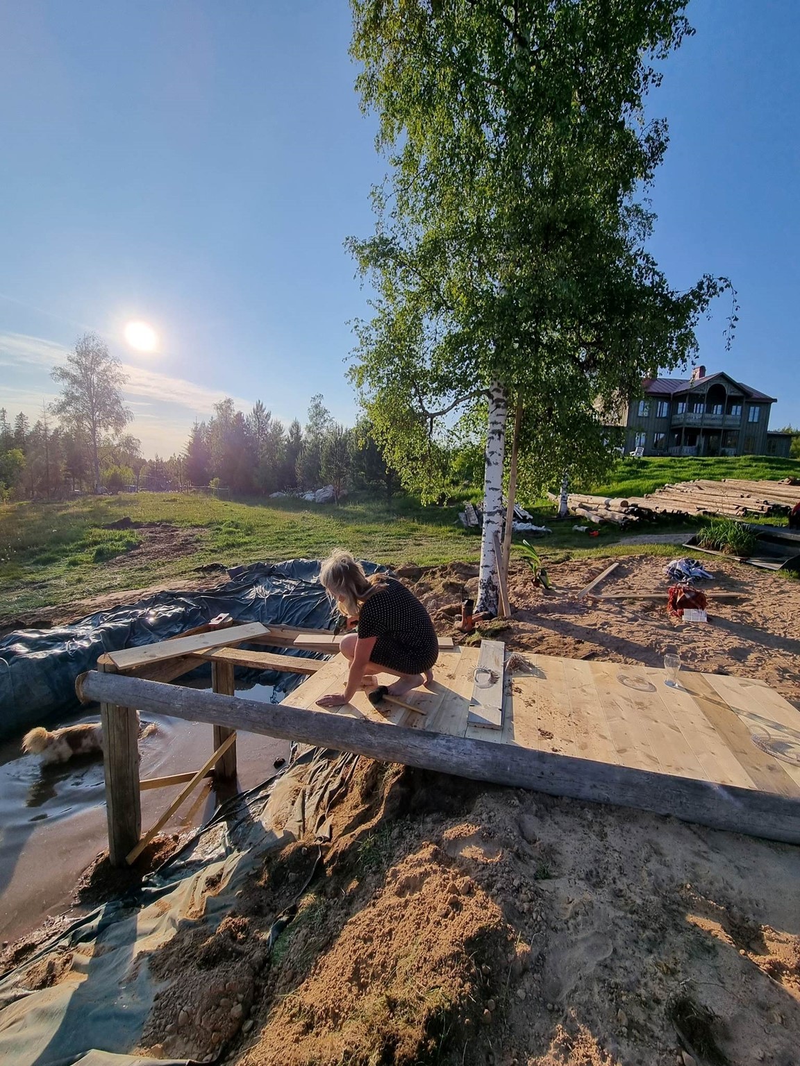 Sten som grävs upp på gården återanvänds i murar och grunder – här försöker vi låta material och landskap leva vidare i nya former.