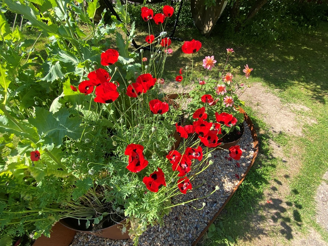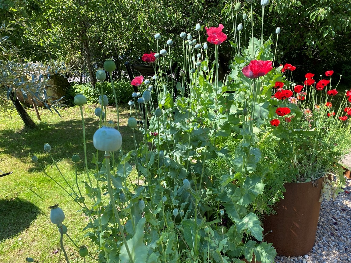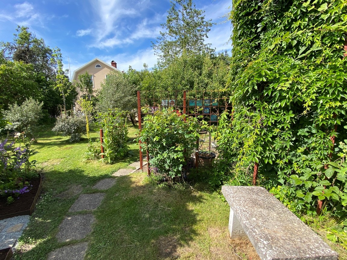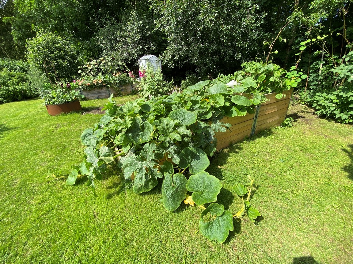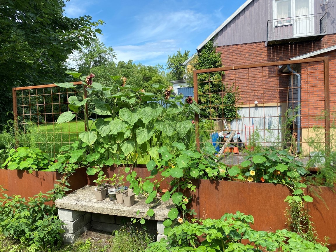 Vi flyttade in till trädgården sommaren 2022 och den är full av inspiration inbäddad i den vackraKinnekulle trakten. Trädgården har uppväxt som en vild och blomster trädgård för bi, humla och fjäril i ekologisk tanke över 20 år under tidigare ägares vård och jag fortsätter denna tanke. En trädgård i ständigt flytande process. Speciellt när en konstnär lämnar över till den nästa. Jag drömmer om att trädgården inte bara skapar ett mötesrum mellan natur – växligheter, insekter, djur och människor, men även att öppna en dialog till konsten.