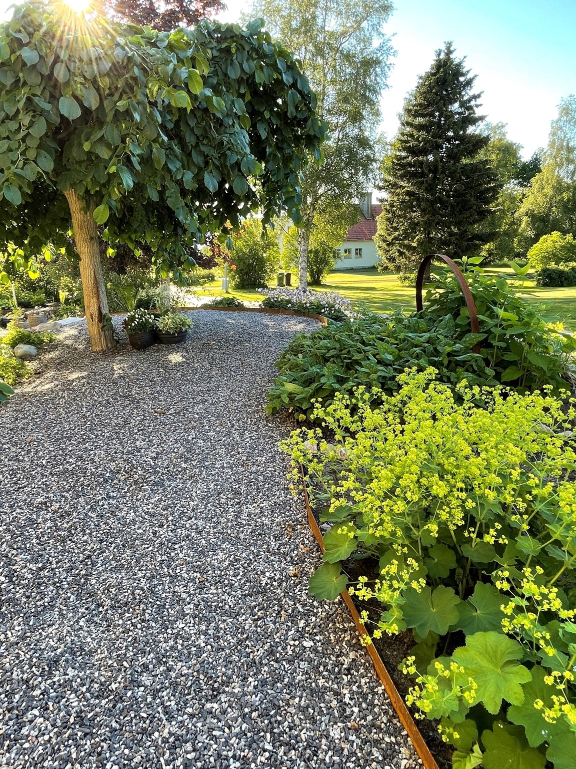 I den här trädgården är ambitionen att skapa rum för livet, solens magi och att få frodas i växtlighet. Trädgården består av flera rum som också senare kommer att få rum i rummen.