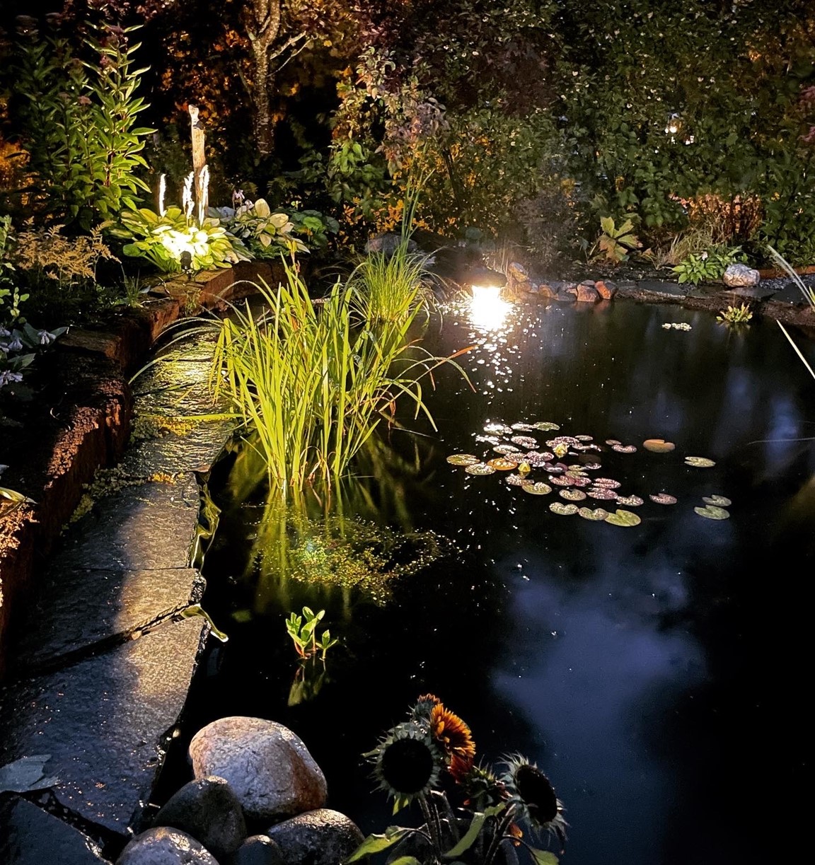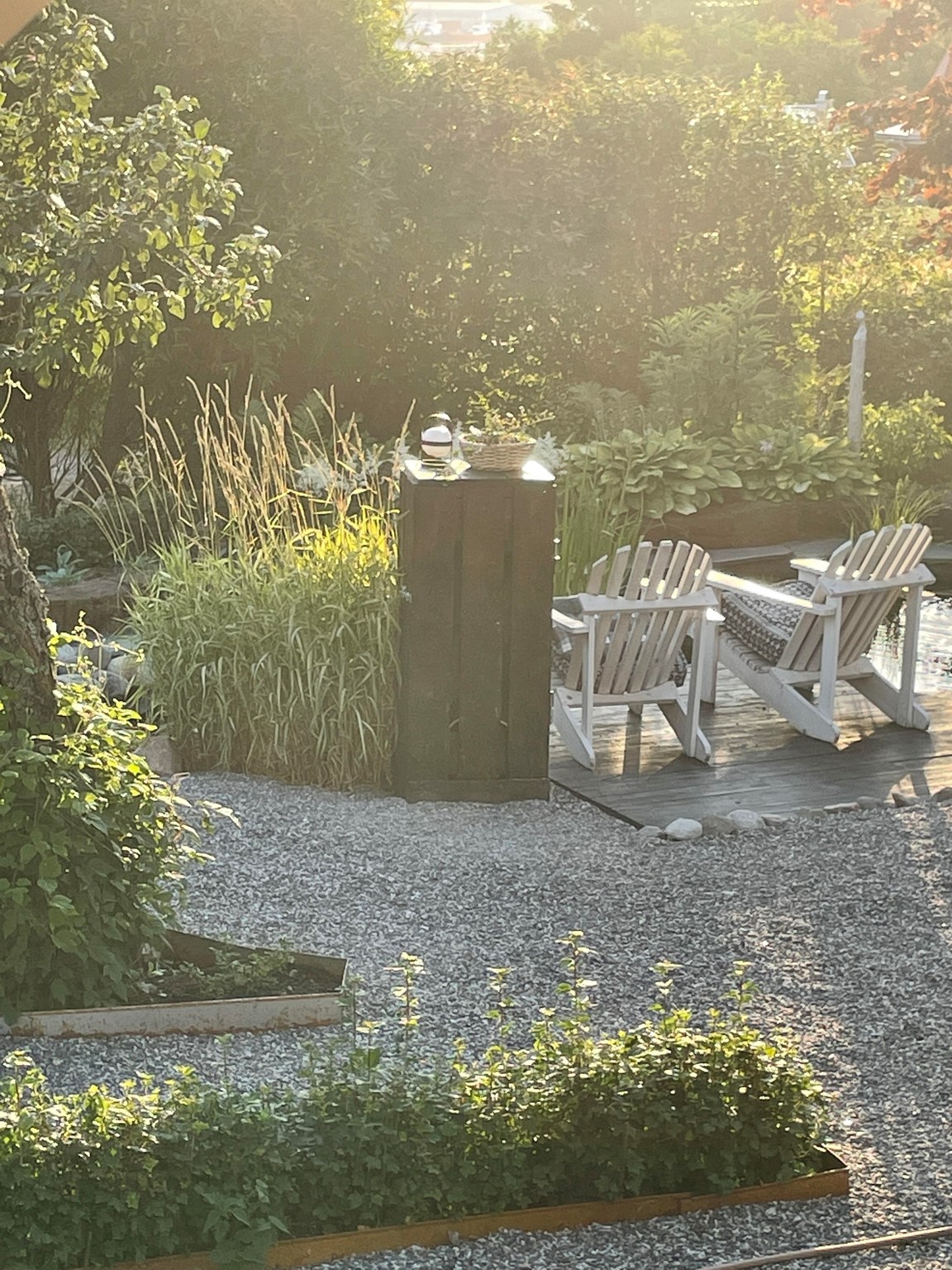 The Pondgarden - Med fokus på dammen så kretsar rummets rabatter kring denna. Dammen är inne på sitt tredje år och fokus har varit att integrera vatten med trädgården som en naturlig del. Allt för att locka ett rikare djurliv i trädgården. Rummet agerar loung för livet och det är här man sitter sent in på kvällen för att samtala med skräddare, trollsländor och fiskarna.