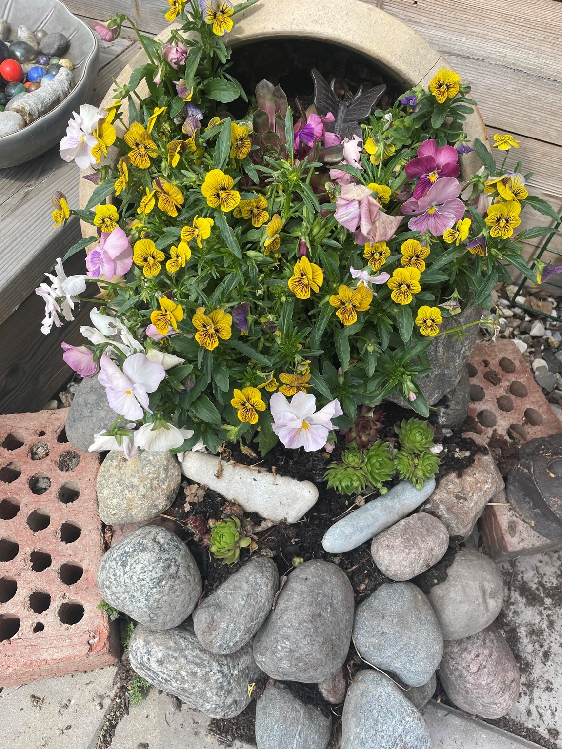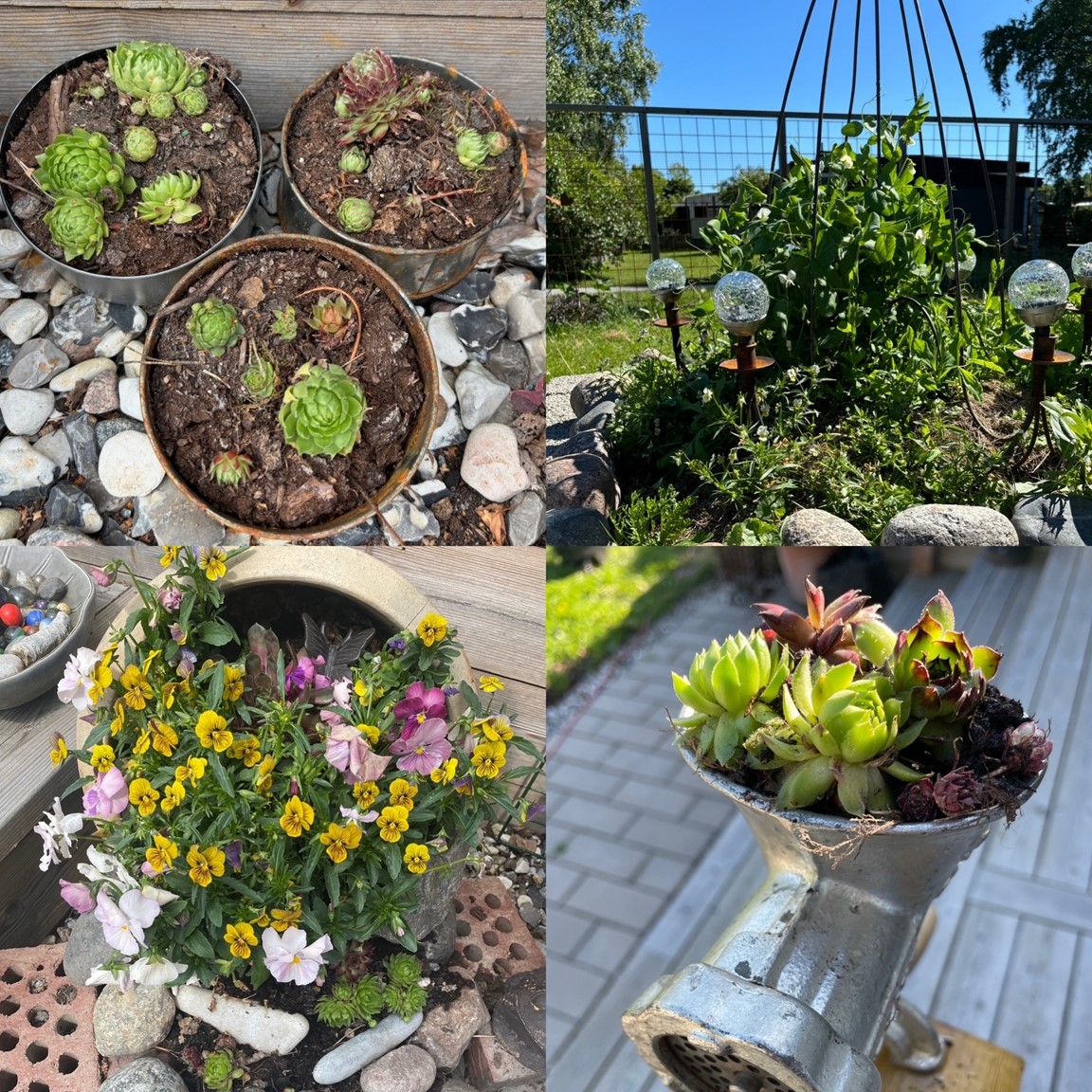 En radhusträdgård i återbrukets tecken. Jag odlar på samma sätt som jag som jag skapar, alltså med ledorden: kärlek, omtanke och återbruk. Jag följer inga regler och tar vad jag har eller får. Gör min egen jord, dekorerar och använder loppis fynd samt tar tillvara egna och grannarnas växtrester. Försöker återanvända allt jag kan och har även varm kompost, lövkompost och bokashi. Allt tas tillvara även ogräs. Att kunna producera mat till min egen familj är lika viktigt som att ta hand om pollinerare.