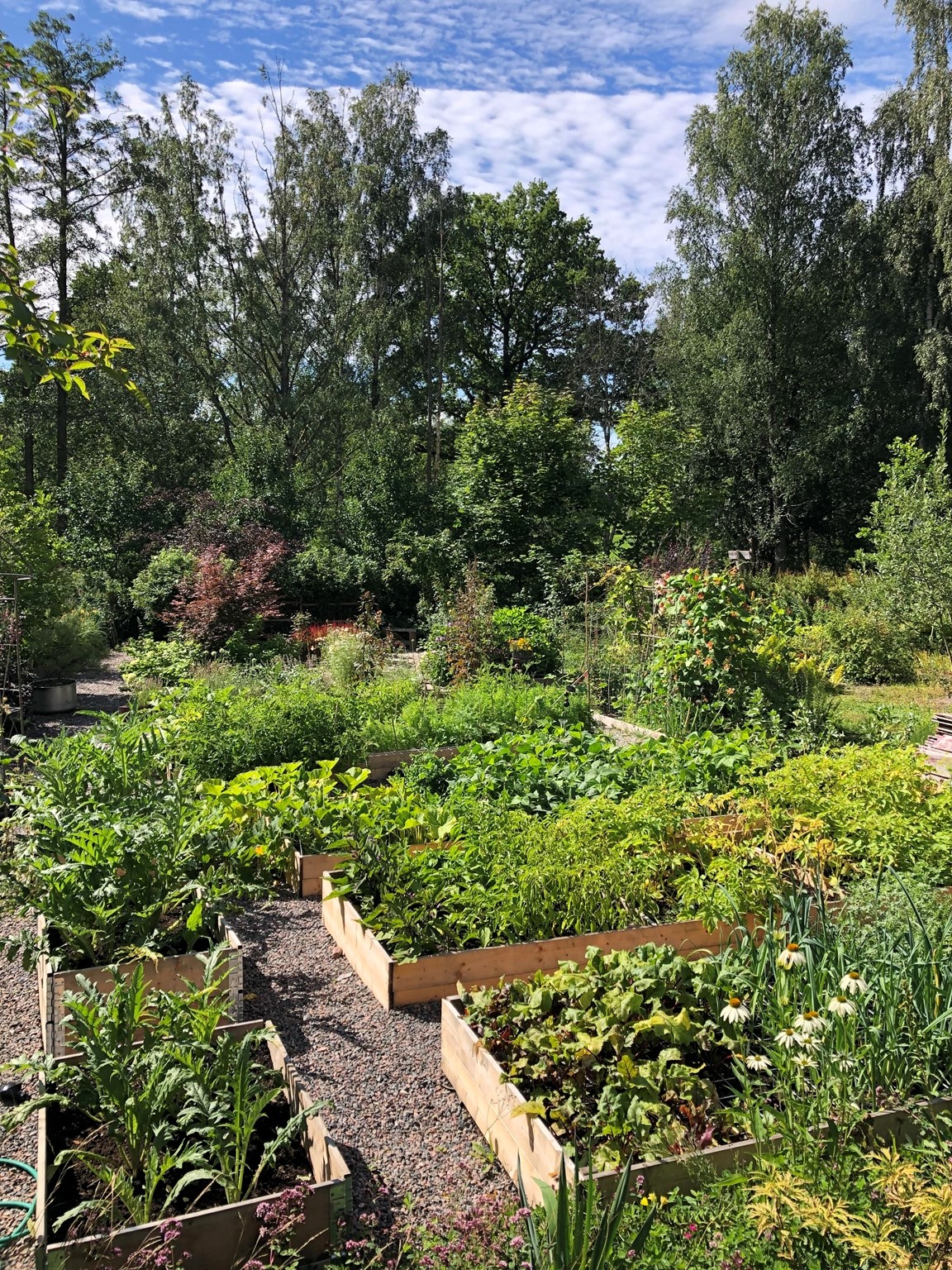 2) Att odla ekologiska grönsaker för att bli självförsörjande så mycket som möjligt. Det odlas olika grönsaker och örter. 🥦