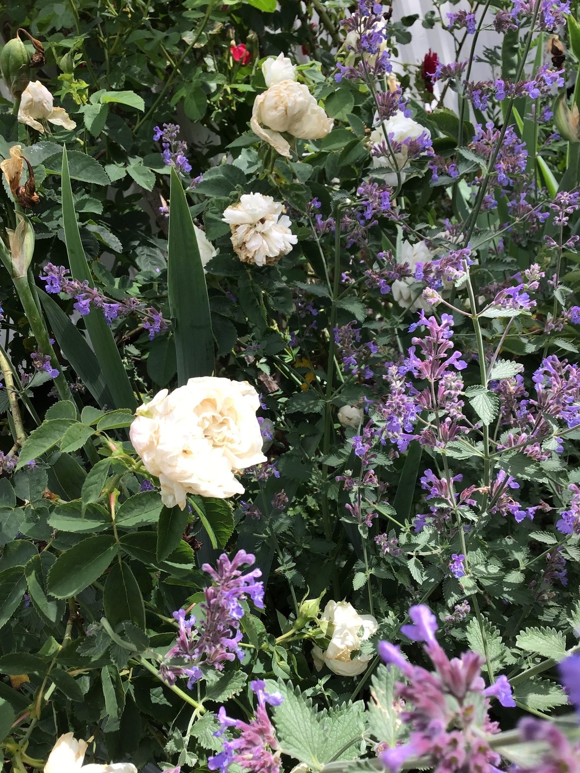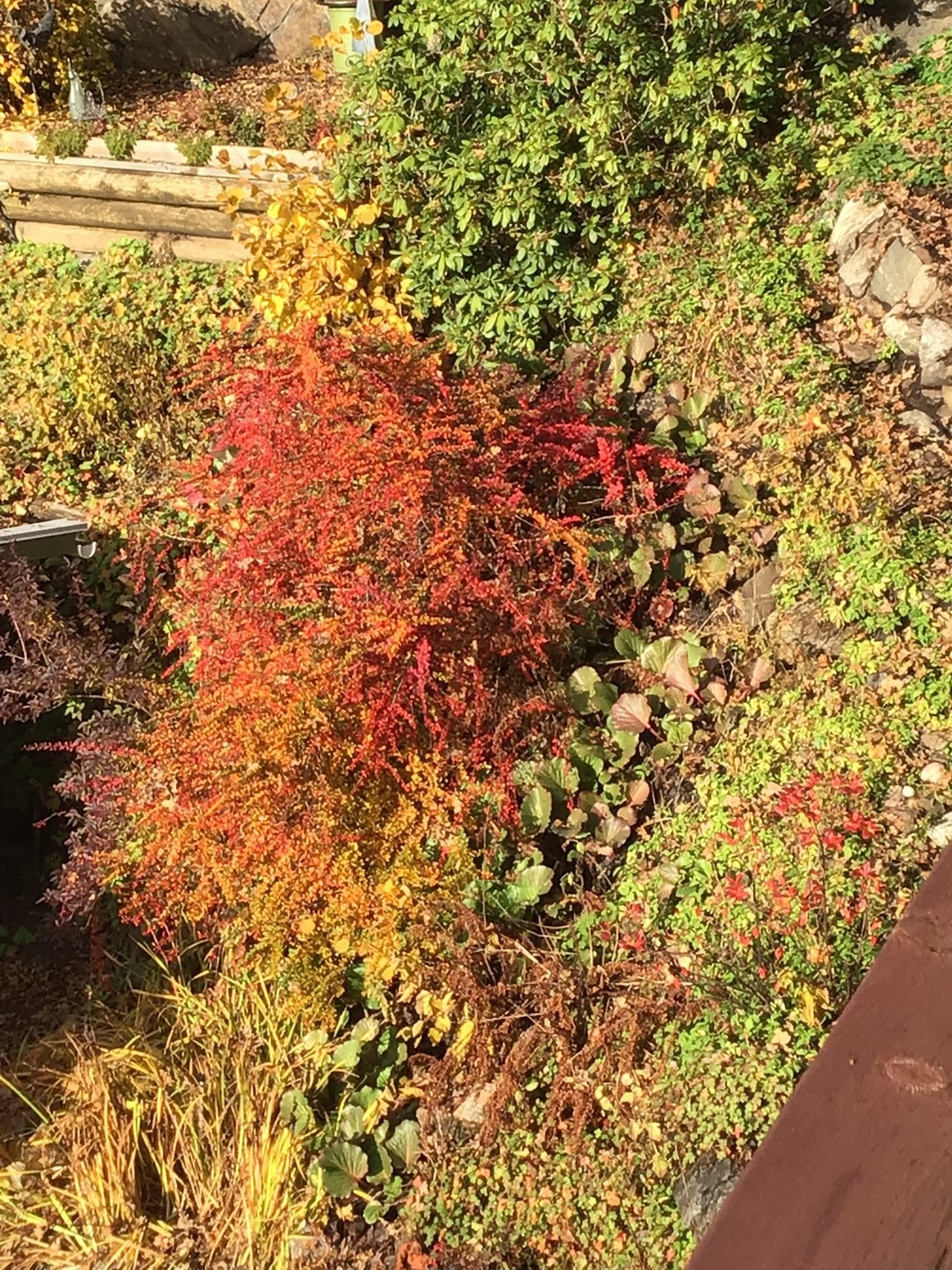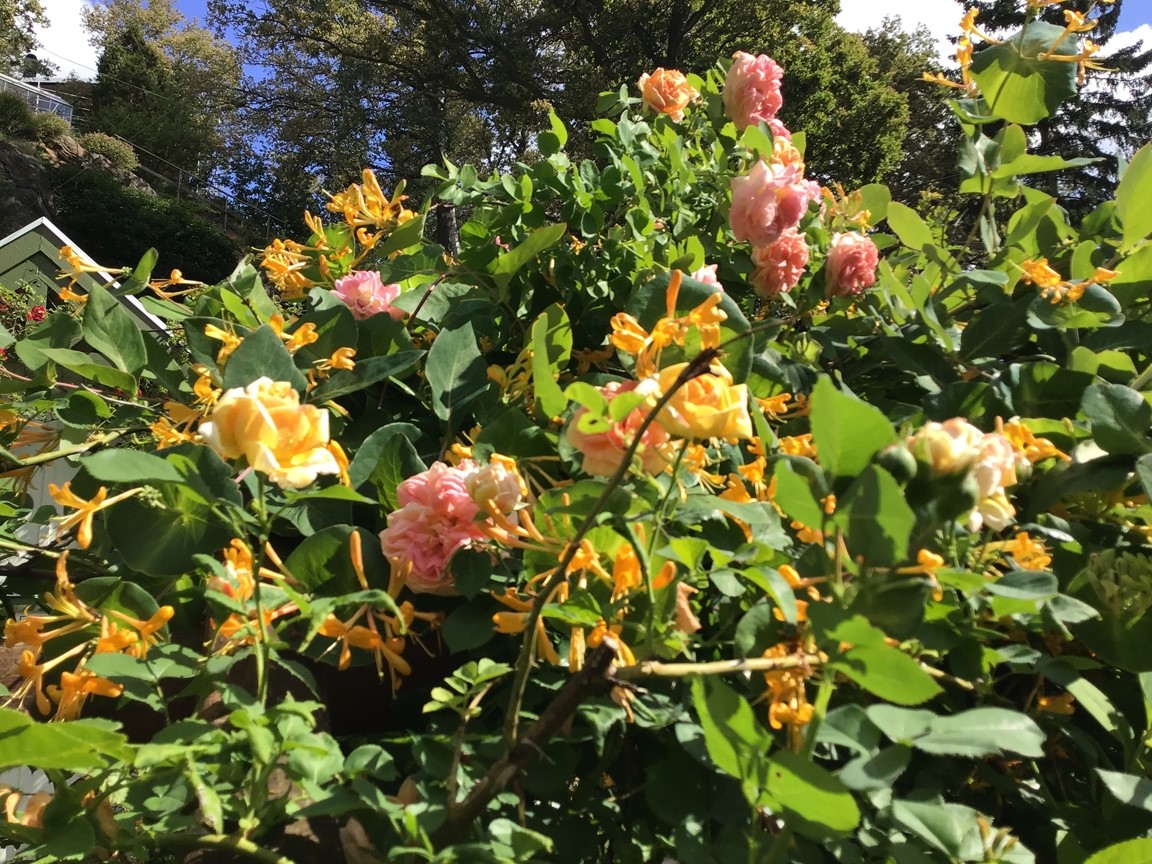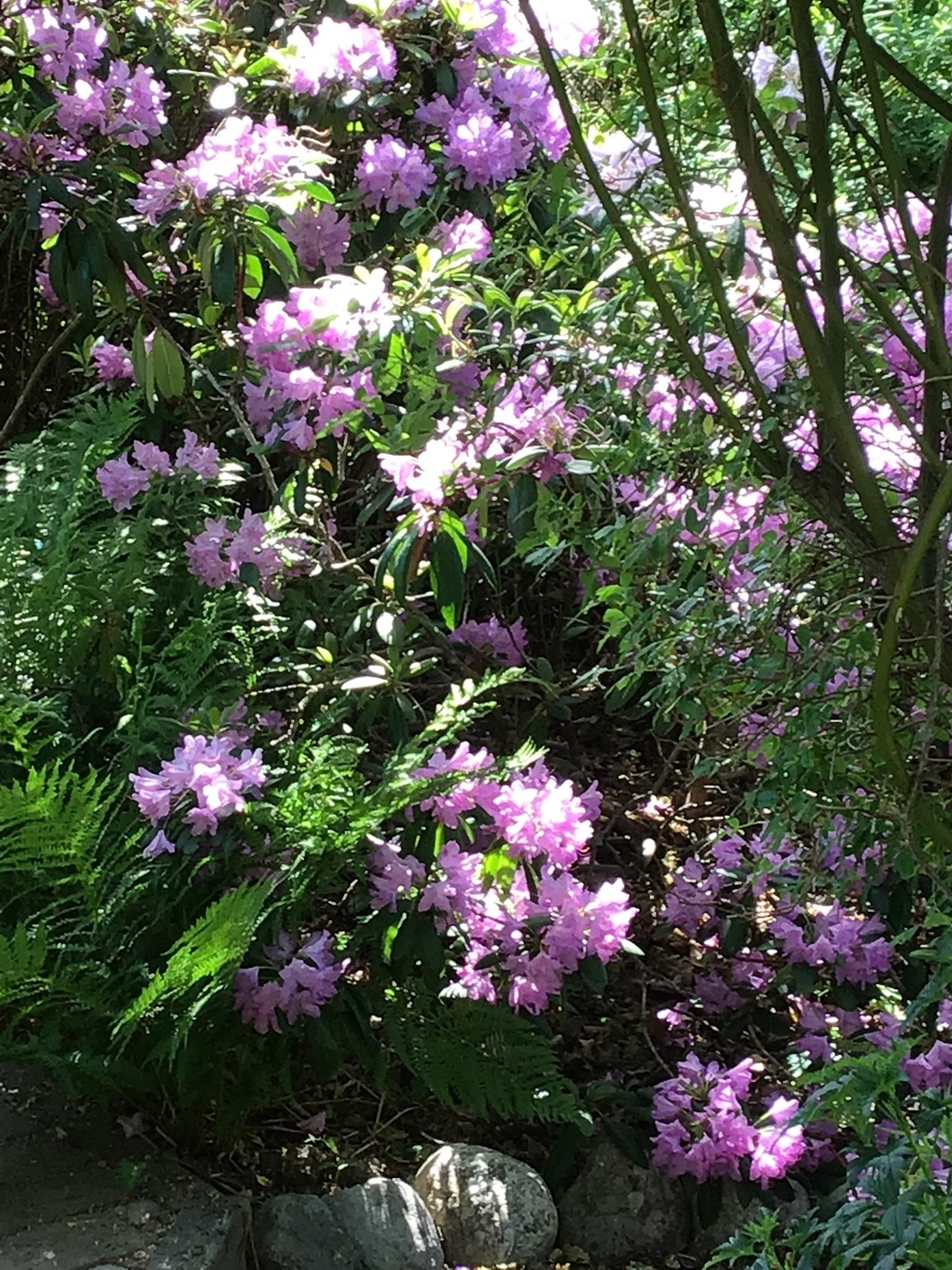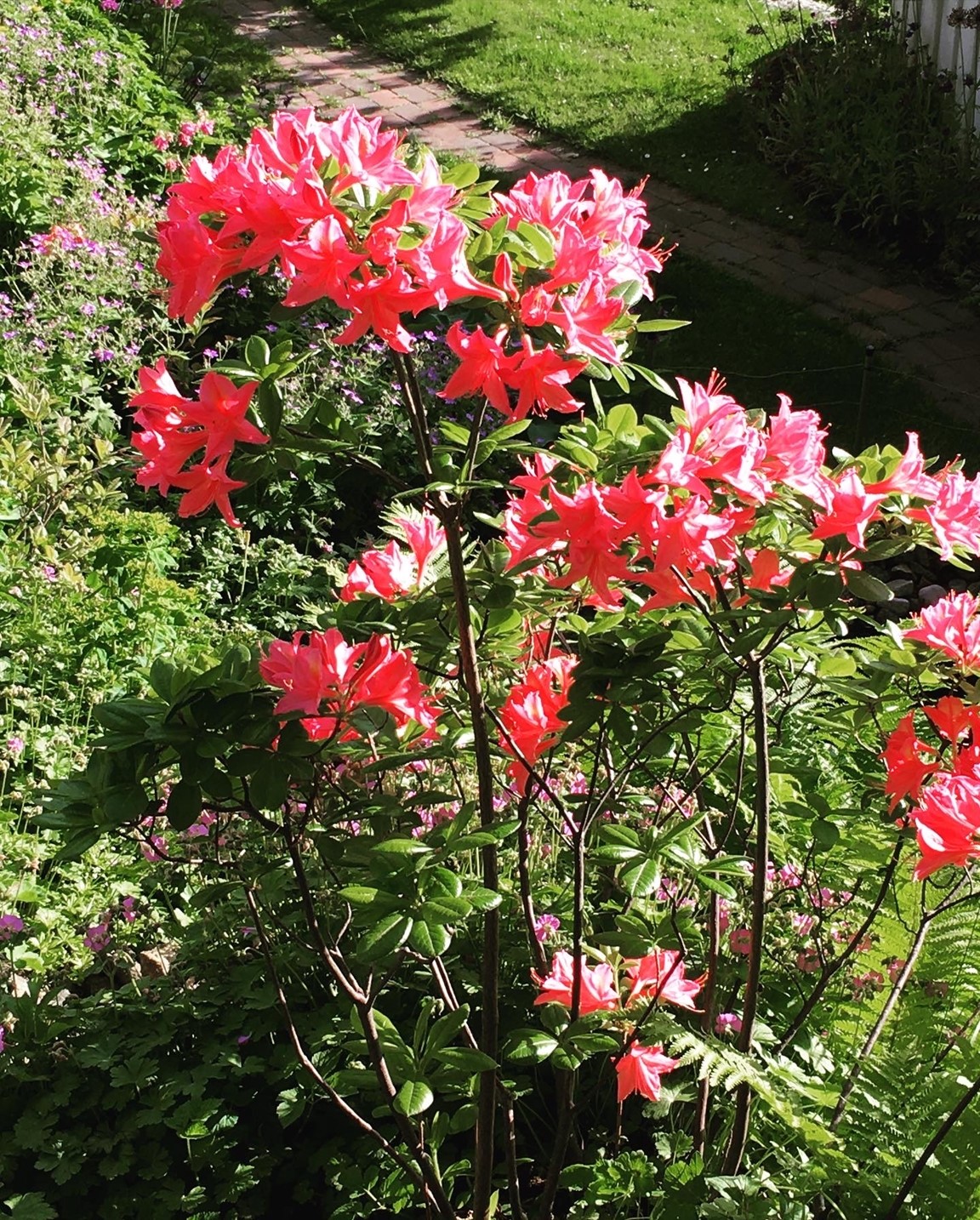 Vår ambition har varit att skapa olika ”rum” i trädgården, samt ta tillvara på höjdskillnaderna. Berget mot norr skyddar och skapar goda förutsättningar. Vår murgröna t.ex. växer så det knakar. I trädgården finns flera platser att sitta vid, vatten i olika former och trädgårdskonst. Vi har satsat på tåliga växter och mycket marktäckare. Rosor i alla dess former, samt perenner. Det vilda får möta det förädlade. Det som trivs får växa!