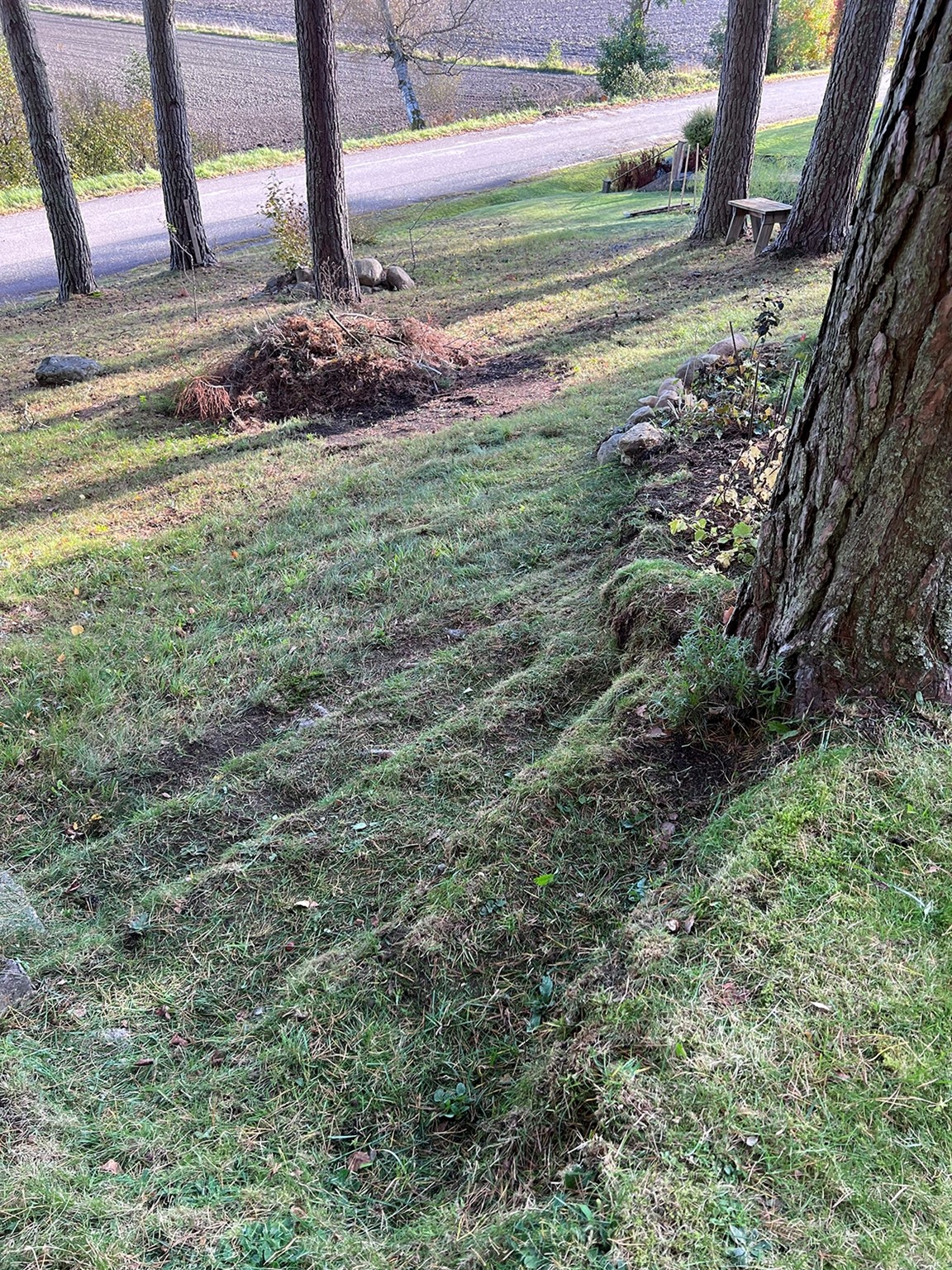 Utmanande trädgård belägen i en sluttning med skogen inpå knuten i södra Värmland. Zoon 3.