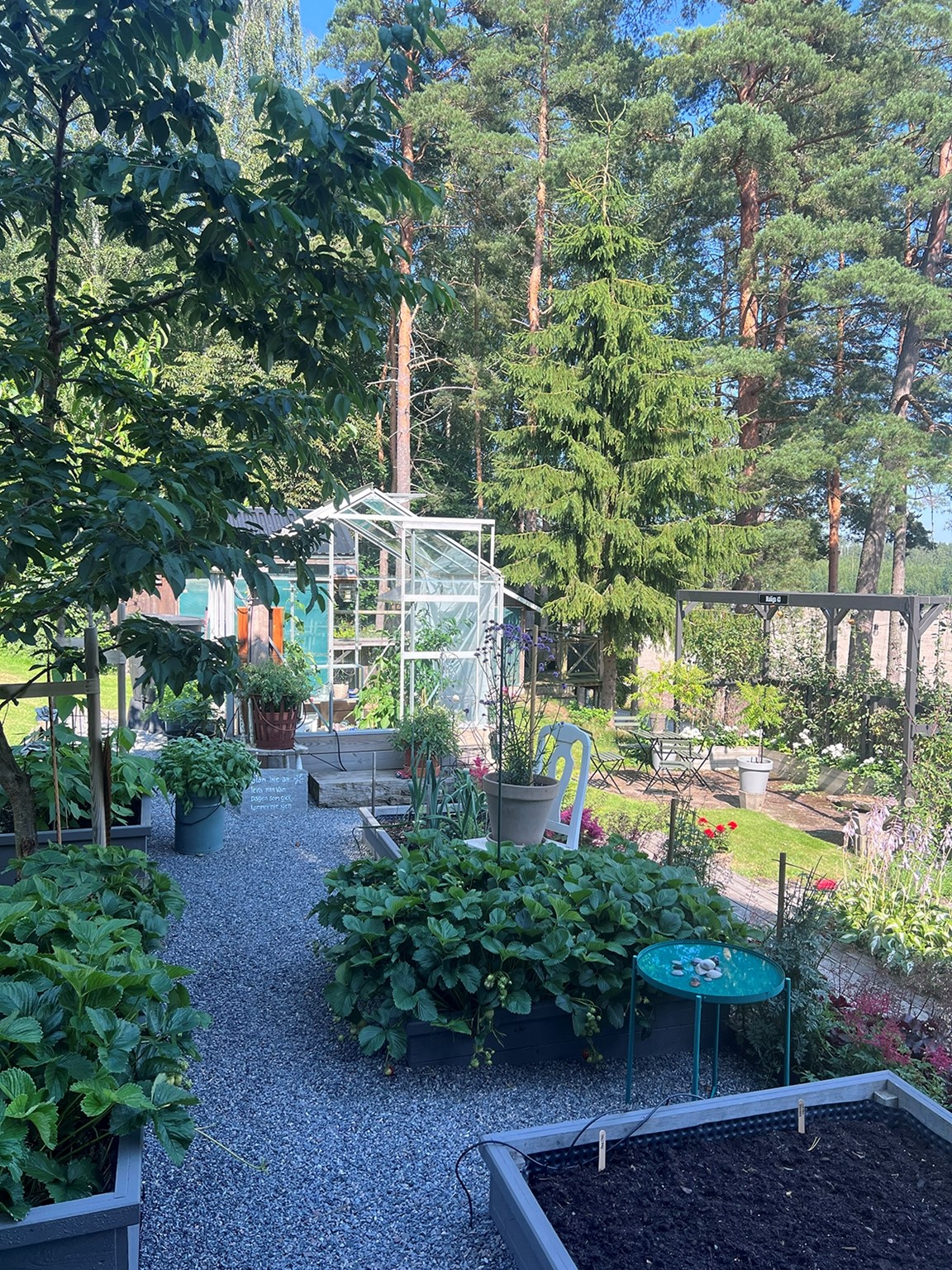 * Köksträdgård - litet Chiliväxthus, jordgubbar, kryddor och grönsaker