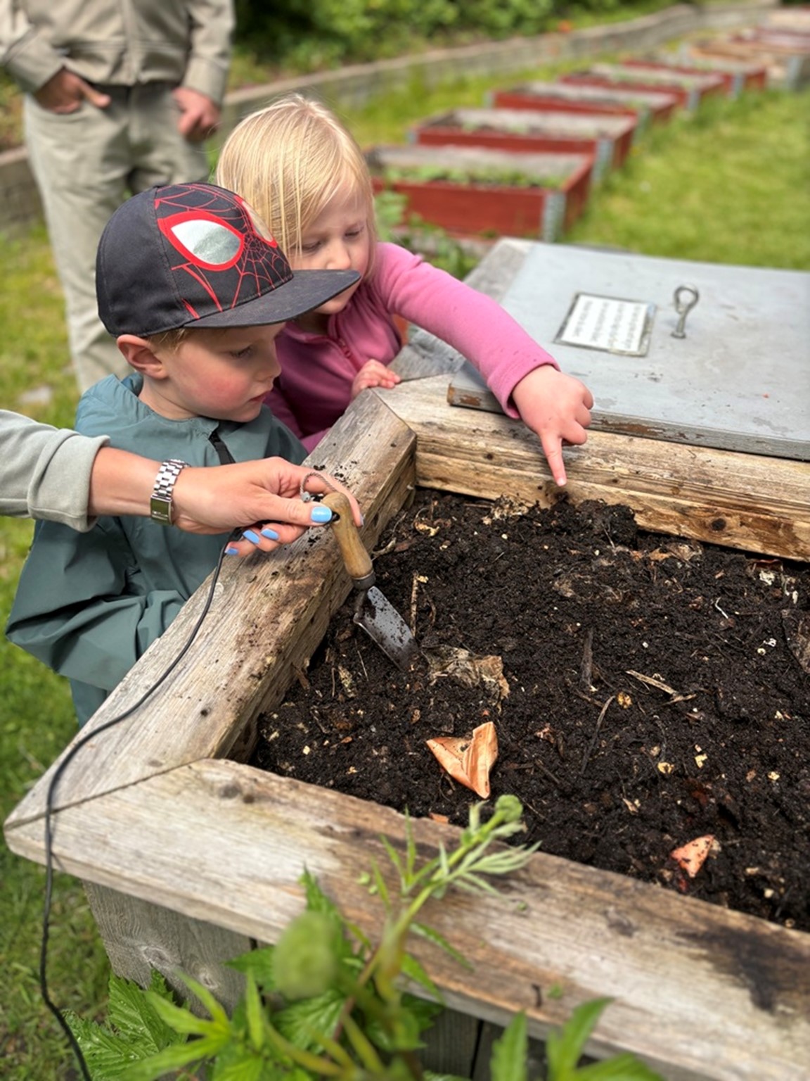 Barnens Trädgård invigdes i maj 2014. Här finns ett stort antal pallkragar som odlas av skolklasser och av medlemmars barn och barnbarn. För skol- och barnaktiviteter finns också utomhusklassrum, busklabyrint, äppeltunnel med uppländska äppelsorter, visningsodling av sädesslag, lin m.m. I en geologisk utställning visas uppländska mineral och bergarter. Det finns också en nyplanterad äng (2021) med gräs och ängsblommor.