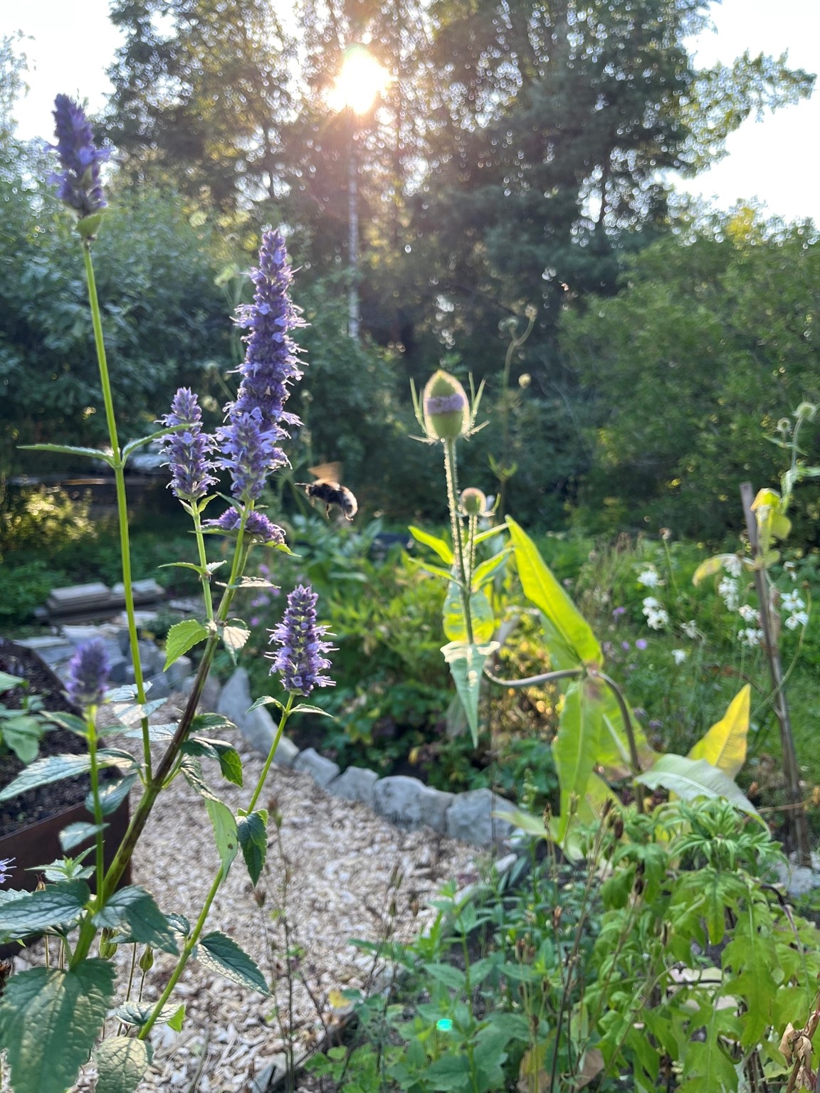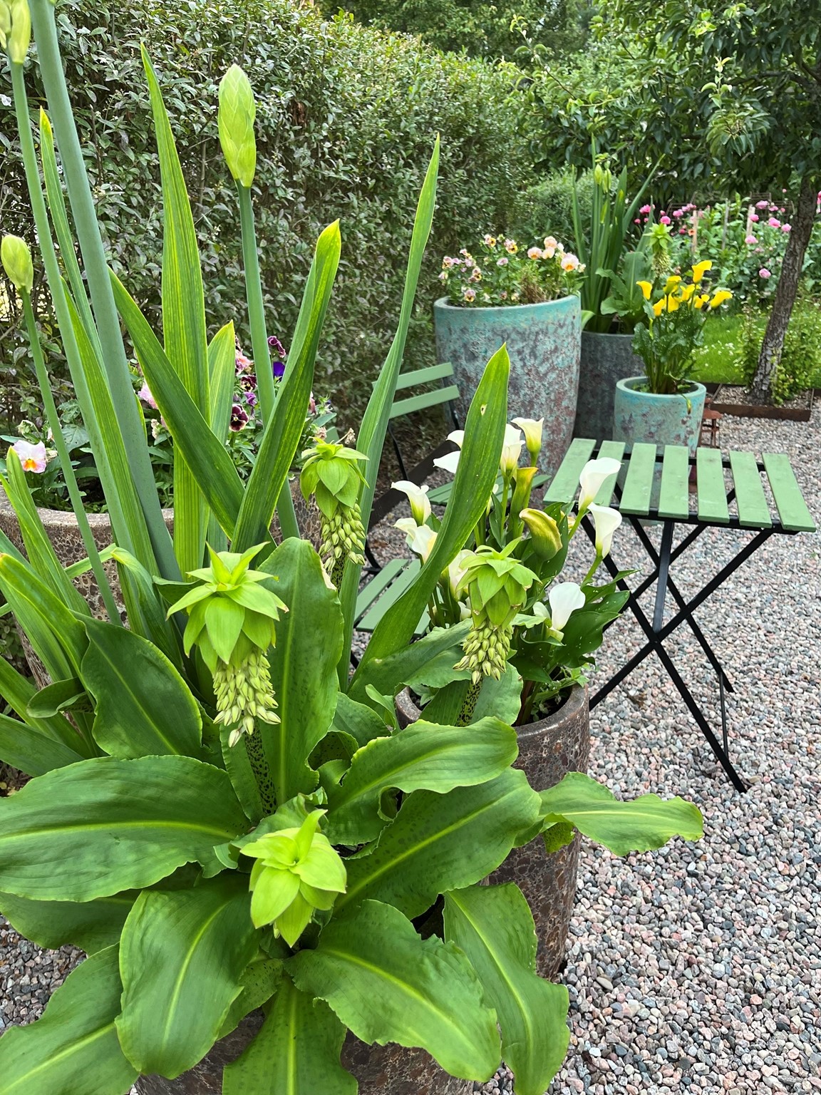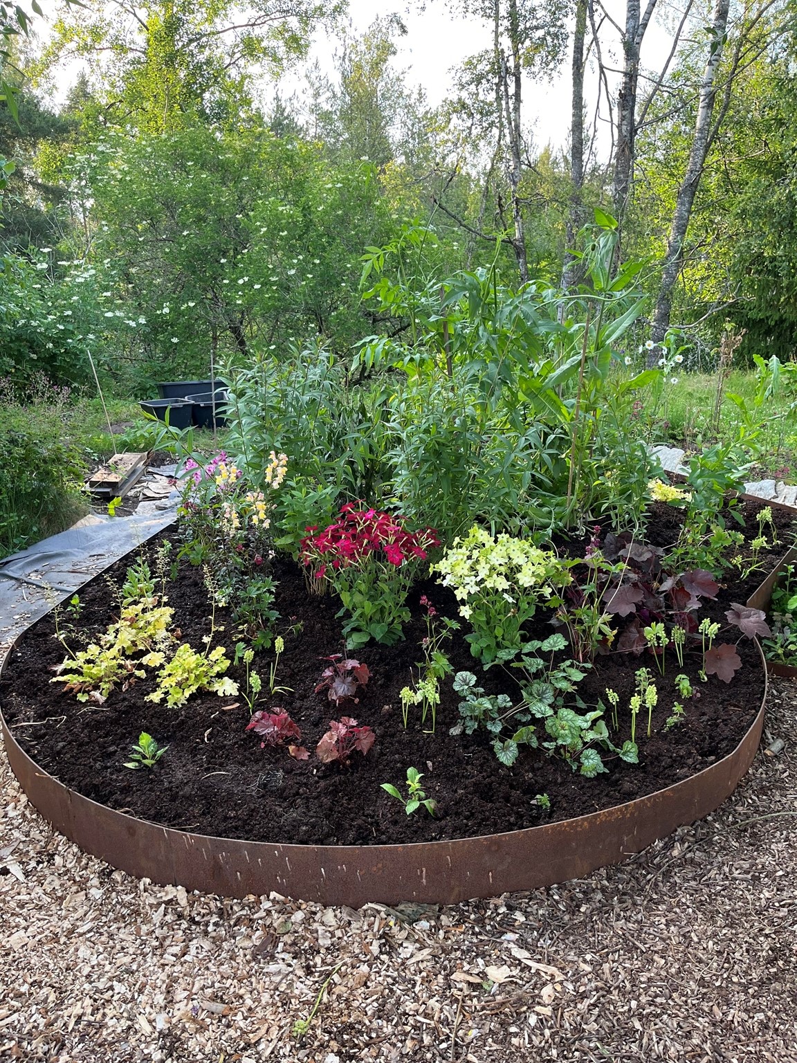 Vi har en trädgård i ständig förändring, något nytt läggs till varje år. Trädgården består av många rum skapade av ligusterhäckar. Vi har en runsten från 1000-talet i trädgårdens östra del, där finns en ingång genom häcken som alltid är öppen. Det finns ett flertal paradrabatter med perenner samt flera stora dahliaplanteringar. I ett av trädgårdsrummen står en fontän omgärdad av stora blomsterurnor. I västra delen av trädgården har vi vår bärträdgård. För bilder på trädgården besök gärna vårt Instagram: lanthandeln_tradgard