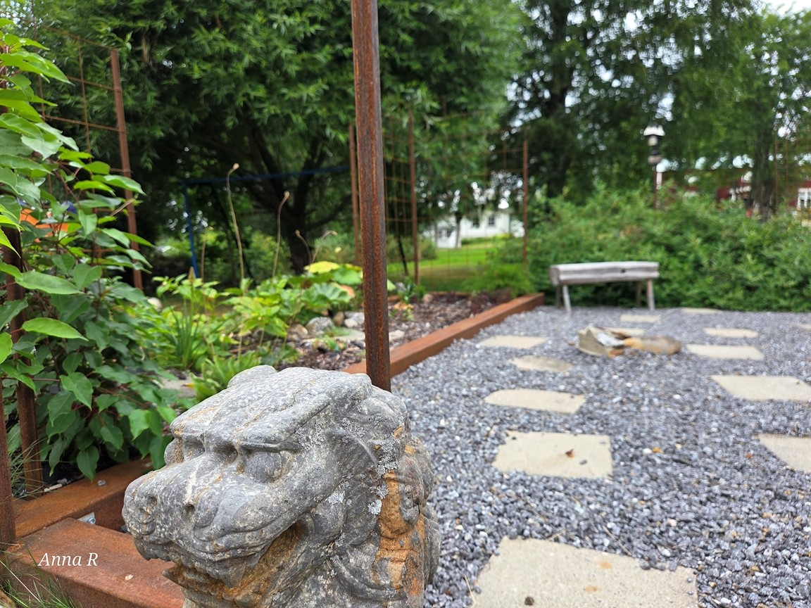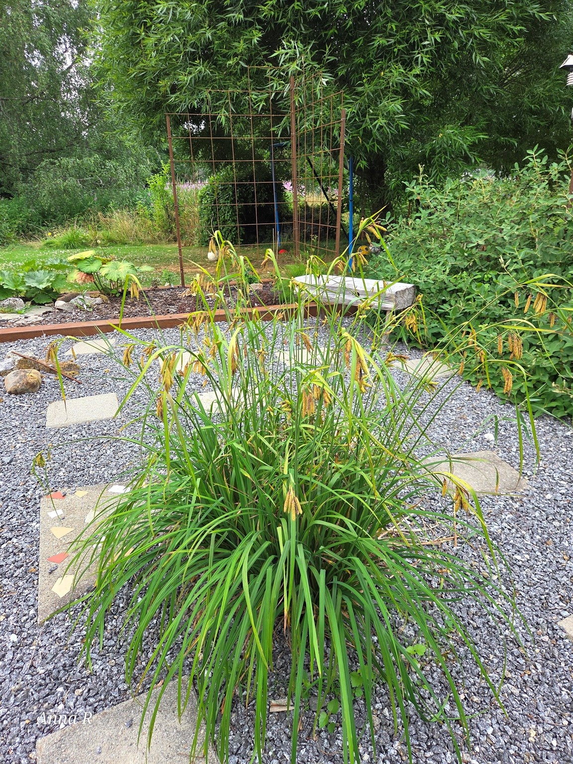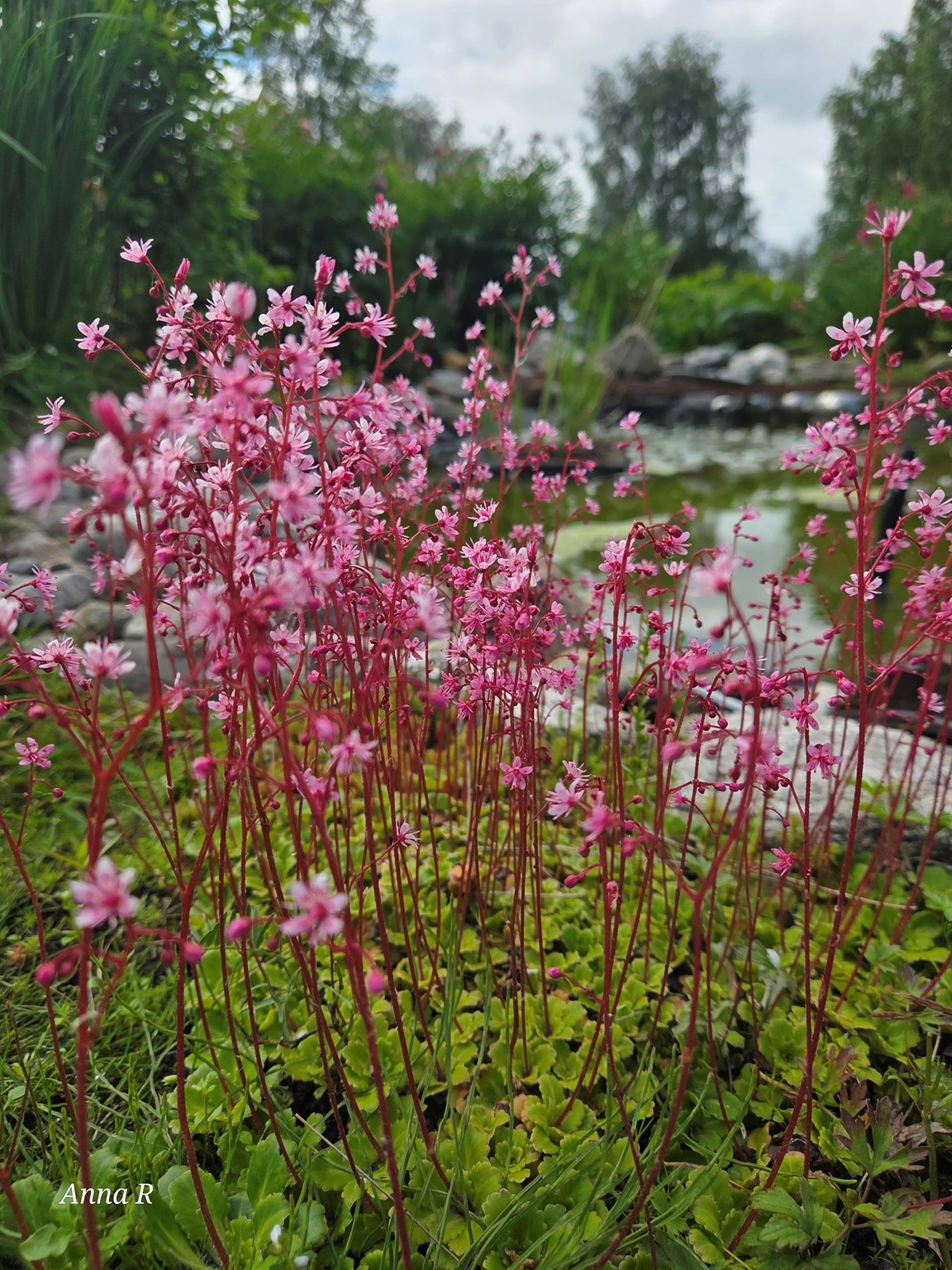 En mysig trädgård med massor av olika blommor,buskar & fruktträd. Med kärlek för pioner,liljor å iris. Stengångar & cortenkanter visar vägen till växthus & en damm full m näckrosor.