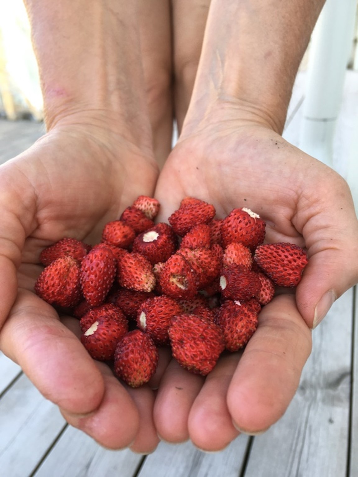 På framsidan av huset hade den gamla trädgården redan tidigare ersatts med ett grusplan. När gruset var borta och tonvis matjord på plats kunde jag skapa min lilla skogsträdgård. Idag är sviskon, körsbär, vinbär, krusbär, vinkrusbär, blåbärstry och staketdruvor väletablerade. Marken täcks av smultron och allåkerbär och några pallkragar fick också plats. Flera hasselnötter är planterade men har inte ännu levererad nötter.