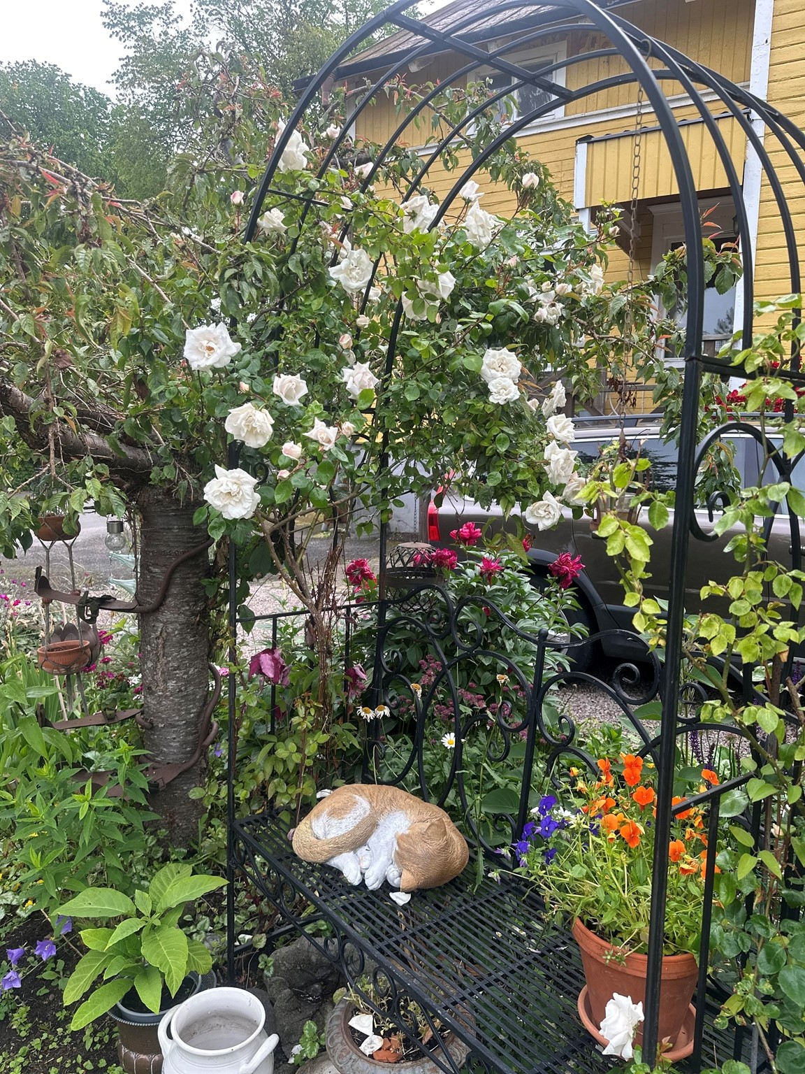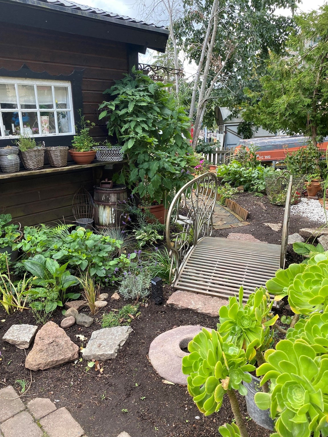 Min trädgård började jag att skapa våren 2022. så nu kallar jag den för en liten lummig oas mitt i stan med mycket perenner växthus och en liten stuga på den lilla tomten . Jag har nästan jämt nytt nått projekt på gång och det finns mycket fint att se. Den är ganska annorlunda och det finns alltid något att titta på vart man än står eller sitter i trädgården, Intresset har ökat lite för varje år. Jag älskar verkligen när det kommer beök o vill kika in hos mig.