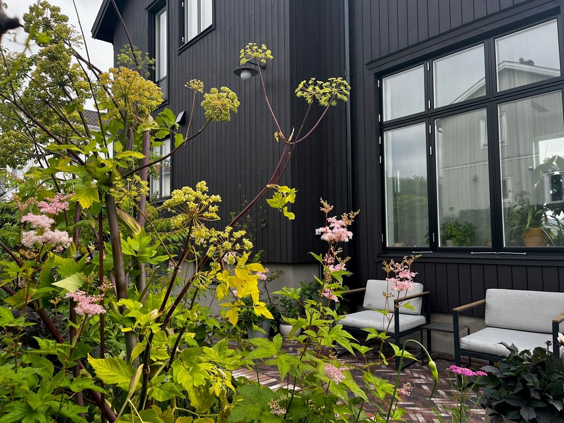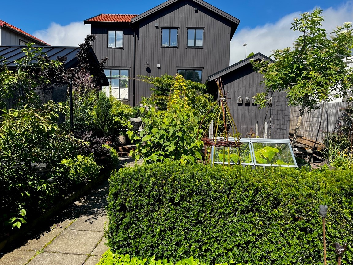 Välkommen till en liten trädgård på 500 kvm i Bräcke – ett bostadsområde byggt 1934 för att skapa möjligheter för mindre bemedlade att uppföra en småstuga. Här bor vi en familj på 2 vuxna och 2 barn vilket präglat trädgården. Här finns en nedsänkt studsmatta i marknivå, pool, bärbuskar och lättskötta perenner. Men främst har vi försökt skapa en trädgård med mysiga platser att hänga på och växter som är fina att titta på året runt. Buxbom, olika träd, höga gräs och dahlior hör till favoriterna. Jag gör egna oljor, schampo och salvor av läkeväxter så försöker att odla mycket av dessa (tex ringblomma och kamomill).