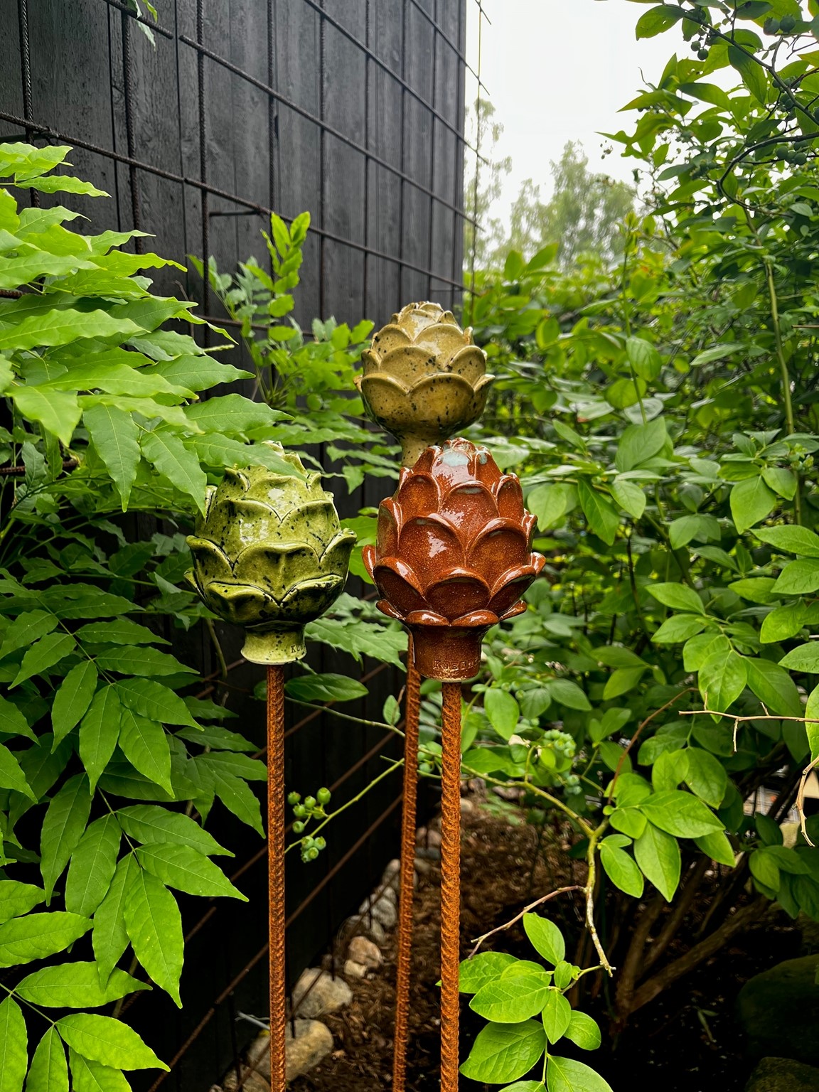 Här finns en keramikverkstad där det produceras trädgårdsknoppar, krukor och vaser som är till salu.