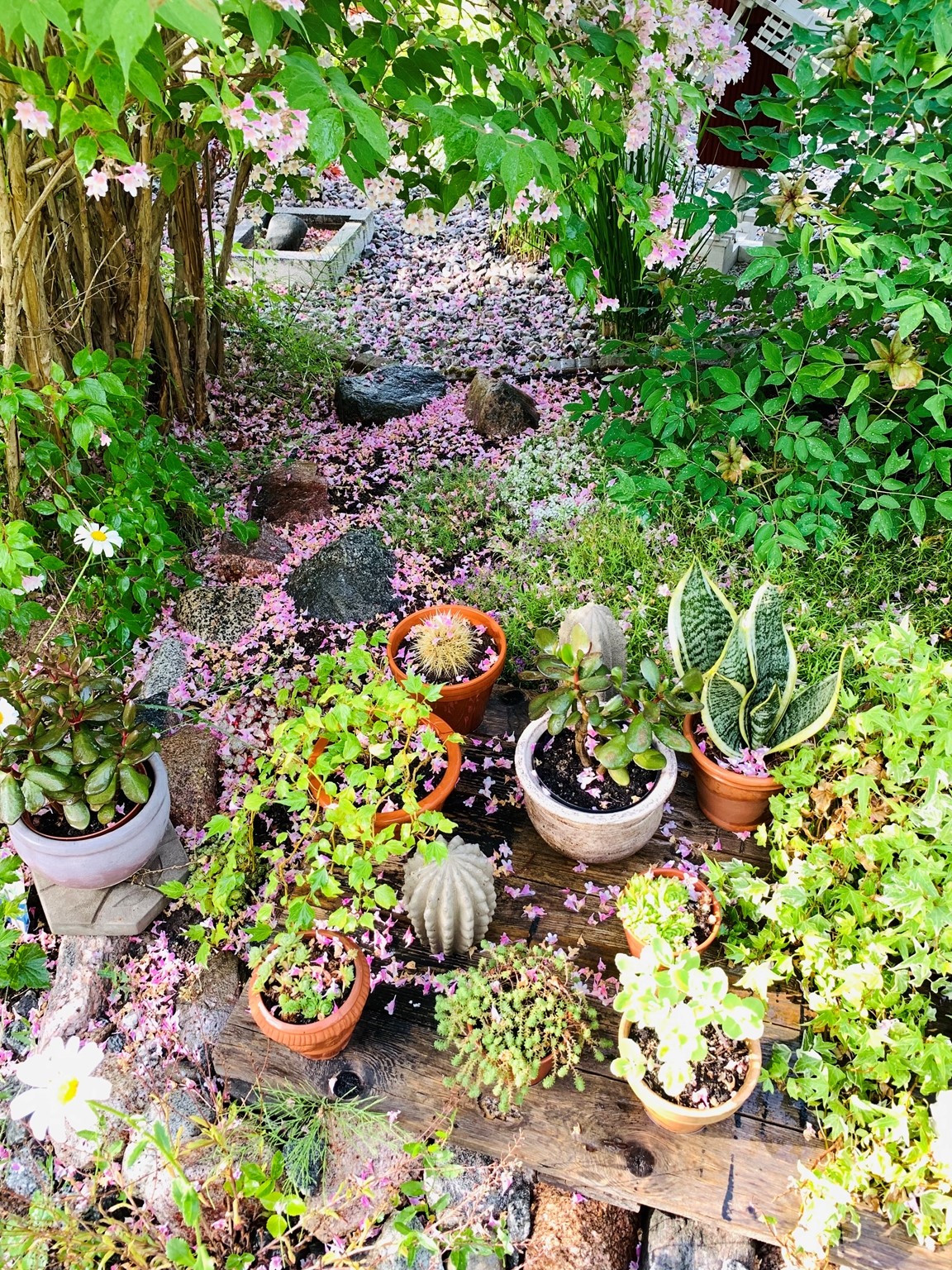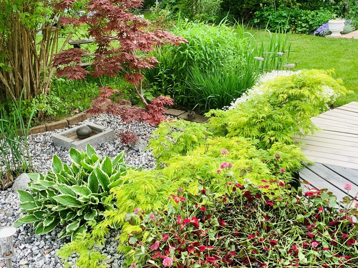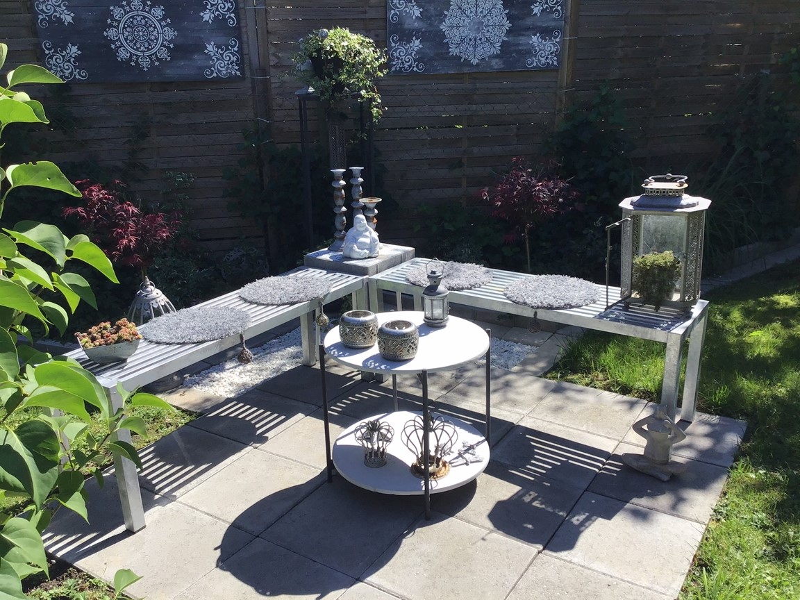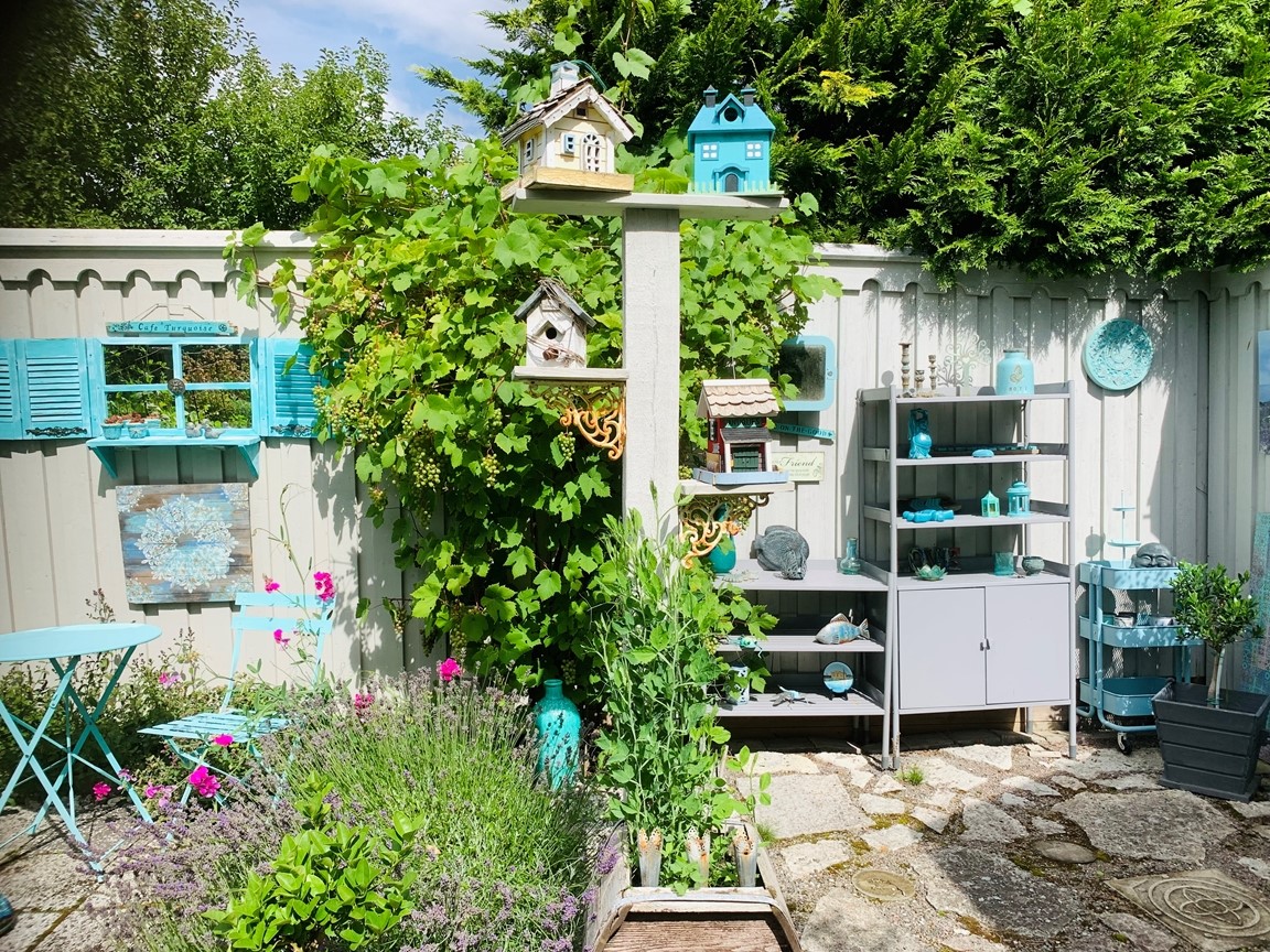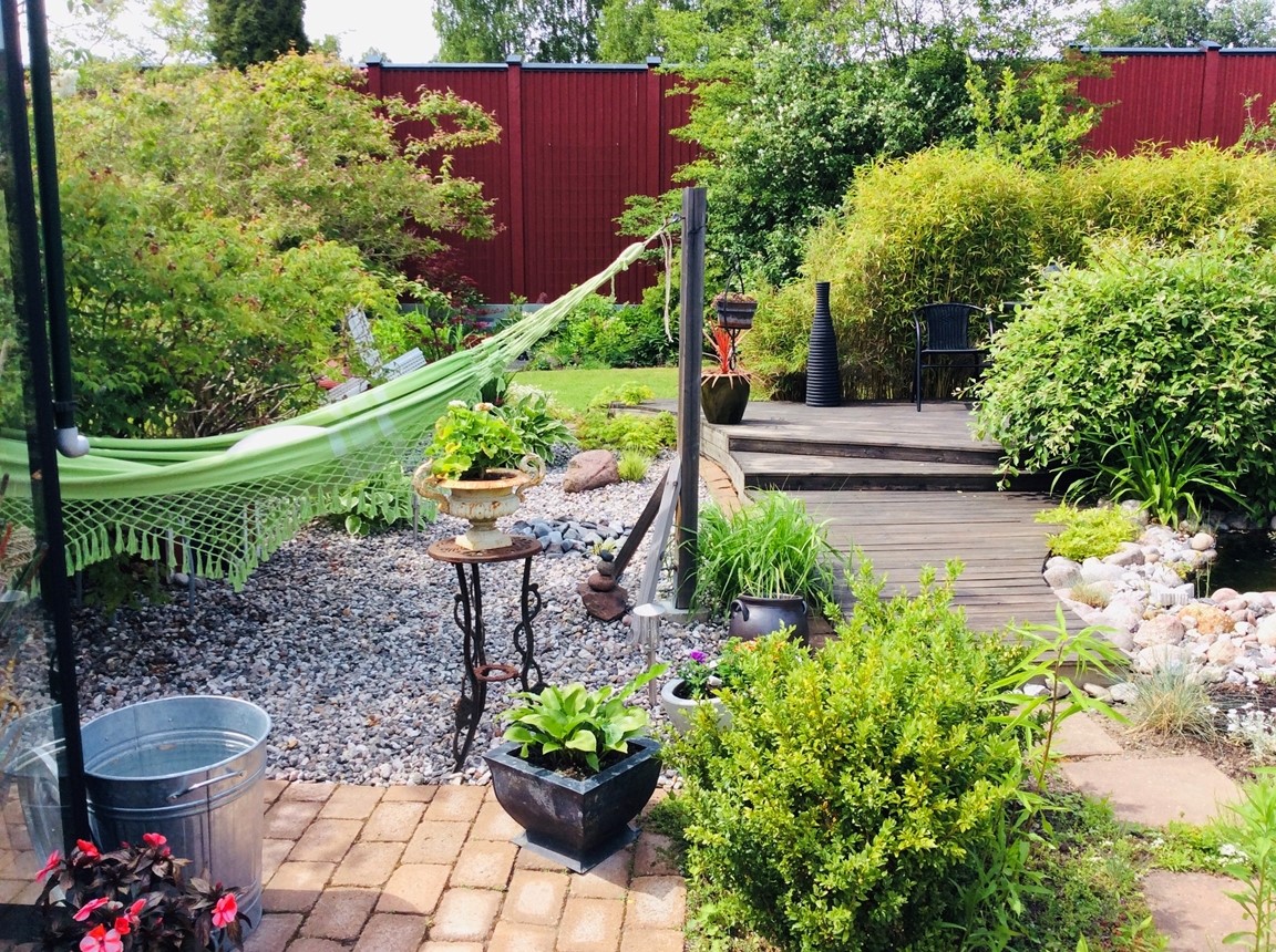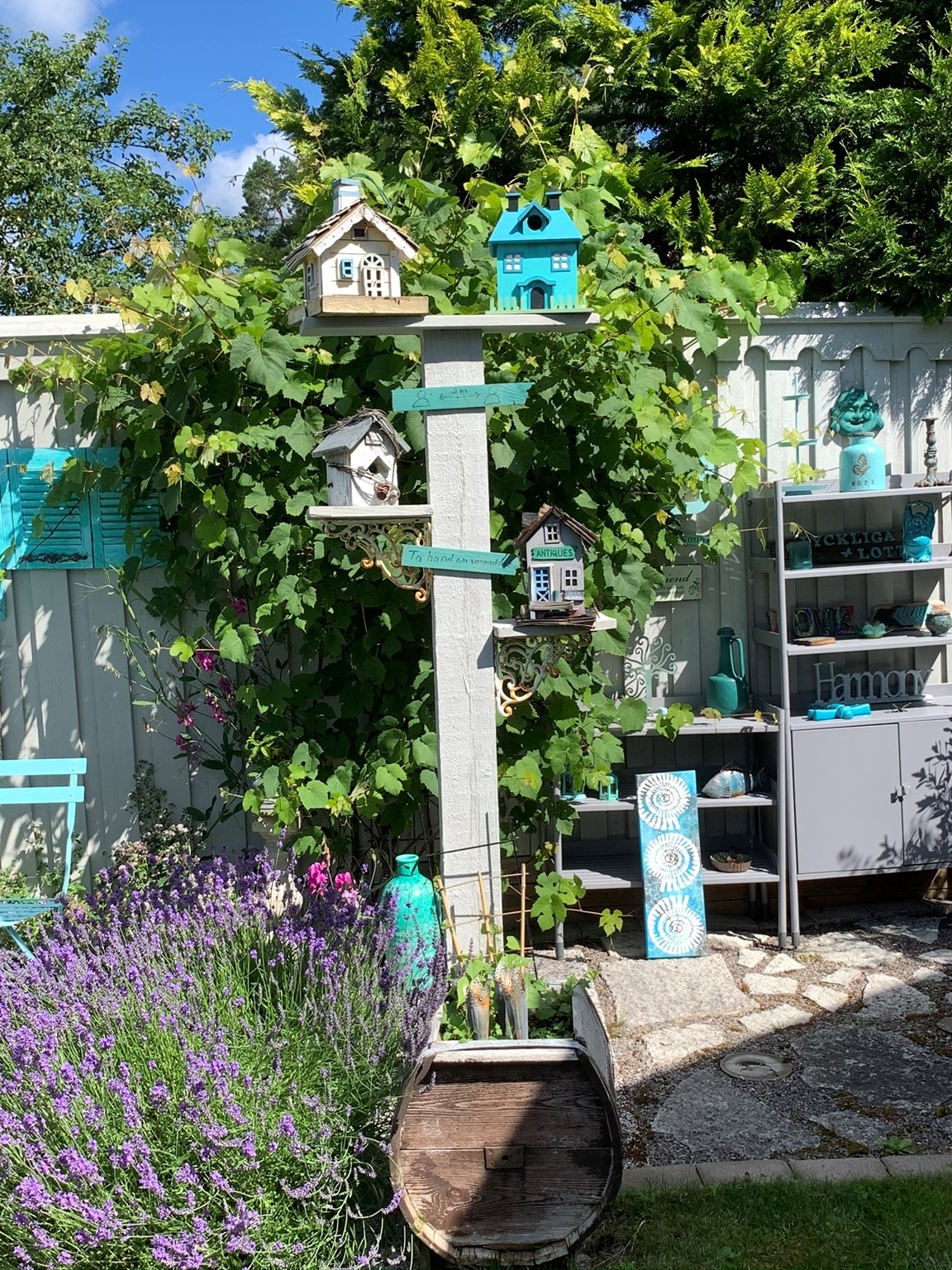 Jag strävar efter en spännande och lummig trädgård med oväntade upplevelser i varje rum. Trädgården är drygt 1600 kvm stor med växthus, liten damm, rostig hörna, turkos medelhavsdel, köksträdgård, japansk hörna och woodland. Ingenting är perfekt i min trädgård men eftersom jag hittar på nya projekt hela tiden är skaparglöden stor och det är det viktigaste för mig!! Att få ha roligt!! Nu är det entrén in till trädgården som behöver göras iordning. Allt får ta den tid det tar! Det bästa med att ha en trädgård är att man får nya idéer hela tiden! Och jag gör dem allt eftersom jag har tid och lust! Jag gjuter också i betong som syns lite här och var i min trädgård.