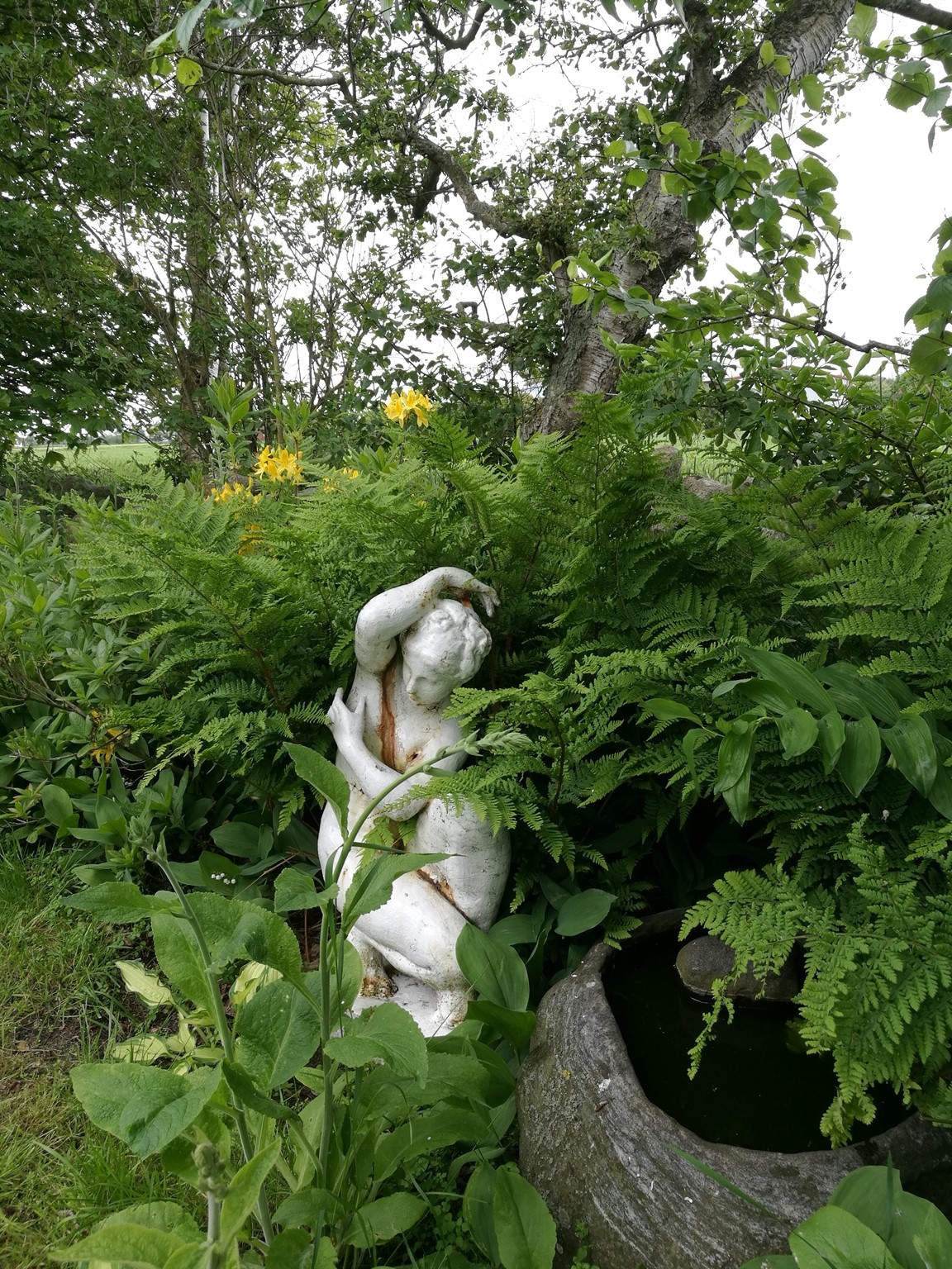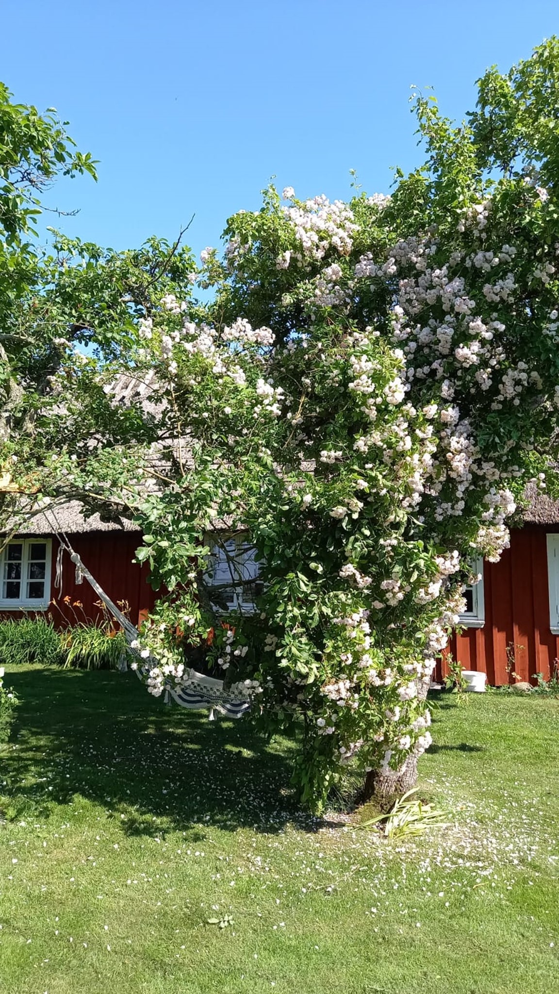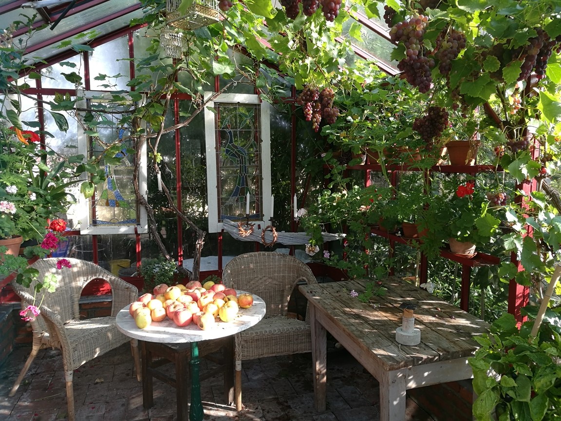 När vi flyttade hit 2005 fanns bara en fårhage bakom huset. Så potentialen var stor! Trädgården har byggts upp en liten bit i taget och har nu flera olika rum, inramade av häckar i olika höjder. 2021 blev vårt nya hus färdigt och skapade då möjligheter att stuva om i rabatterna.