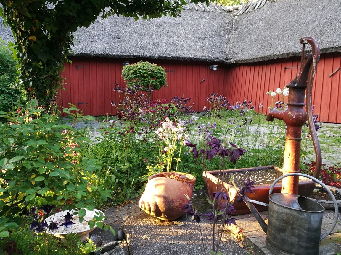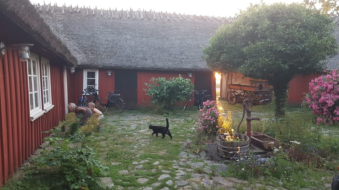 Här möts du av en fyrlängad gård med anor från 1700-talet nära havet som erbjuder både en charmig innergård och en fem tusen kvardratmeter stor omgivande trädgård.