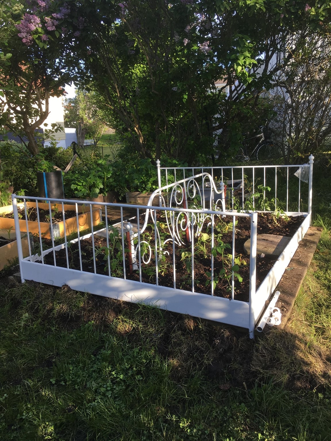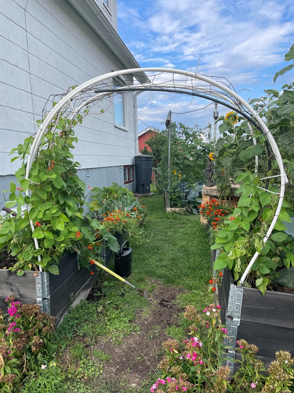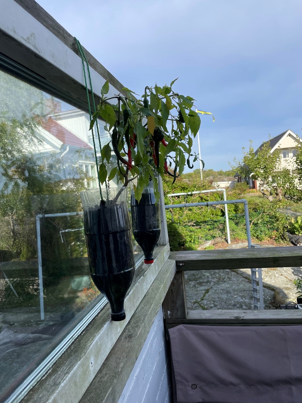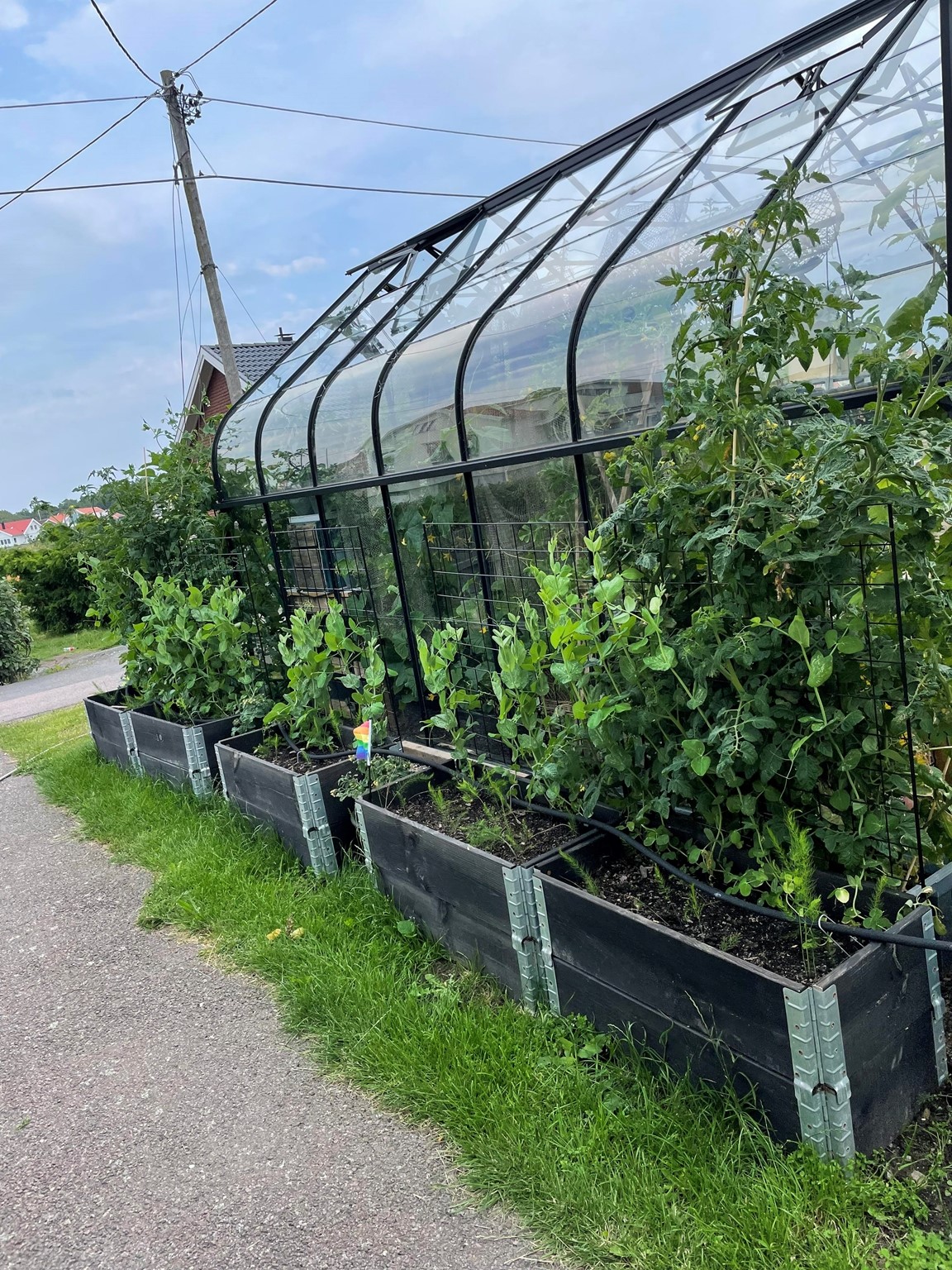 På en liten naturtomt på Donsö i Göteborgs södra skärgård ligger vårt hem och oas. Det är ett ganska oansenlig etenithus från 1950 talet. På sin tid bland det första på gatan. Numera omgivet av villor från en annan tid och en helt annan peng. Många år var trädgården barnens lekplats, men nu ligger bollarna rätt still på gräset. Maj 2021, mitt under pandemin, fyllde jag 50 år. Då fick jag ett växthus av min familj. I och med det vaknade en vilade lust och ett intresse för att odla, framförallt ätbart. Med åren har grönskan krupit ut ur växthuset och trädgården är nu mera min lekplats. Tuffa år för familjen, och begränsad ekonomi har gjort trädgården till min terapi. Jag tar tillvara på fröer och stickningar, komposterar allt som går, för jord och näring. Jag prövar, lär mig och försöker få ut så mycket jag kan av min lilla trädgård. Idéer på var och vad som går att odlat i har avlöst varandra. Det går faktiskt att odla i det mesta. Kanske mer galet än vacker många gånger. Men det ger mycket gott för själ och gom. För hur som helst är det ju så fantastiskt när det växter, även i den enklaste bergsskreva, lastpall, sängstomme, båt, kökssoffa, studsmatta eller plastbytta.