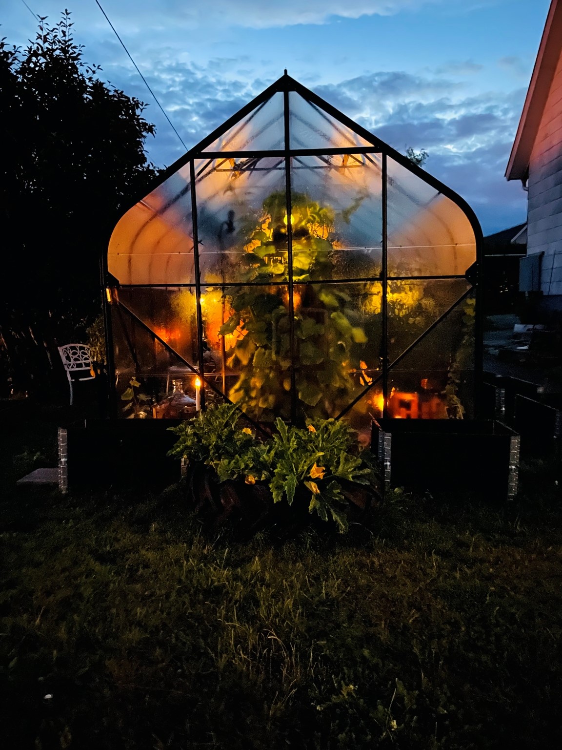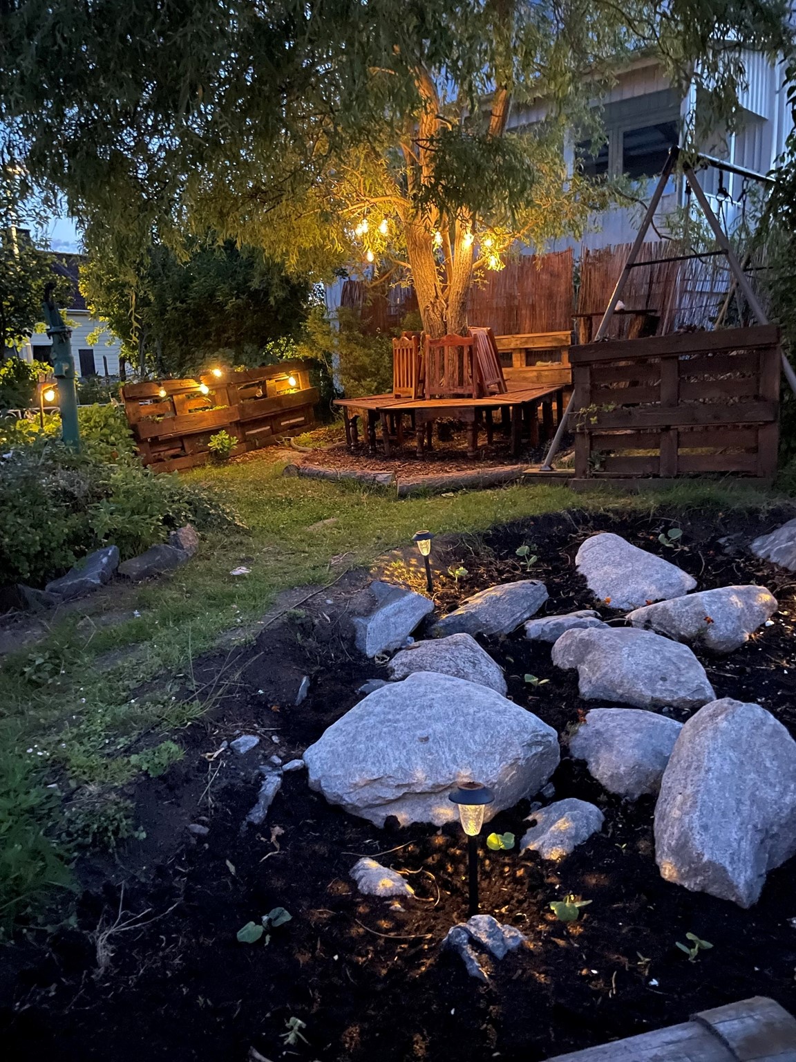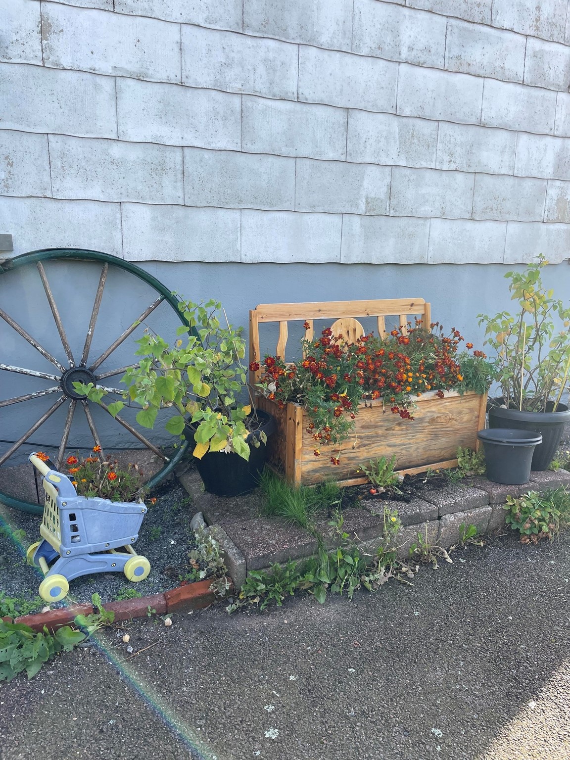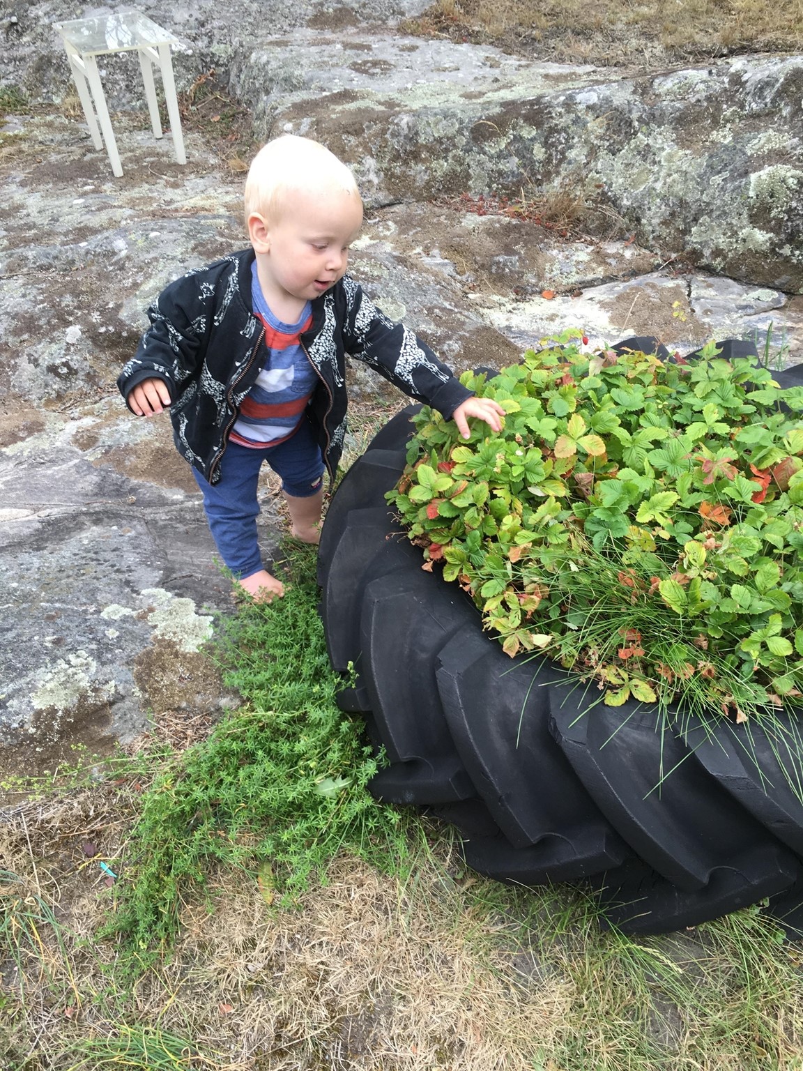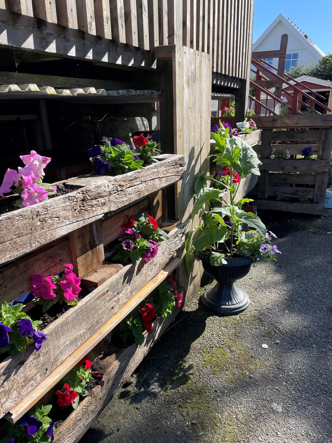 På en liten naturtomt på Donsö i Göteborgs södra skärgård ligger vårt hem och oas. Det är ett ganska oansenlig etenithus från 1950 talet. På sin tid bland det första på gatan. Numera omgivet av villor från en annan tid och en helt annan peng. Många år var trädgården barnens lekplats, men nu ligger bollarna rätt still på gräset. Maj 2021, mitt under pandemin, fyllde jag 50 år. Då fick jag ett växthus av min familj. I och med det vaknade en vilade lust och ett intresse för att odla, framförallt ätbart. Med åren har grönskan krupit ut ur växthuset och trädgården är nu mera min lekplats. Tuffa år för familjen, och begränsad ekonomi har gjort trädgården till min terapi. Jag tar tillvara på fröer och stickningar, komposterar allt som går, för jord och näring. Jag prövar, lär mig och försöker få ut så mycket jag kan av min lilla trädgård. Idéer på var och vad som går att odlat i har avlöst varandra. Det går faktiskt att odla i det mesta. Kanske mer galet än vacker många gånger. Men det ger mycket gott för själ och gom. För hur som helst är det ju så fantastiskt när det växter, även i den enklaste bergsskreva, lastpall, sängstomme, båt, kökssoffa, studsmatta eller plastbytta.